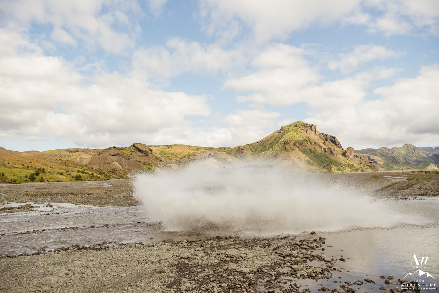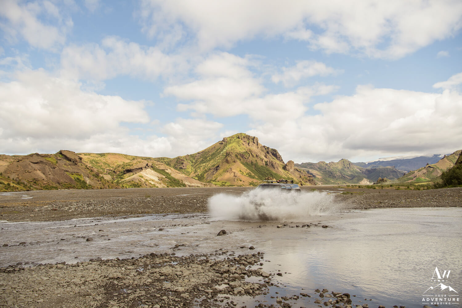 Highland roads intertwine with rivers you must pass. There are very few bridges in the highlands so you must pass the majority of them in a 4×4 truck or super jeep. Crossing rivers in the highlands should be done with much care and experience and our super jeep team has it! I fact, they are expert glacier river crossers! To get to our next location during Laura and Chris’ adventure elopement we crossed at least 10 rivers!!