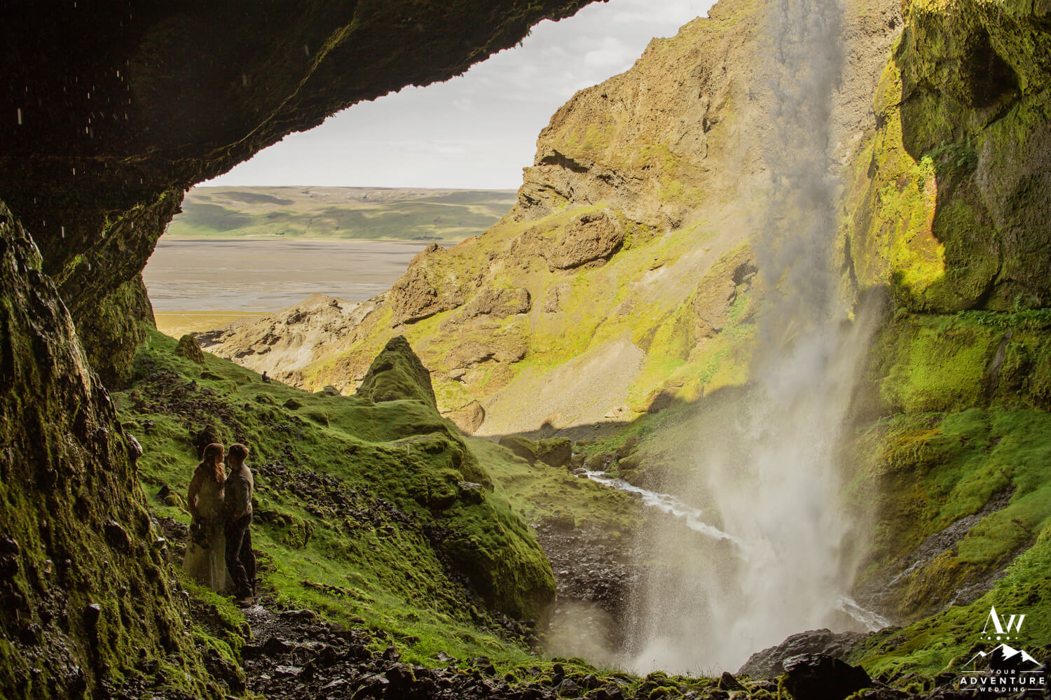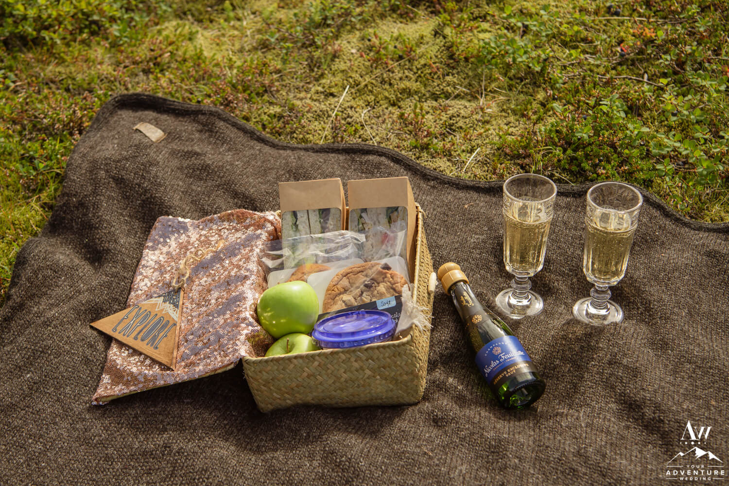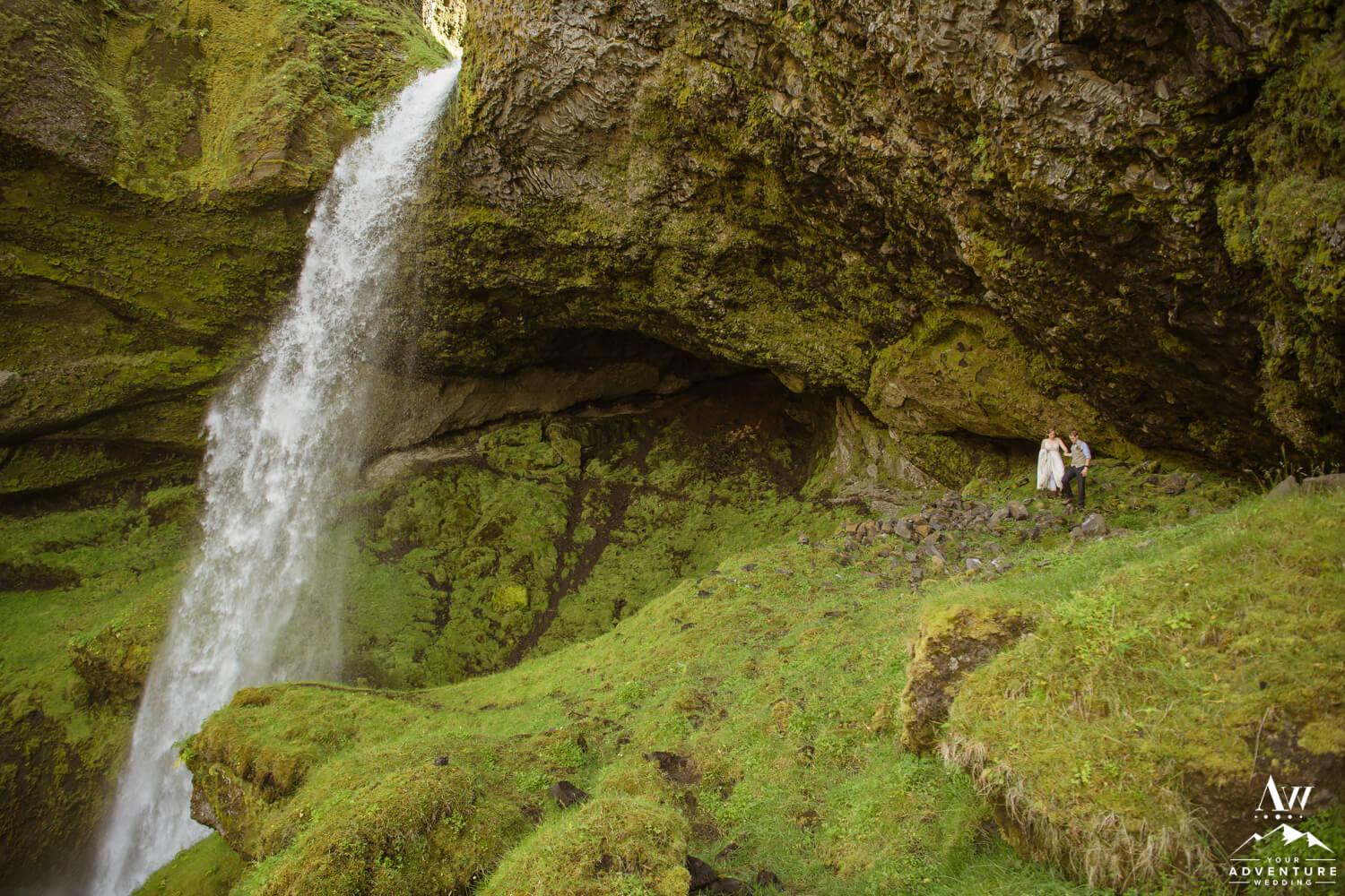Woohoo it’s lunch time! Can you believe they explored three amazing areas already before lunch?! Chilling for 30 minutes during your Iceland adventure elopement enjoying a glass of bubbles and yummy food is a must do! Once they were full, they hiked into the secret waterfall area explore it. So many beautiful Iceland wedding photo opportunities.