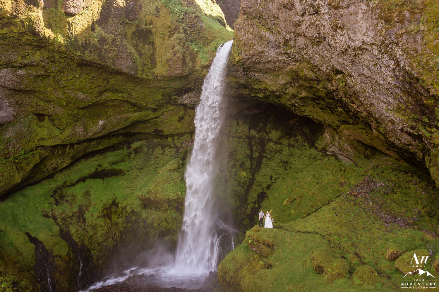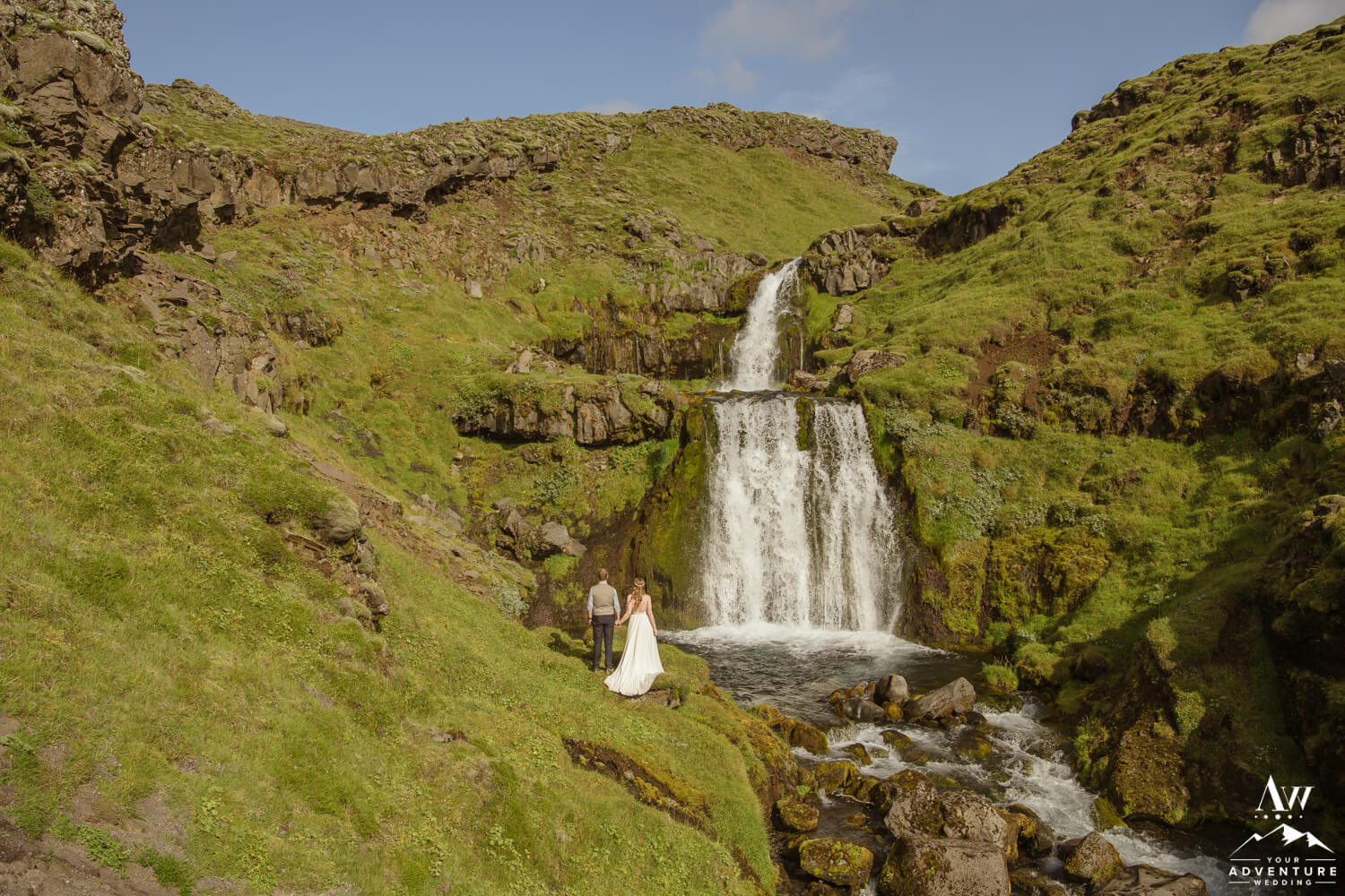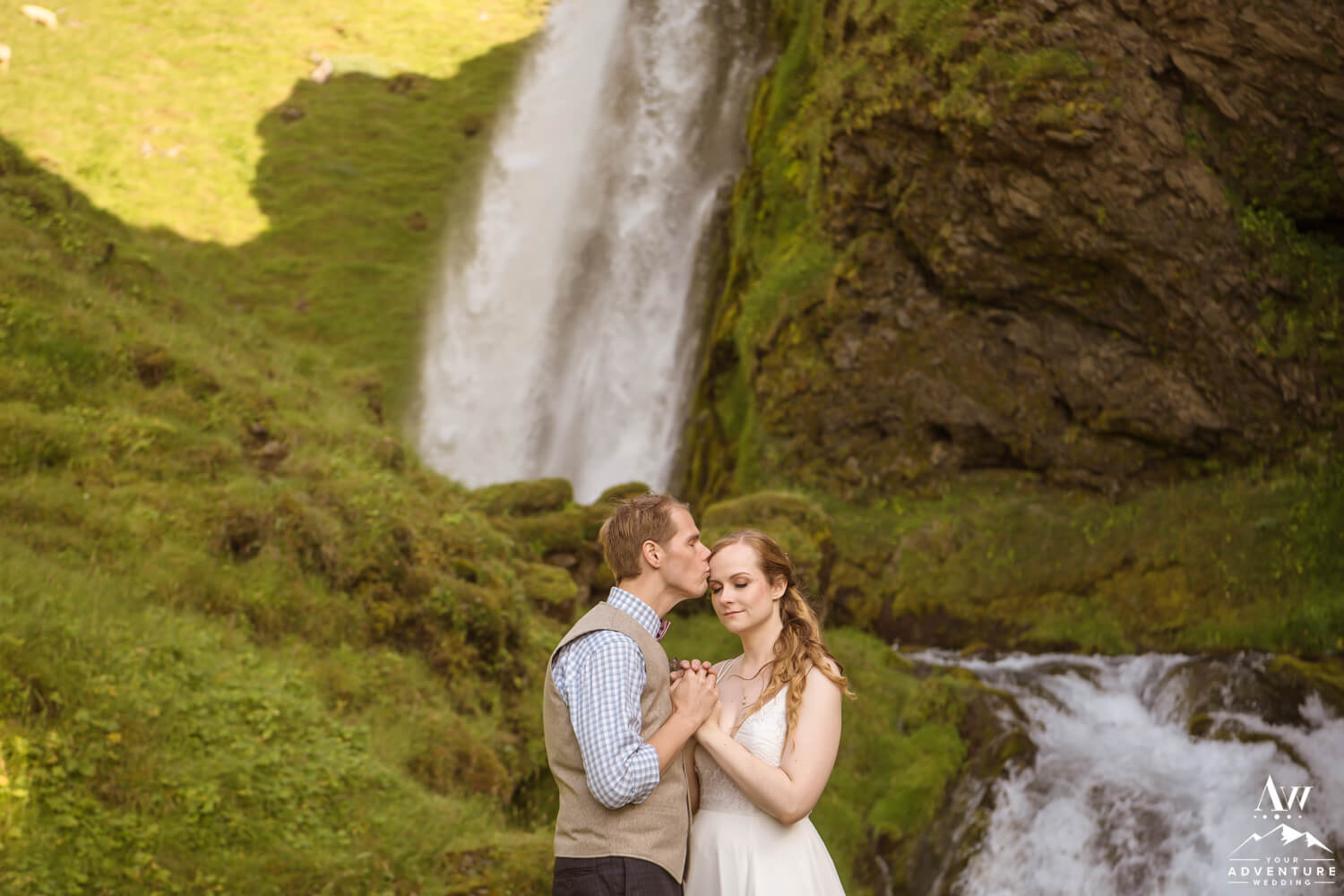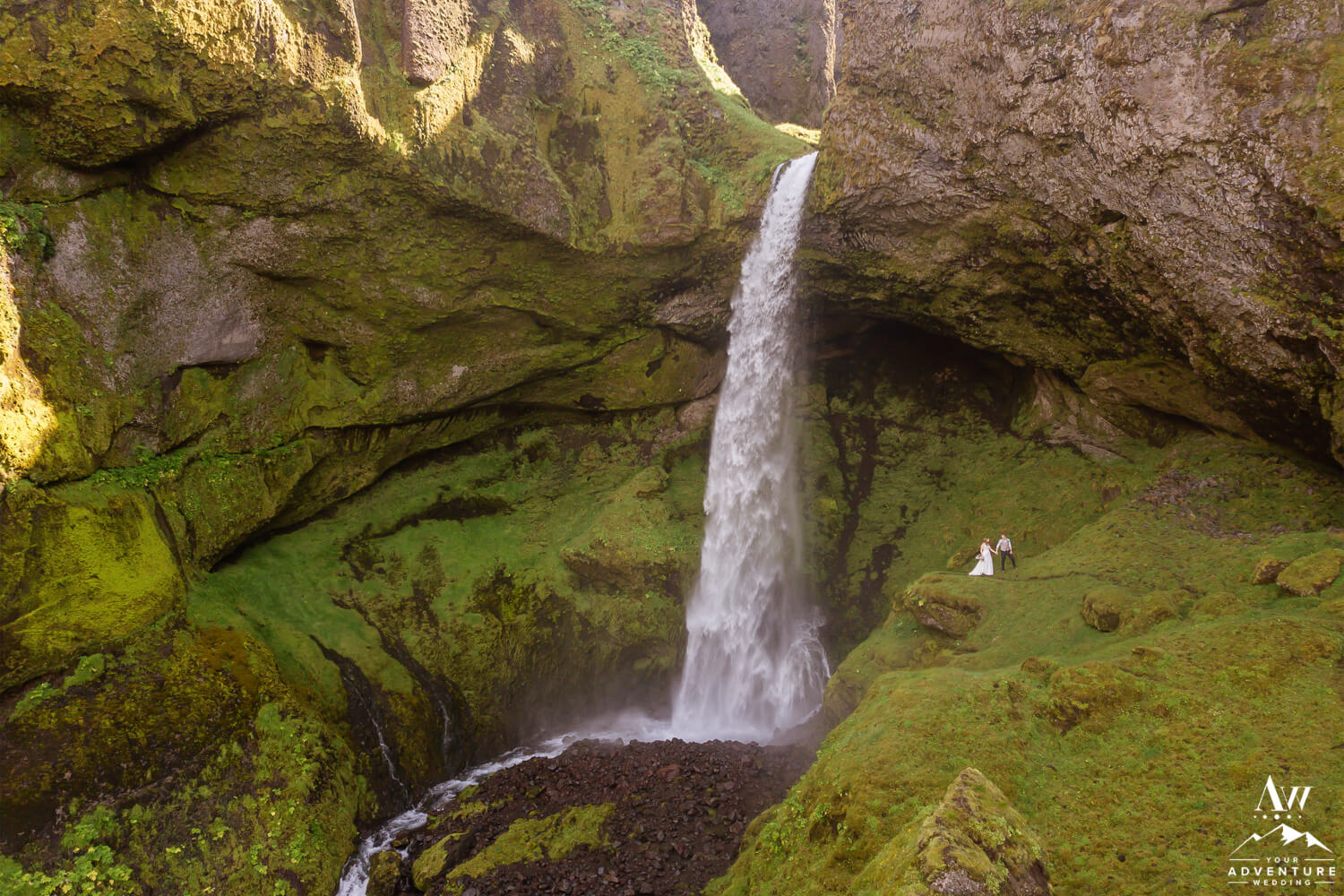 Woohoo it’s lunch time! Can you believe they explored three amazing areas already before lunch?! Chilling for 30 minutes during your Iceland adventure elopement enjoying a glass of bubbles and yummy food is a must do! Once they were full, they hiked into the secret waterfall area explore it. So many beautiful Iceland wedding photo opportunities.