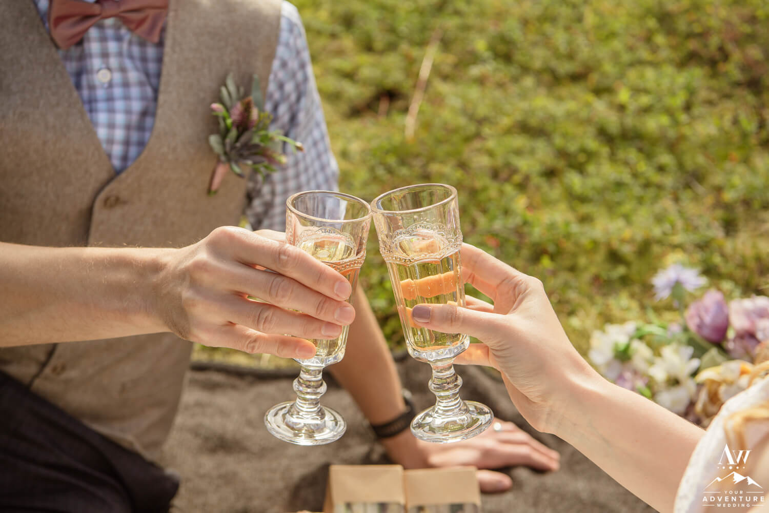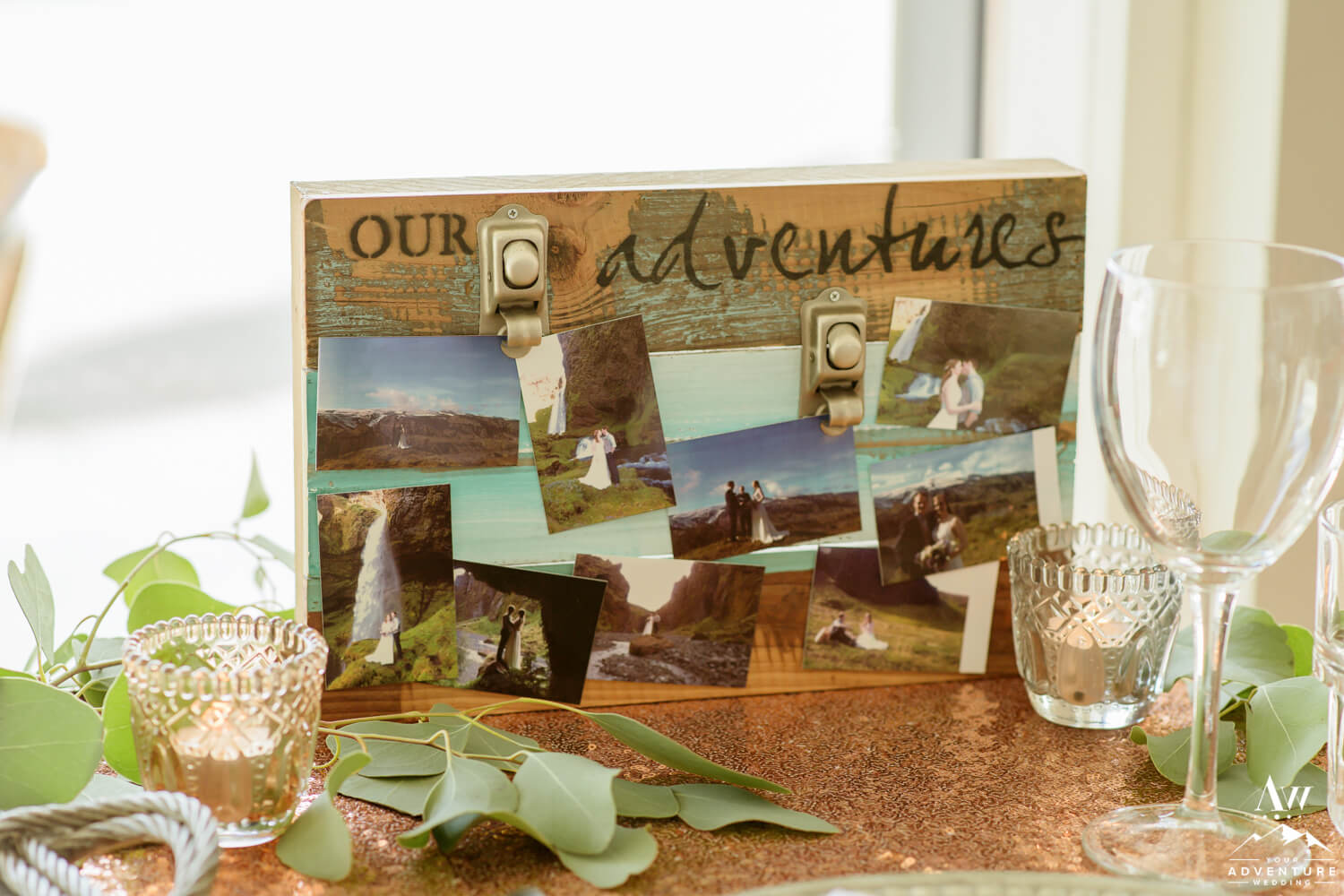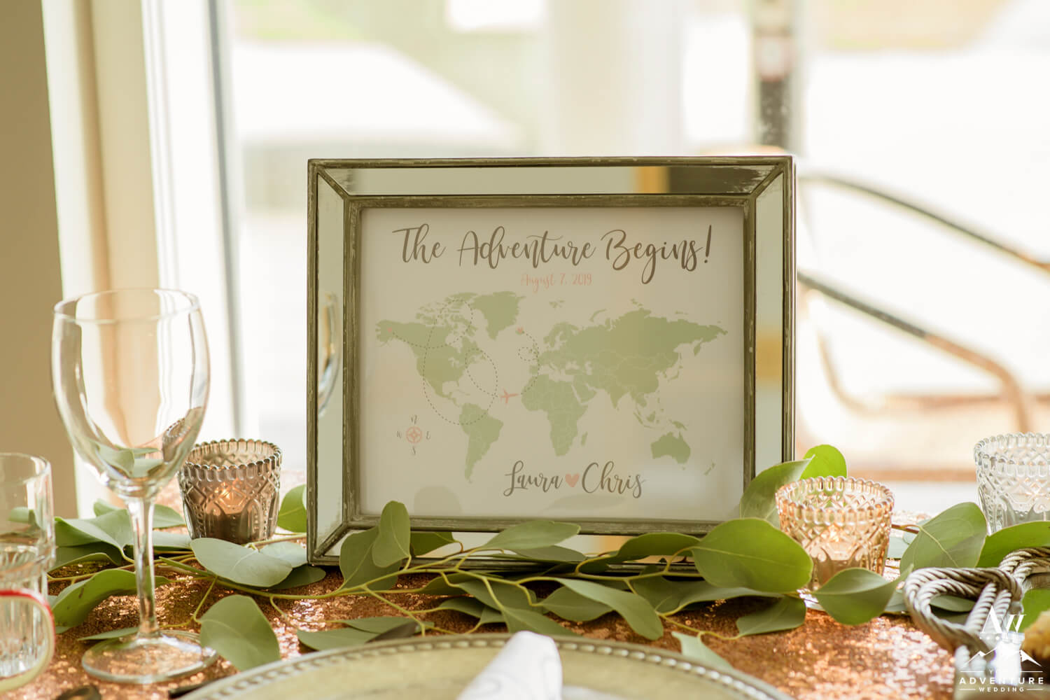 Including a romantically styled table for two during your luxury adventure elopement just makes sense! Really it adds another level of extraordinary to the experience. Walking into not just a bistro dinner table, but a perfectly styled just for you table is an incredible memory to keep but the items get to be taken home too! Needless to say, Laura and Chris really enjoyed their “Adventure Begins” themed adventurous wedding reception table!