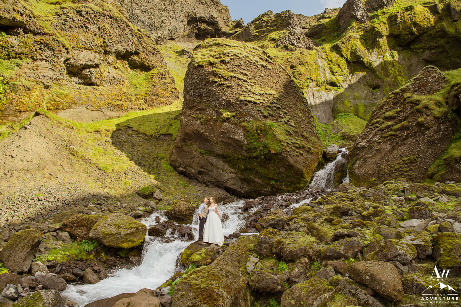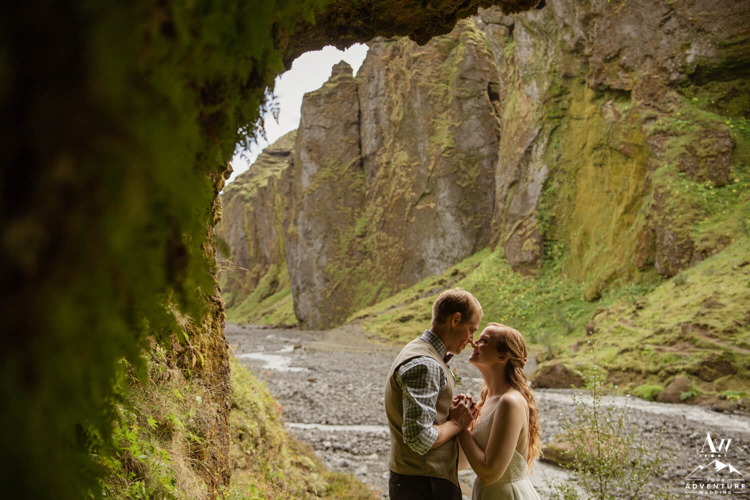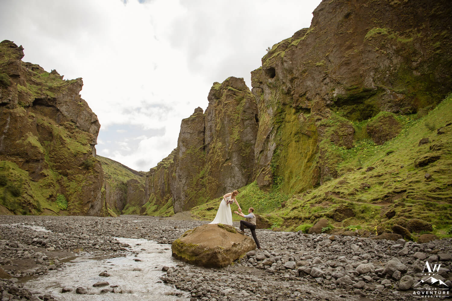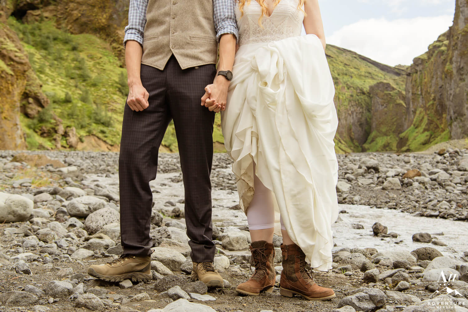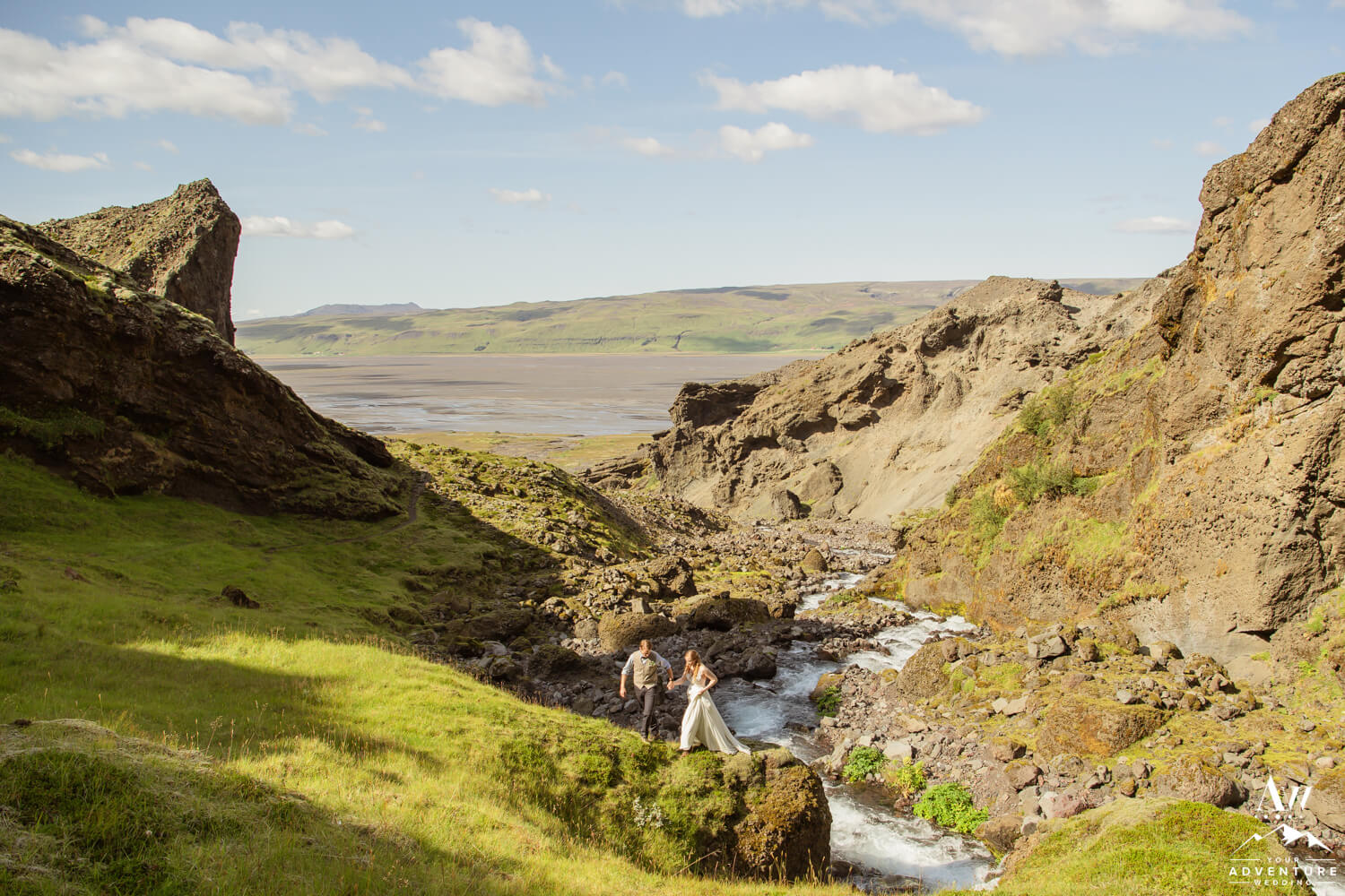 Planning an adventure elopement does not mean you have to hike all day to get somewhere freaking gorgeous. Especially since our Iceland elopement locations are only accessible by super jeep we are able to get you closer. Taking a short hike into a canyon was next on the adventure elopement agenda. Crossing rivers by foot these two geeked out with nature and looked oh-so good doing it!