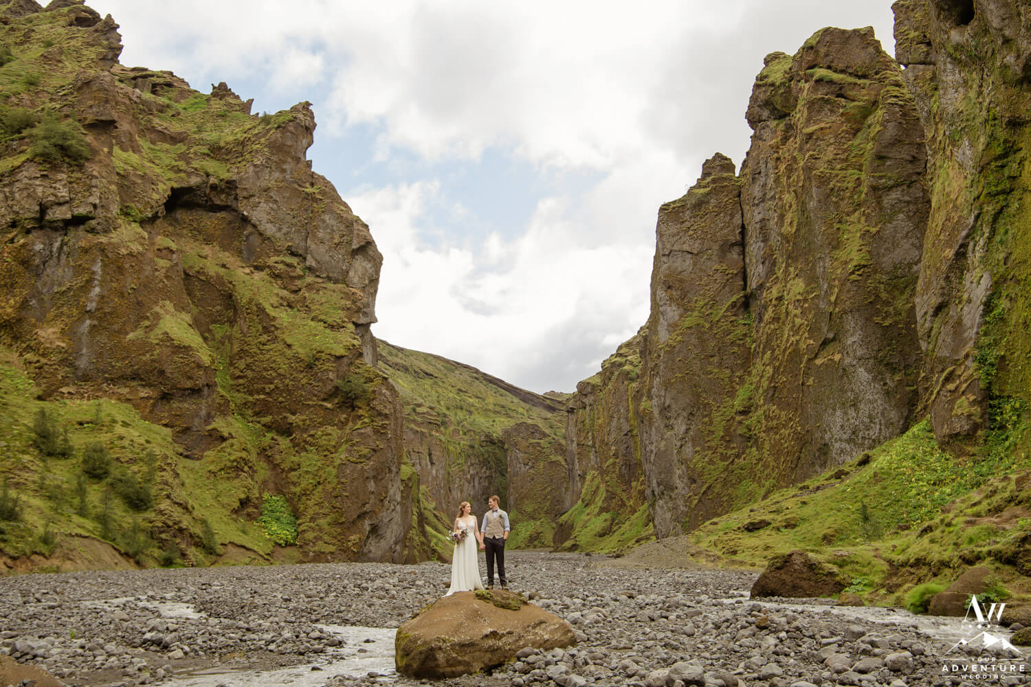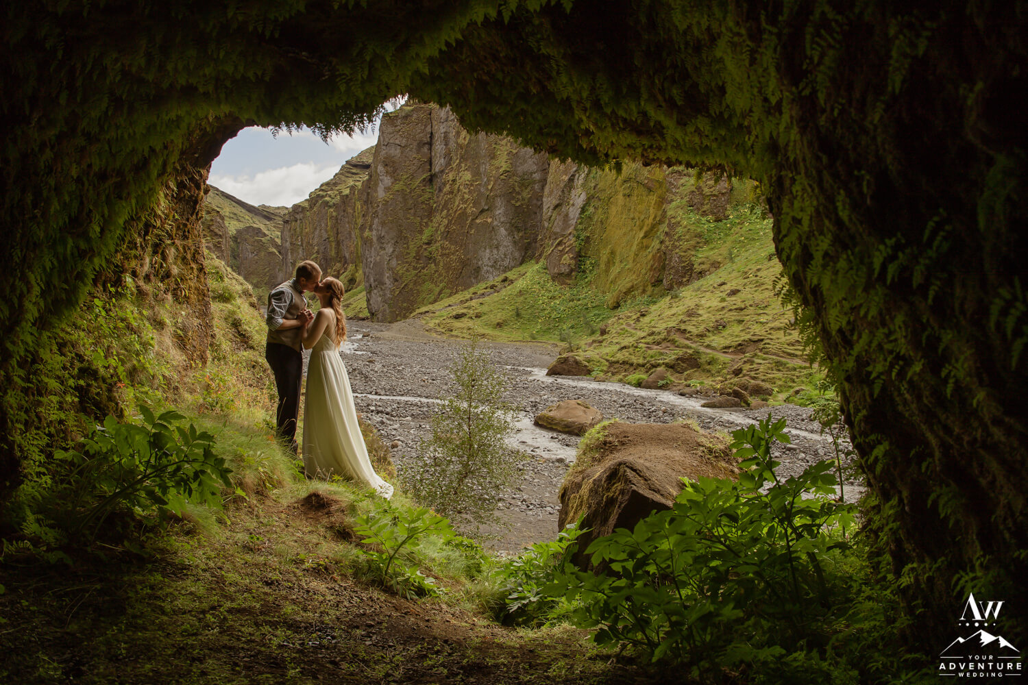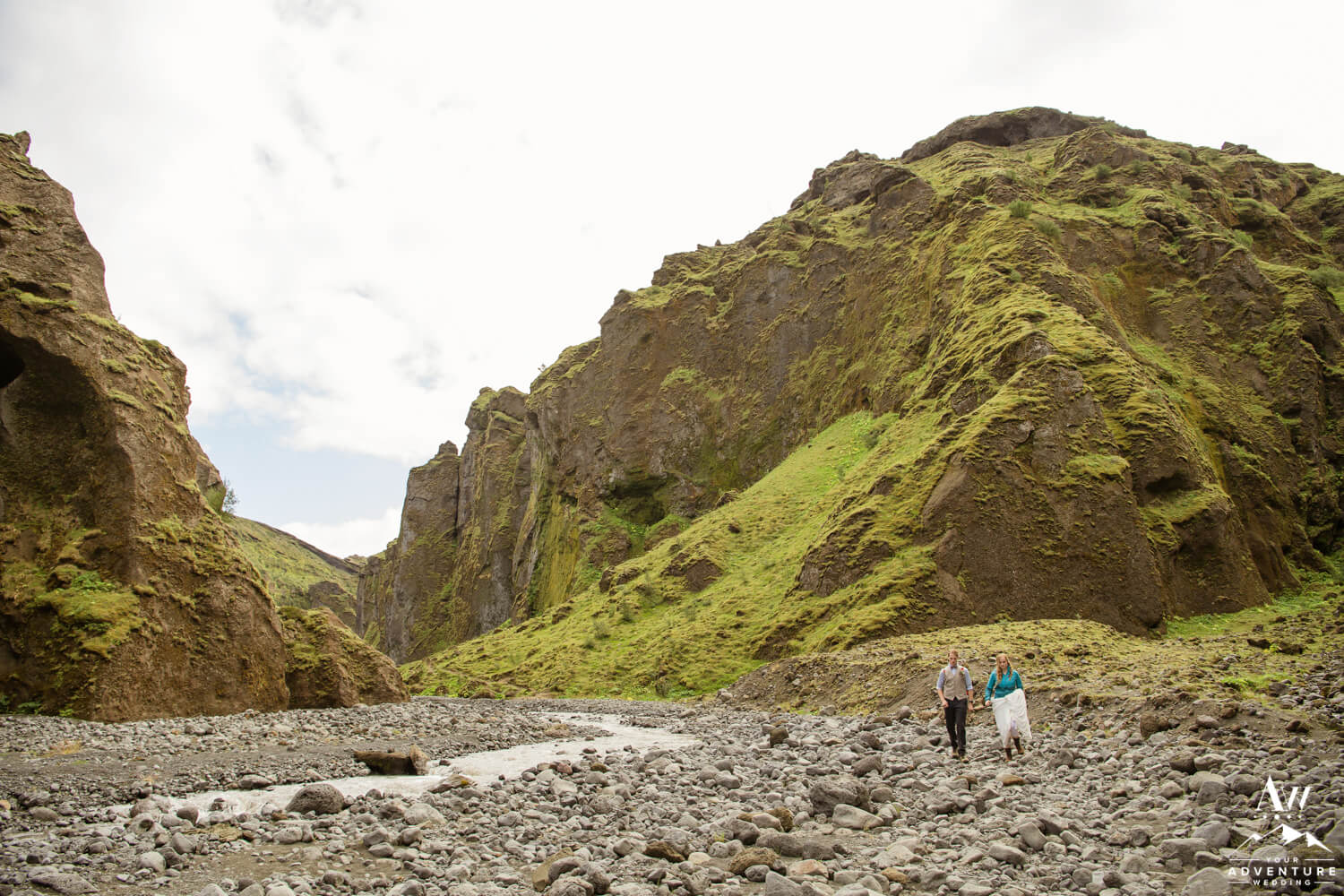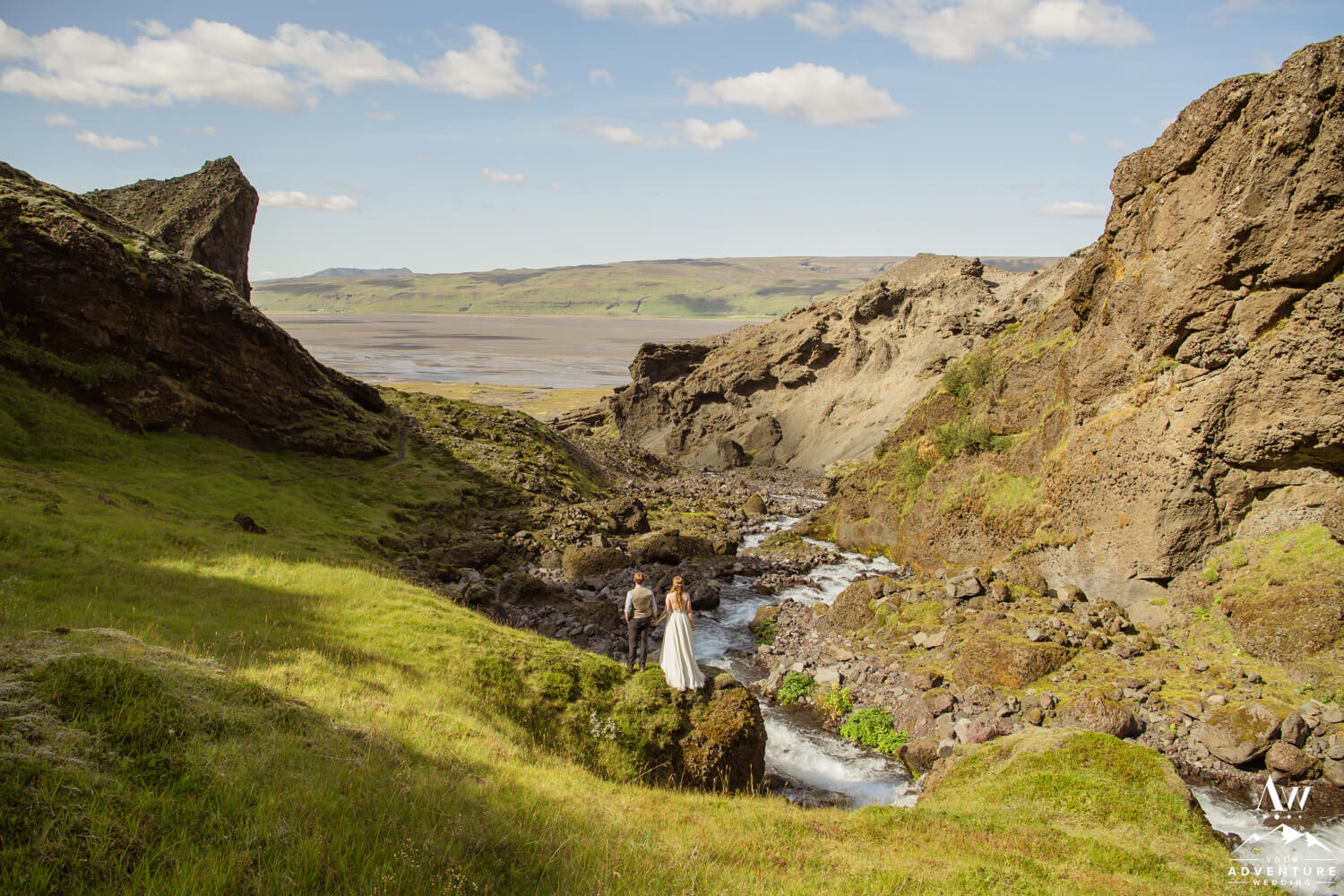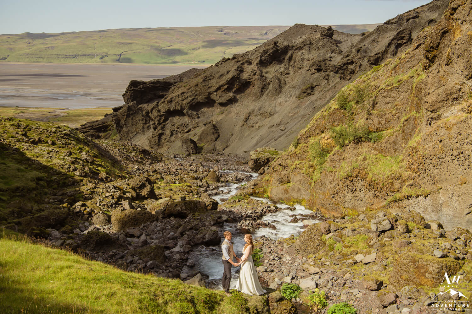 Planning an adventure elopement does not mean you have to hike all day to get somewhere freaking gorgeous. Especially since our Iceland elopement locations are only accessible by super jeep we are able to get you closer. Taking a short hike into a canyon was next on the adventure elopement agenda. Crossing rivers by foot these two geeked out with nature and looked oh-so good doing it!