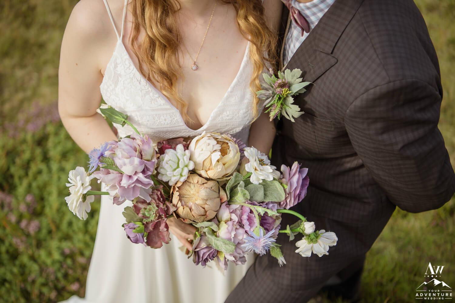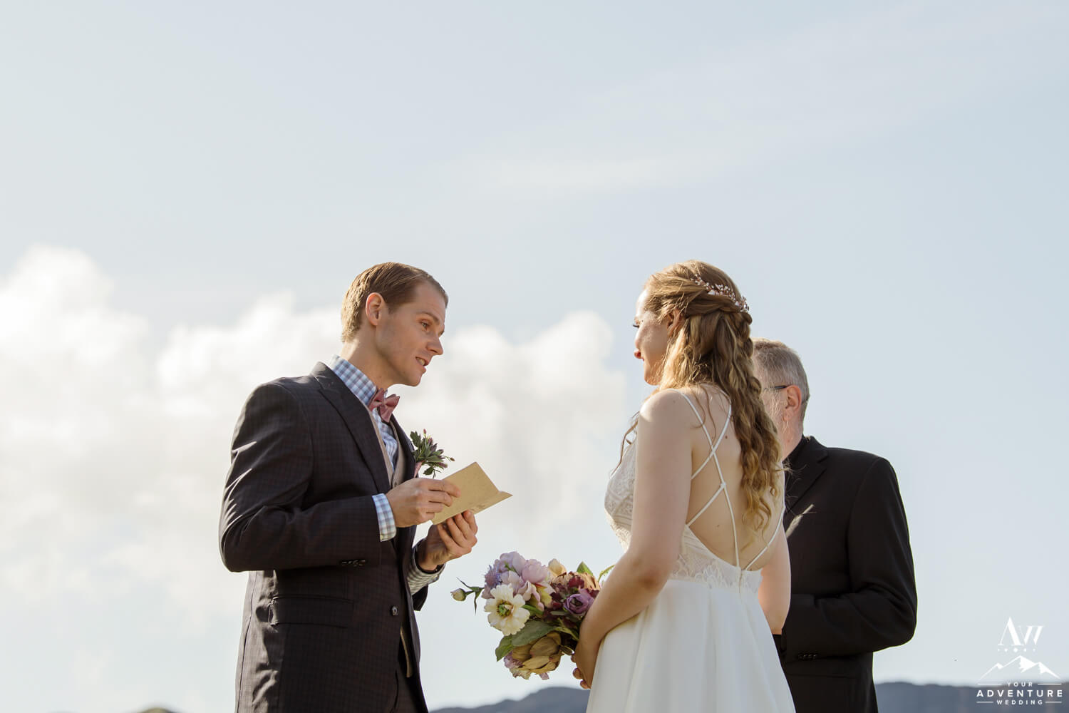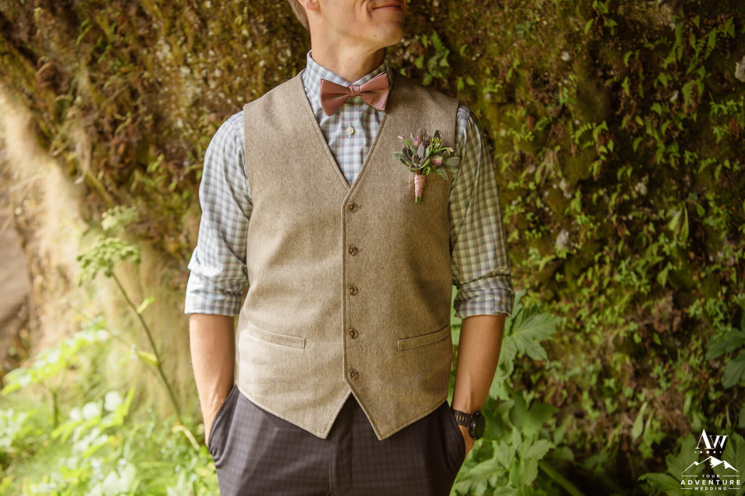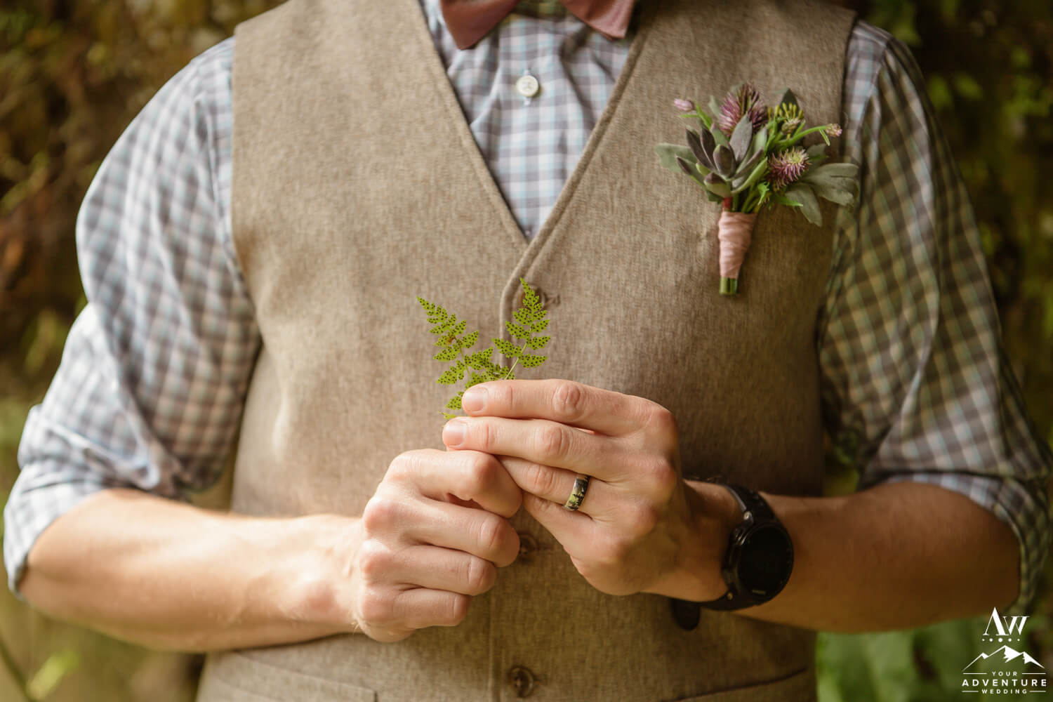There is something really empowering about embarking on a hike to your ceremony location! Our favorite Pastor and elopement photographer is thrilled to hike beside you two enjoying the view and cracking jokes! Soon to be newlyweds, Laura and Chris took their time hiking up the side of a gorgeous highland mountain and savoring every single view along the way. What is sweeter than a groom having his brides bouquet tethered to his backpack?!