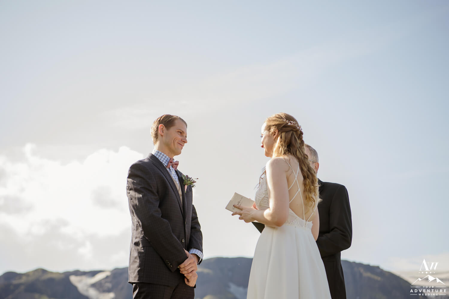 Arriving to the Iceland ceremony location, pretty sure everyone’s jaw dropped. Views of the mountains, glacier outlet, and blue skies were literally STUNNING! Not to mention the nature based ceremony our Pastor performed and personal vows that Laura and Chris spoke to each other were utterly inspiring too! Easy to say that backpacking to the wedding ceremony location was 100% worth it!