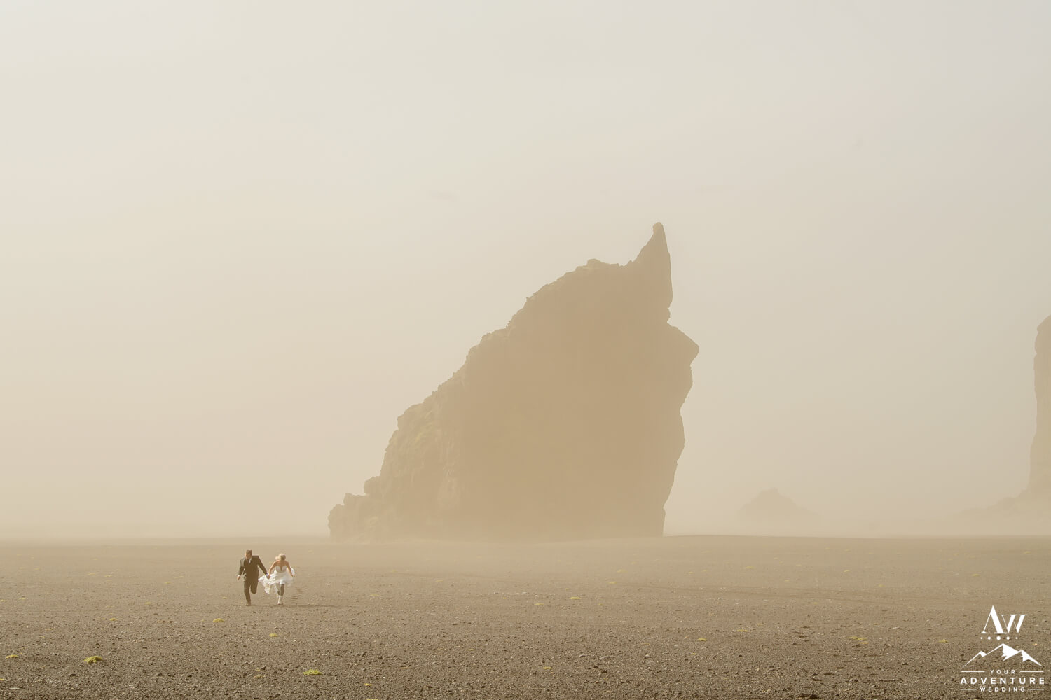 Okay, so how do you deal with a sand storm during your Iceland wedding ceremony? You don’t. Plan “b” the ceremony location. There are countless other Iceland wedding locations you can consider and hopefully your Iceland elopement photographer, knows the area well to do so. Likely, the sand storm will vary in intensities so look on Belgingur (Note: Wind are in meters per second) and Safe Travel to see where the wind subsides. As it is not only dangerous to your eyes, but totally unpleasant to have sand and little rocks in your mouth, ears, and sand blasting your skin.
