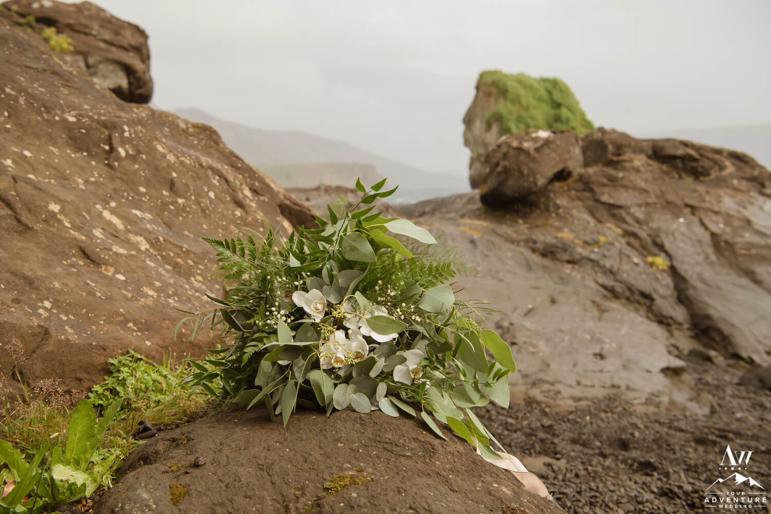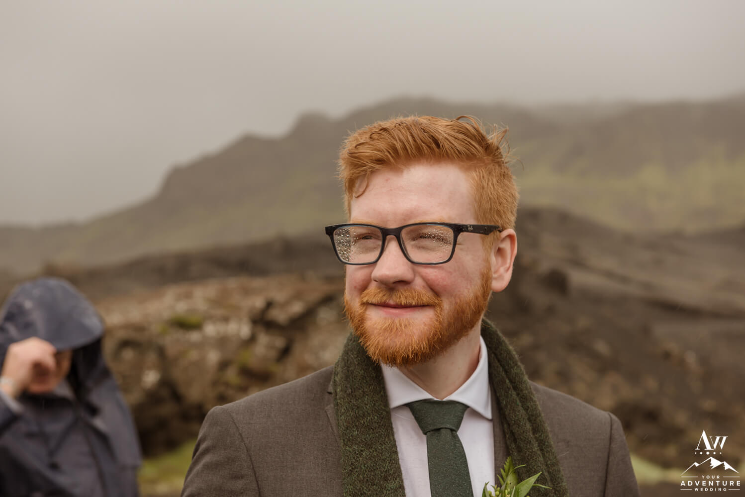 Upon arriving to the Iceland wedding ceremony location, it was raining. Our Iceland wedding, Day of Planner, Vanessa got people ready with rain gear, offered up umbrellas, blankets, and lots of contagious positivity! Everyone was ready to take a short hike down to the ceremony location and grab a cozy seat!