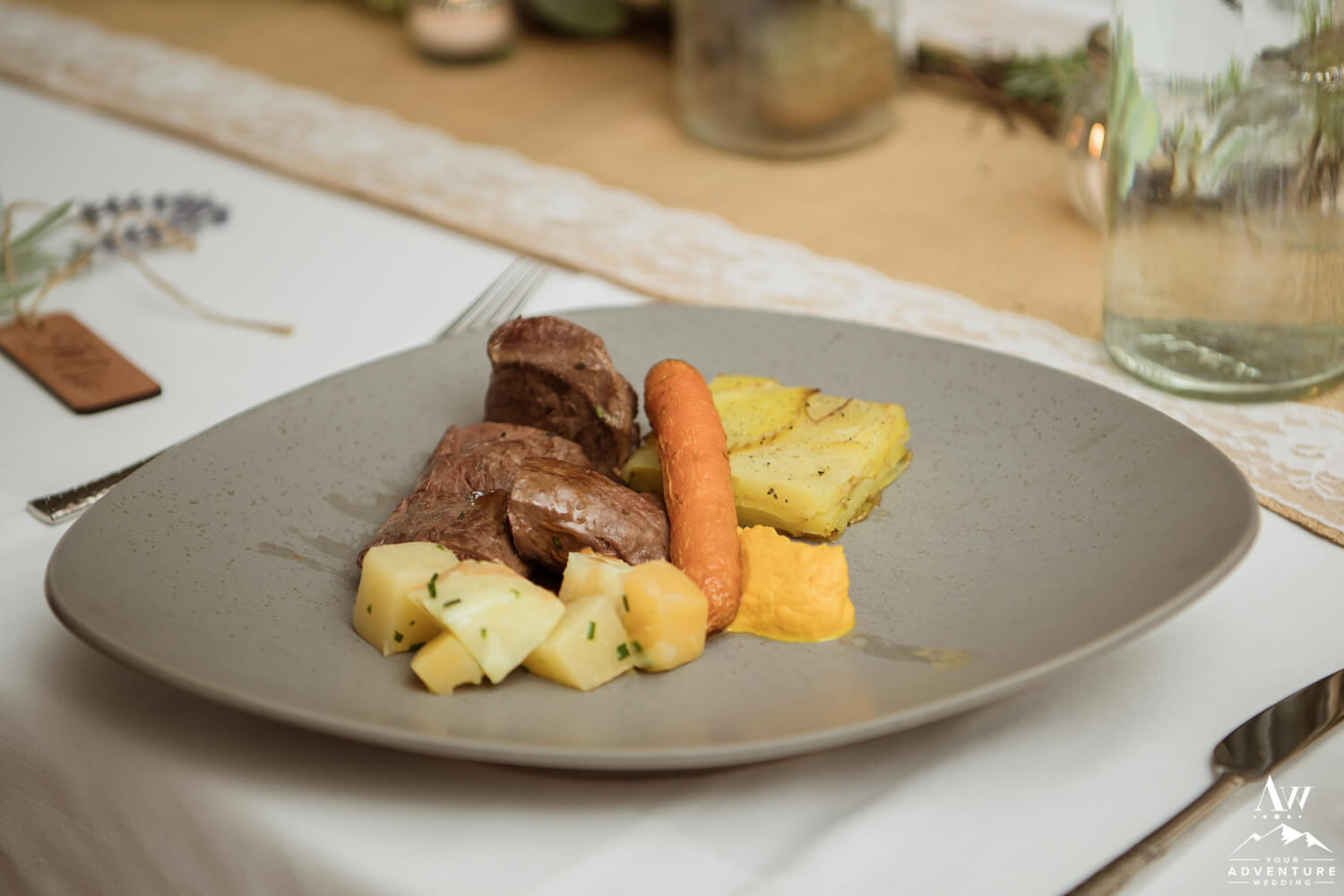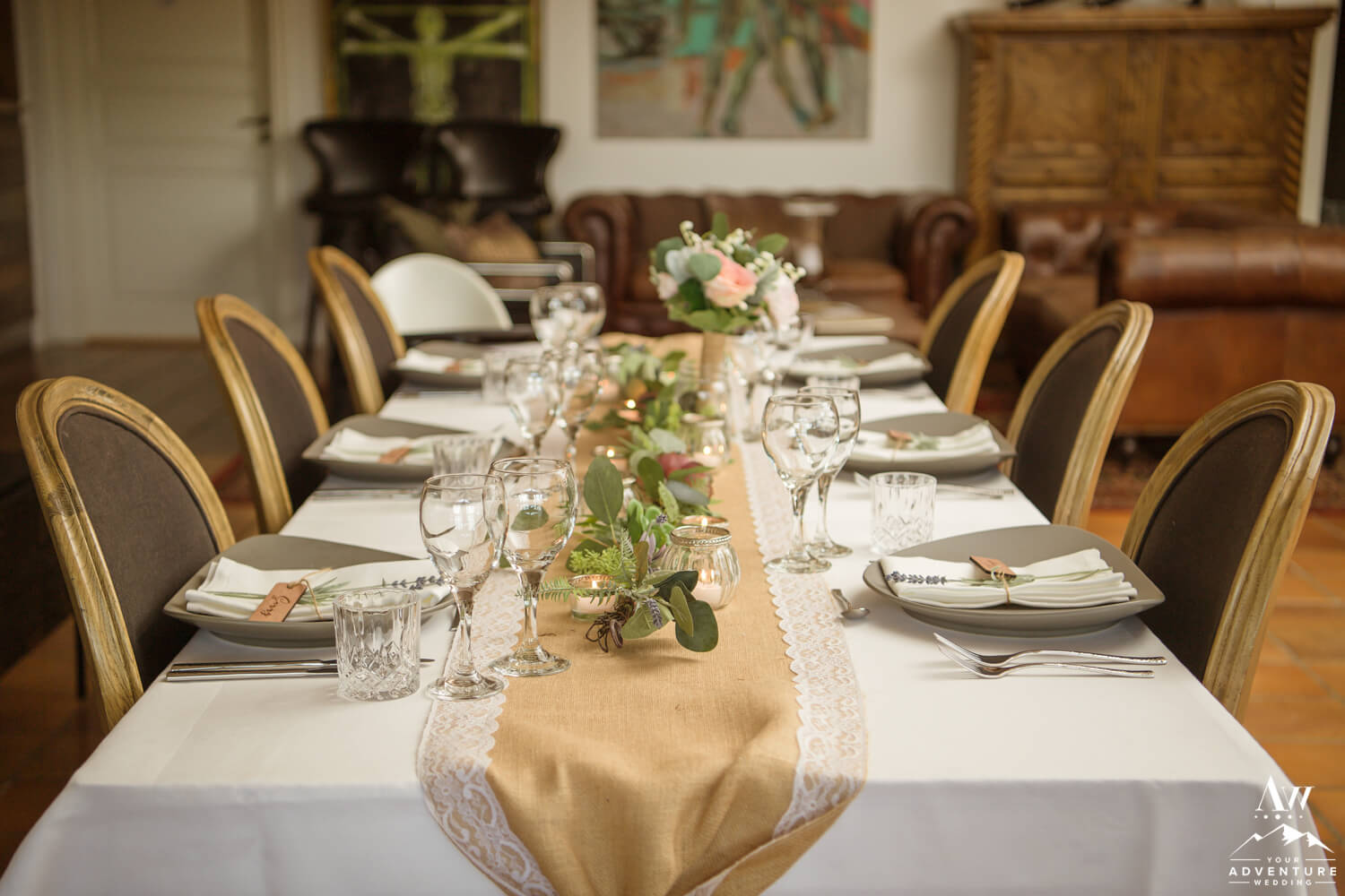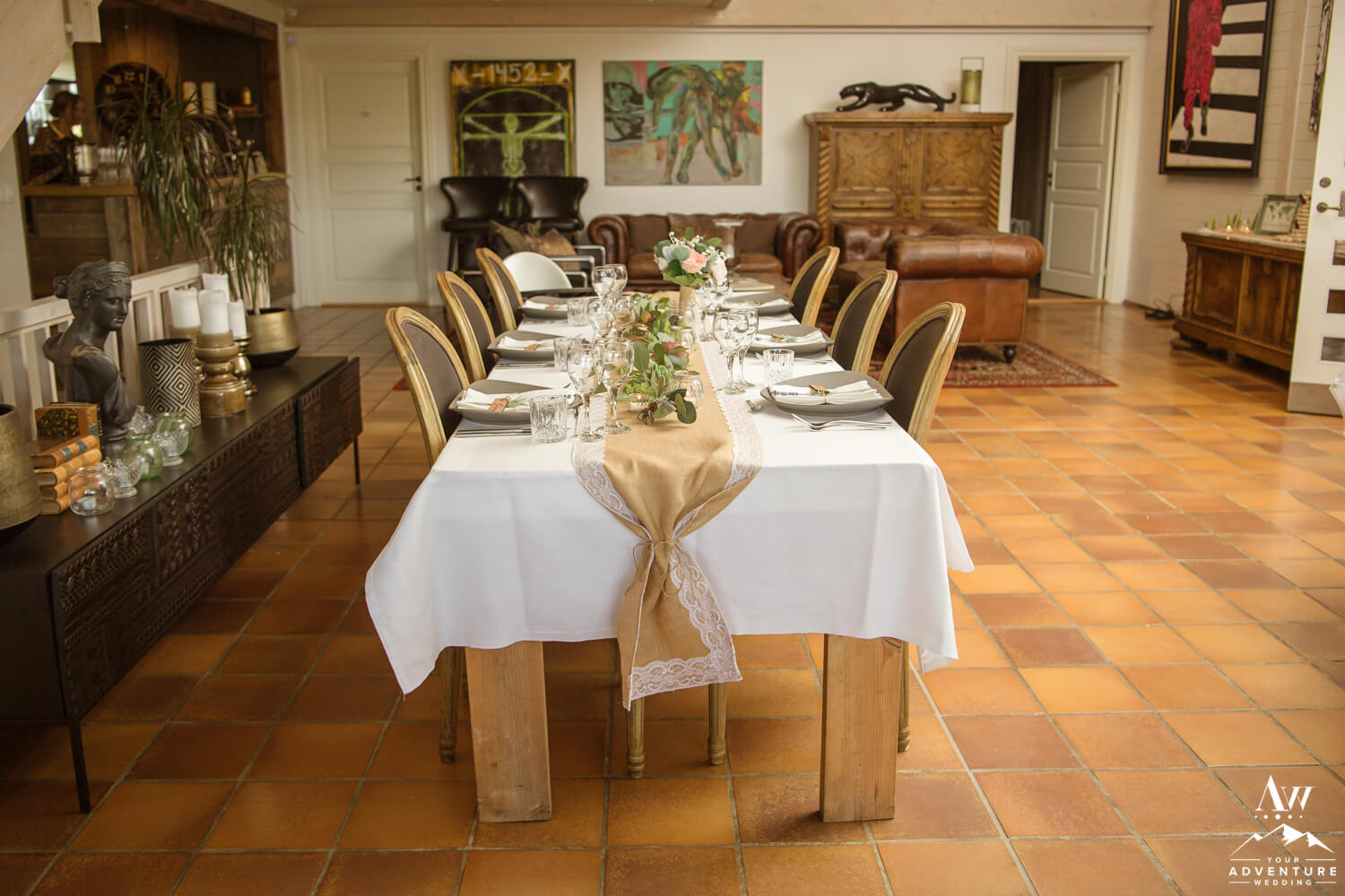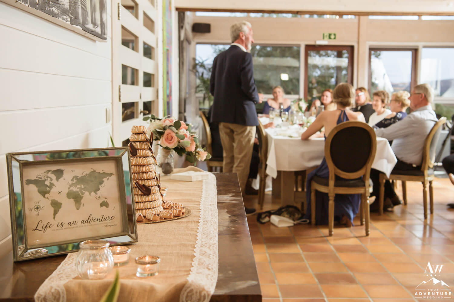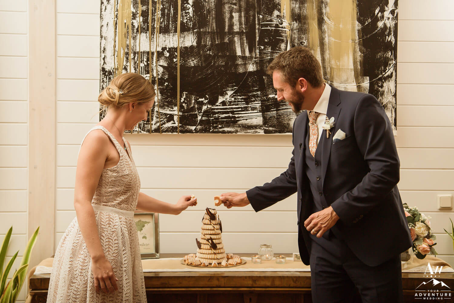 Landing back to the Iceland luxury lodge sometime after 6:30pm, these two lovers had about one hour to rest and refresh while the rest of their guests already began the party! Three mouthwatering courses were hand crafted and delivered to each guest and frankly, everyone was left speechless!! Finally for the final dessert, guests were invited to partake in the kransakaka tradition. Which wishes the newlyweds well and allows everyone to have a taste of local tradition! Yum!!