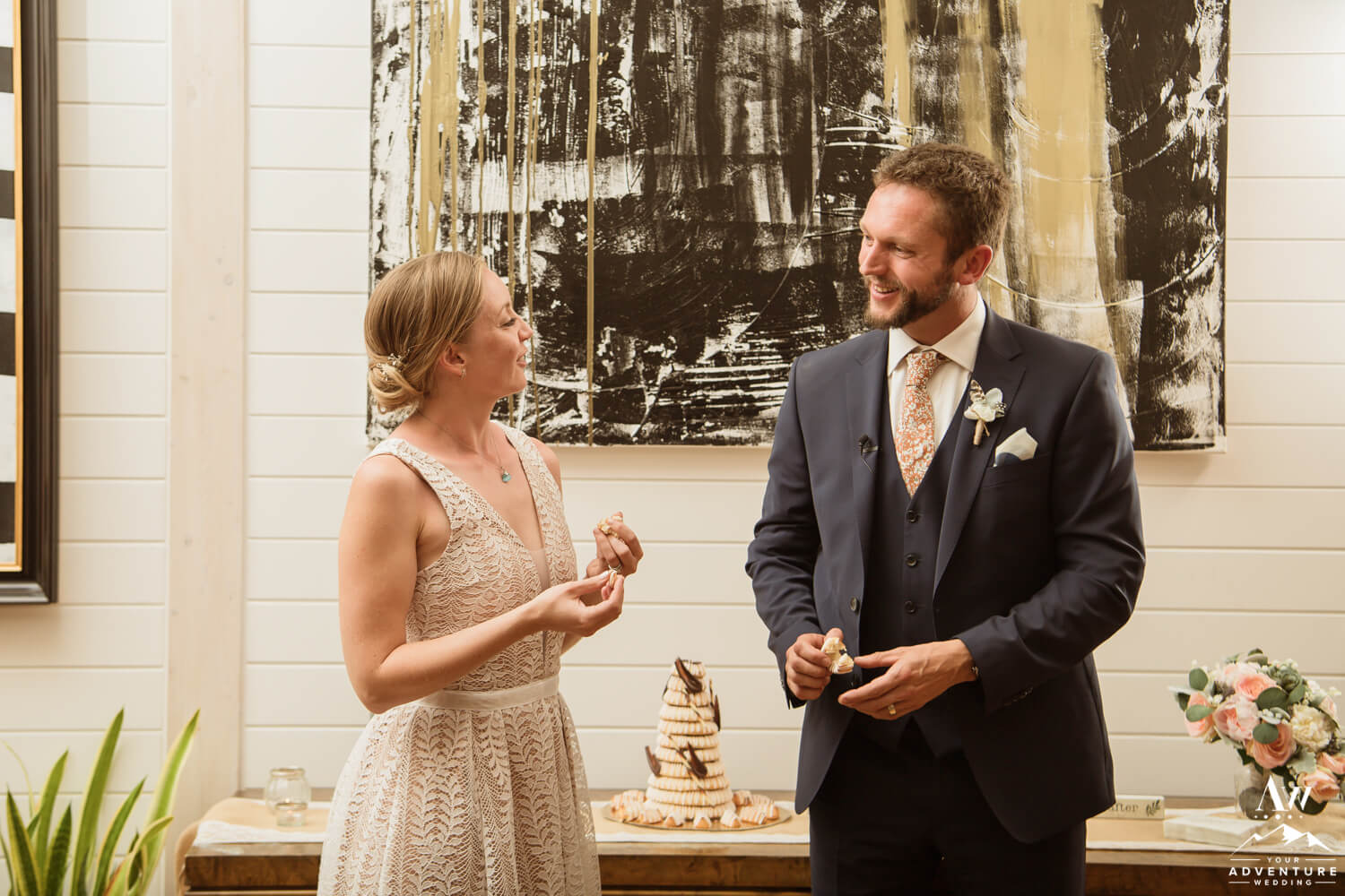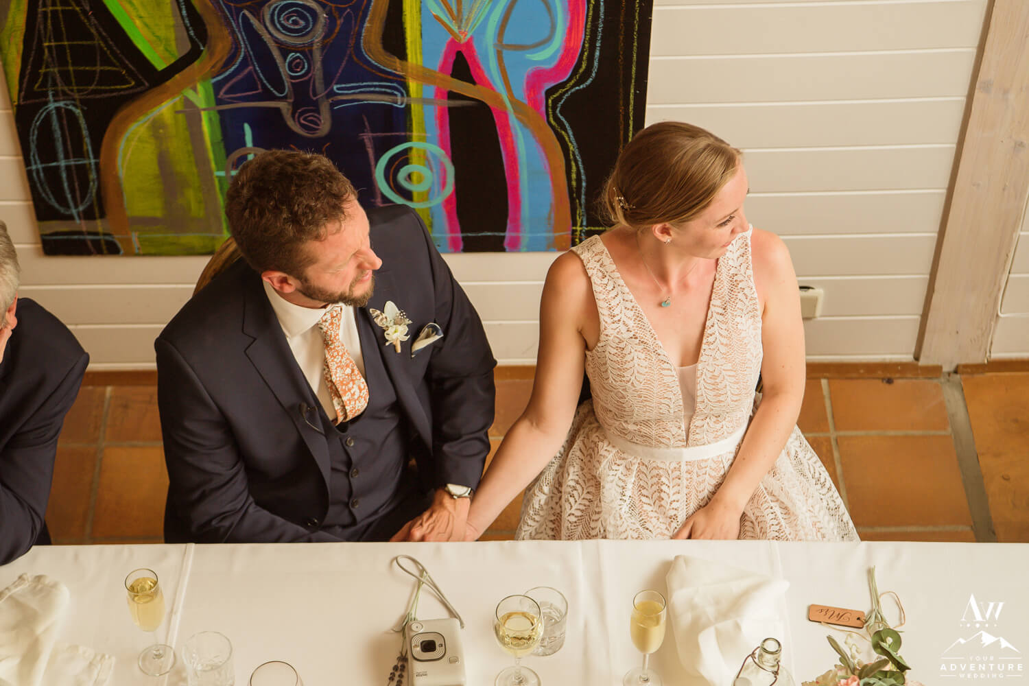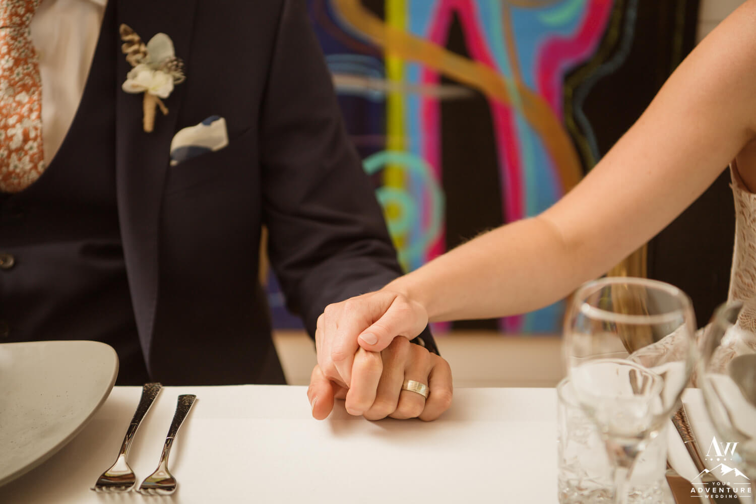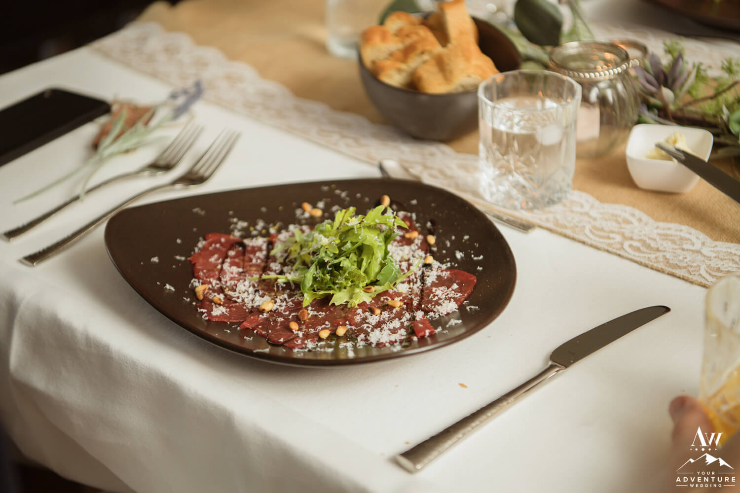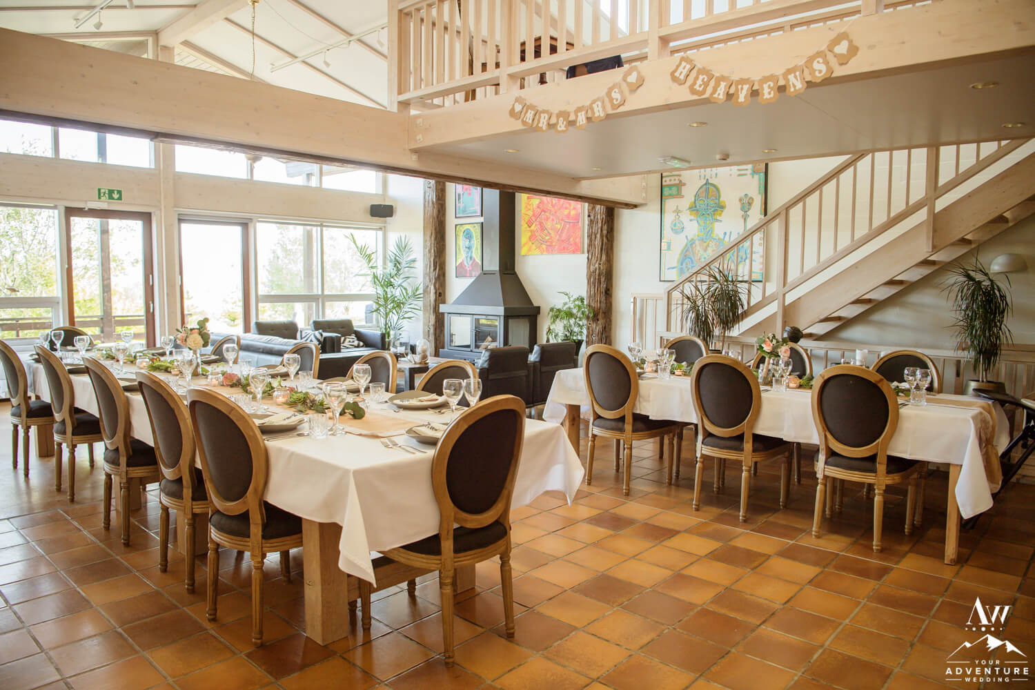 Landing back to the Iceland luxury lodge sometime after 6:30pm, these two lovers had about one hour to rest and refresh while the rest of their guests already began the party! Three mouthwatering courses were hand crafted and delivered to each guest and frankly, everyone was left speechless!! Finally for the final dessert, guests were invited to partake in the kransakaka tradition. Which wishes the newlyweds well and allows everyone to have a taste of local tradition! Yum!!