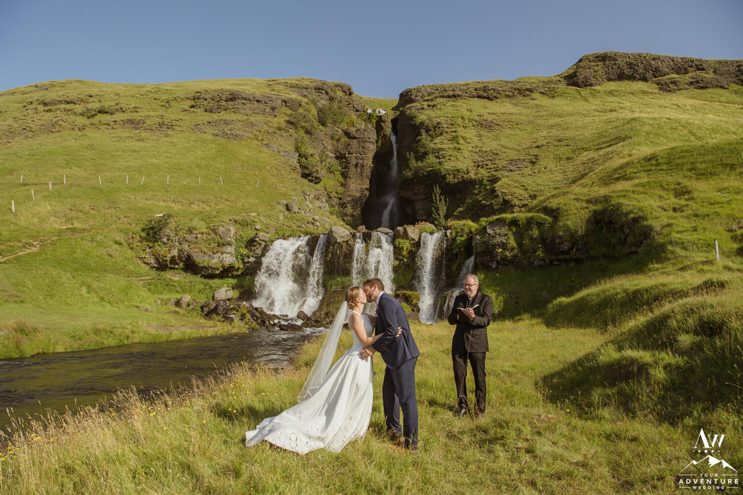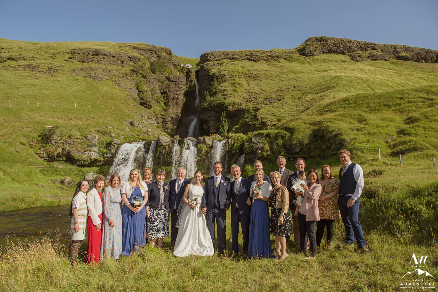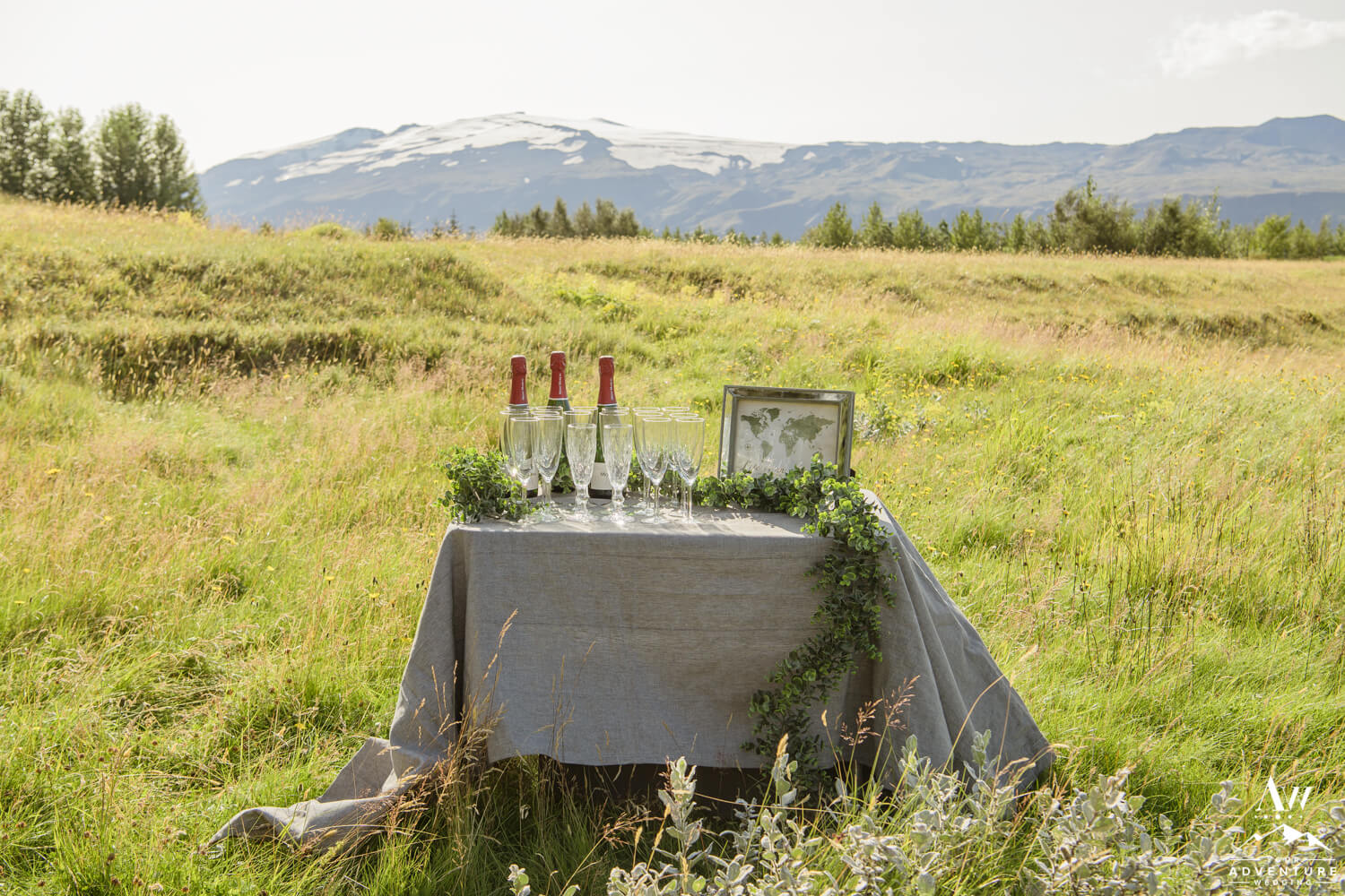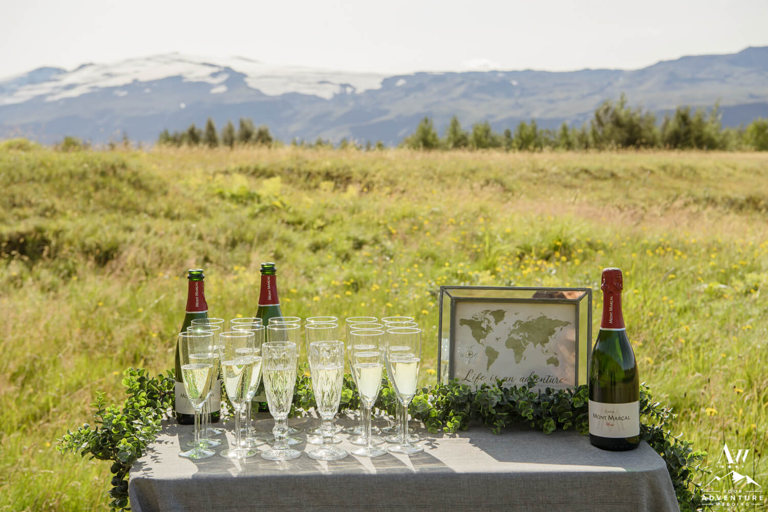 Upon arriving to the private property waterfall, our Day of Planner went to work setting up the ceremony seating, the champagne toast, and organizing the guests and bridal party. Lucy and her father shared a beautiful walk across a bridge and down the aisle to Dave. Our favorite Pastor, performed a custom ceremony complete with the couple reciting their own Iceland wedding vows. Immediately following the ceremony the group were given glasses of cava in celebration of the newlyweds! Truly a delightful end to their summer Iceland nuptials and ceremony!