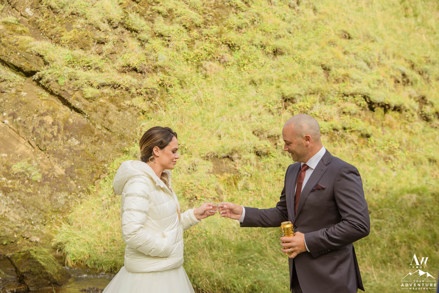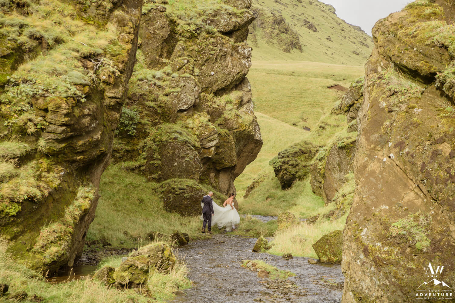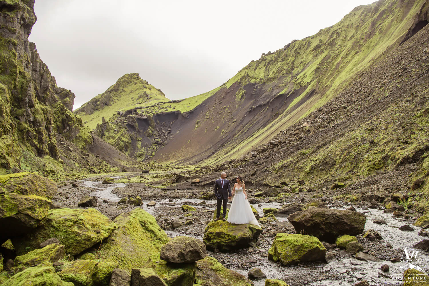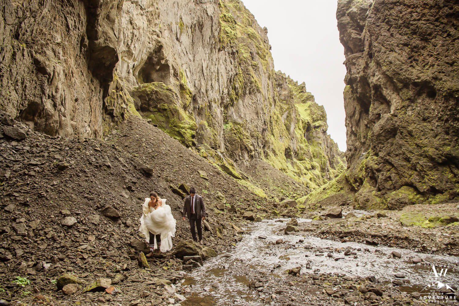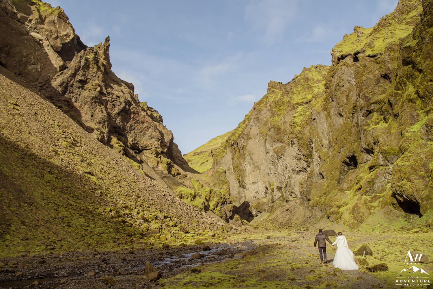 What intrigued Travis the most, was the vivid greens that live during summer and early fall in Iceland. Nowhere else in the world has he seen such colors. In crafting a custom Iceland wedding schedule for them, this sweet private property canyon instantly came to mind! While there exploring, they just so happened so try a little Icelandic schnapps too, called Brennivin!