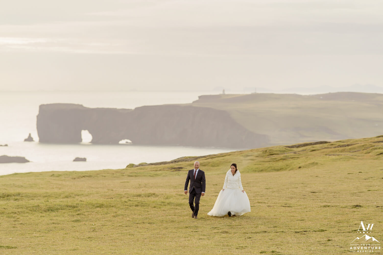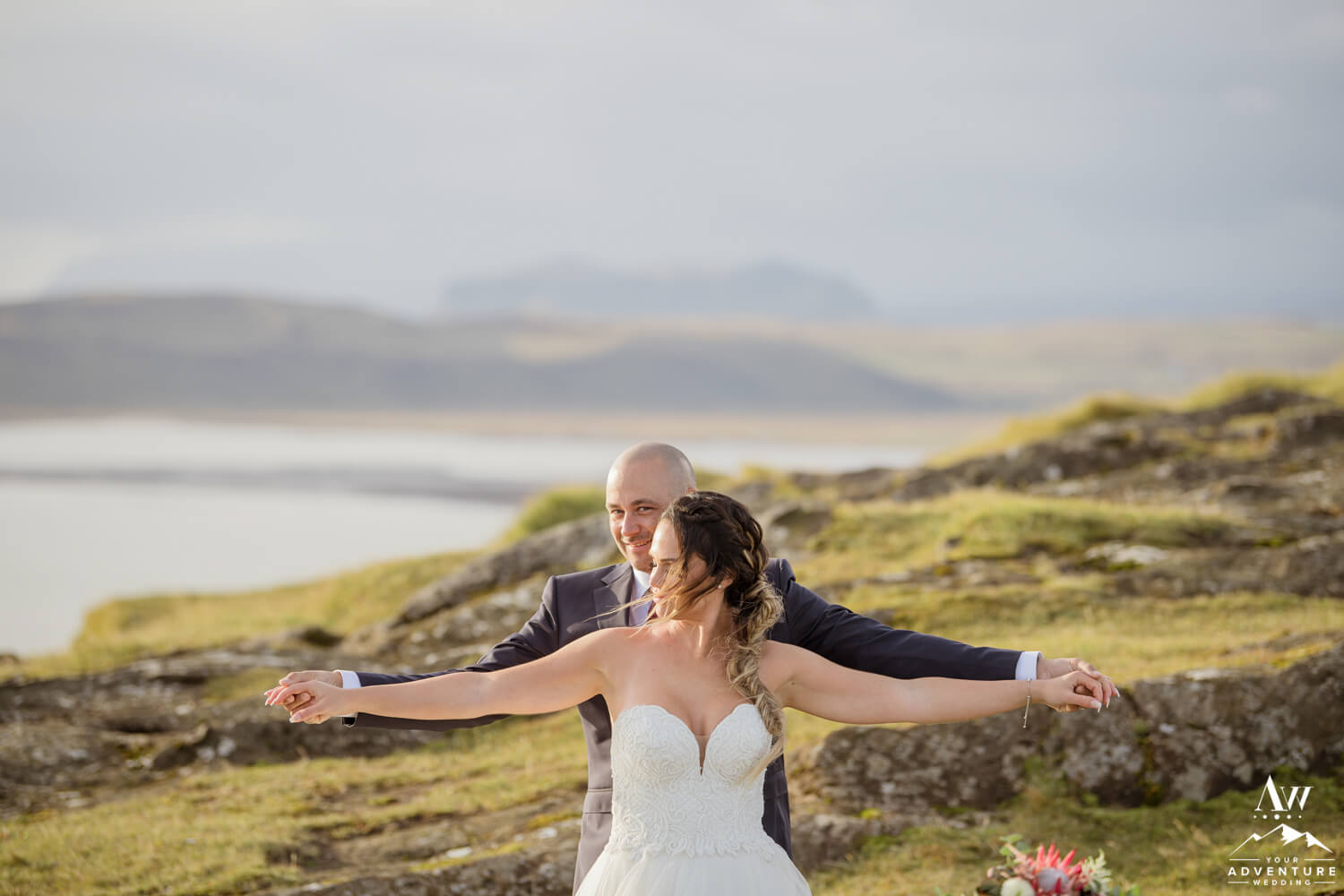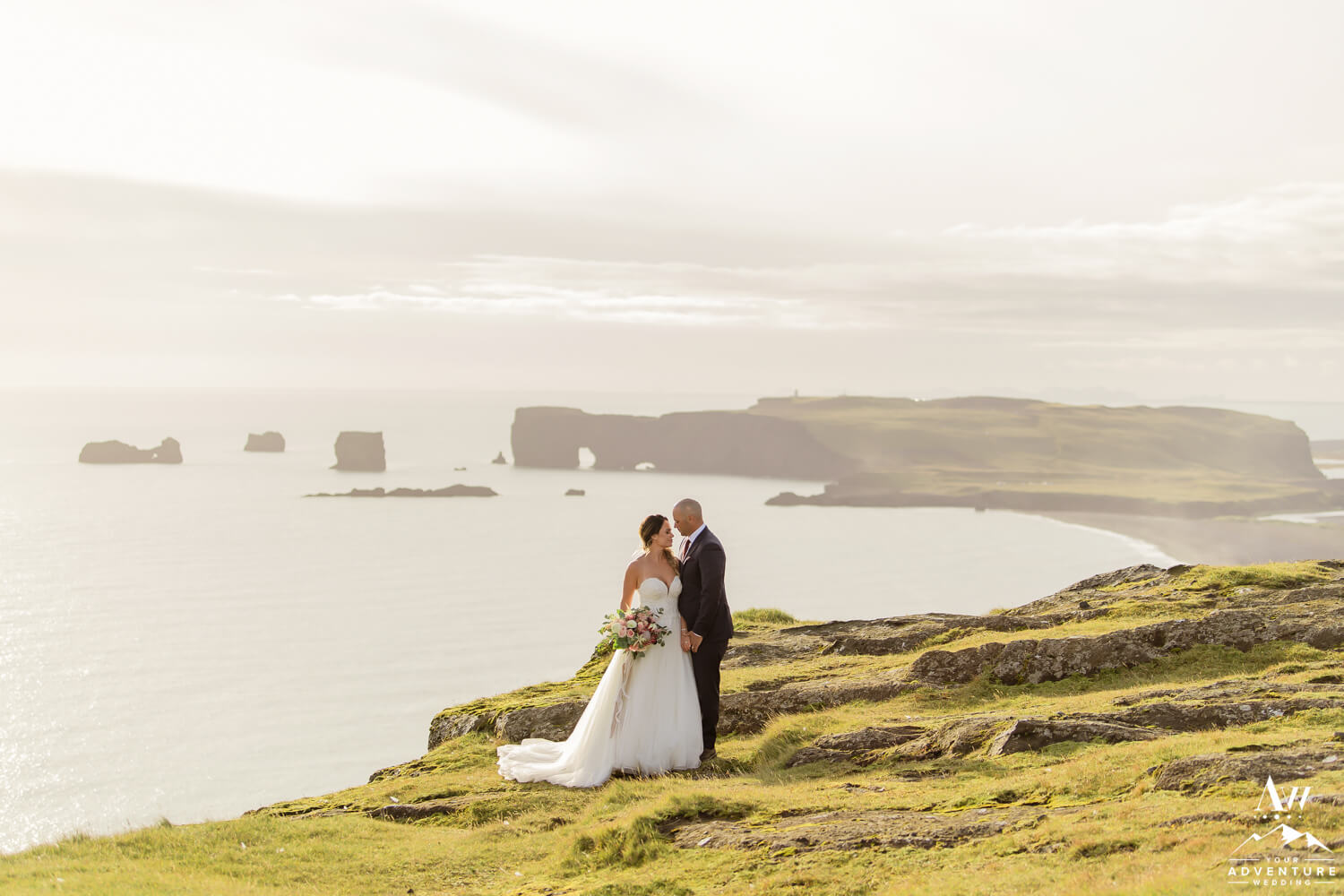 Lastly on their hiking elopement, was seeing the warm sunset colors begin from the top of a mountain. Overlooking the other side of Dyrhólaey, the sea arch was really stunning as that is where they began their day. Super sweet to see the day go full circle! Following their intimate trekking wedding in Iceland, they began a honeymoon that explored the countless offbeat places!