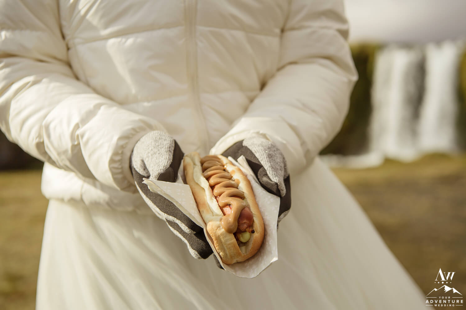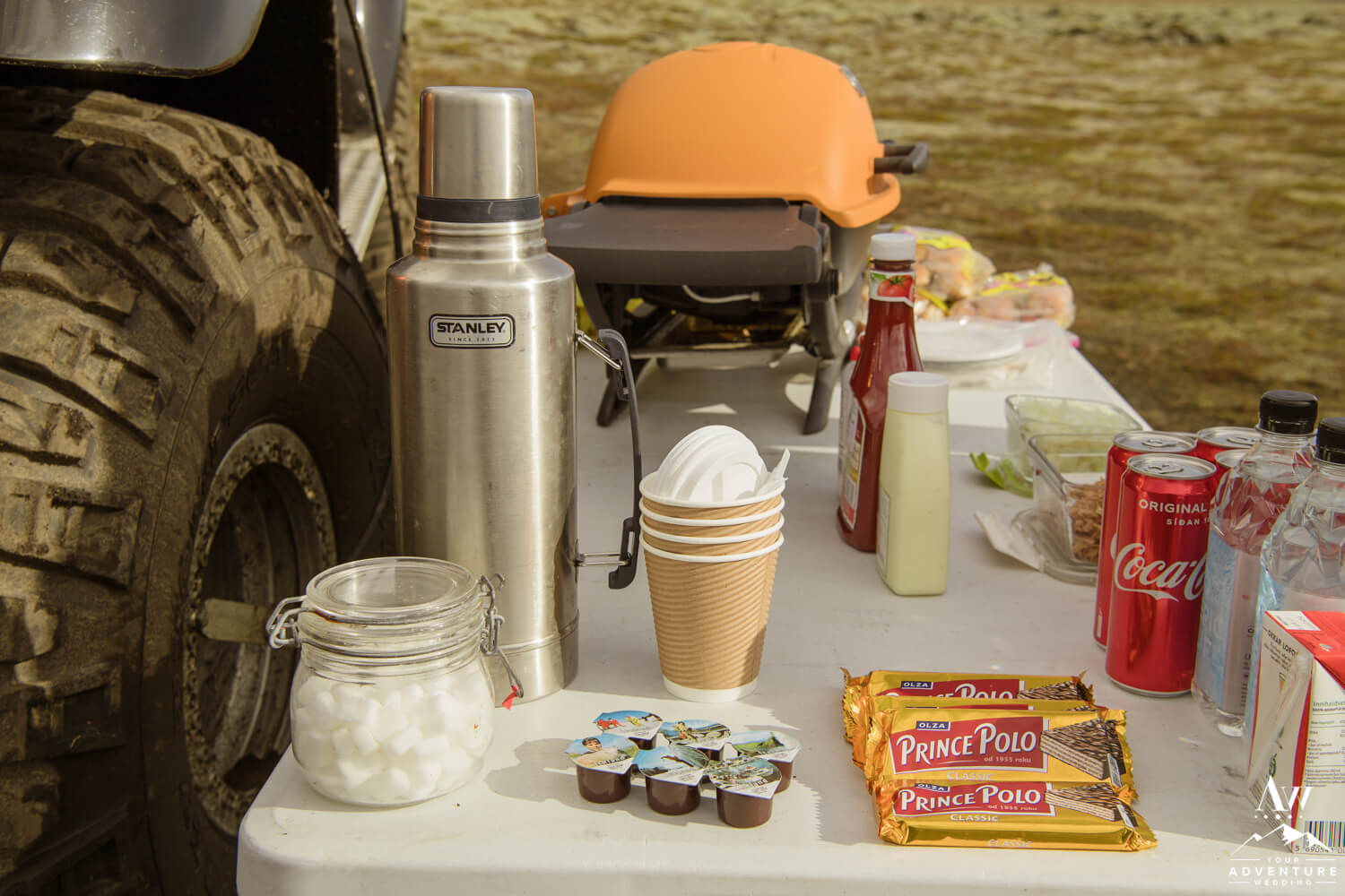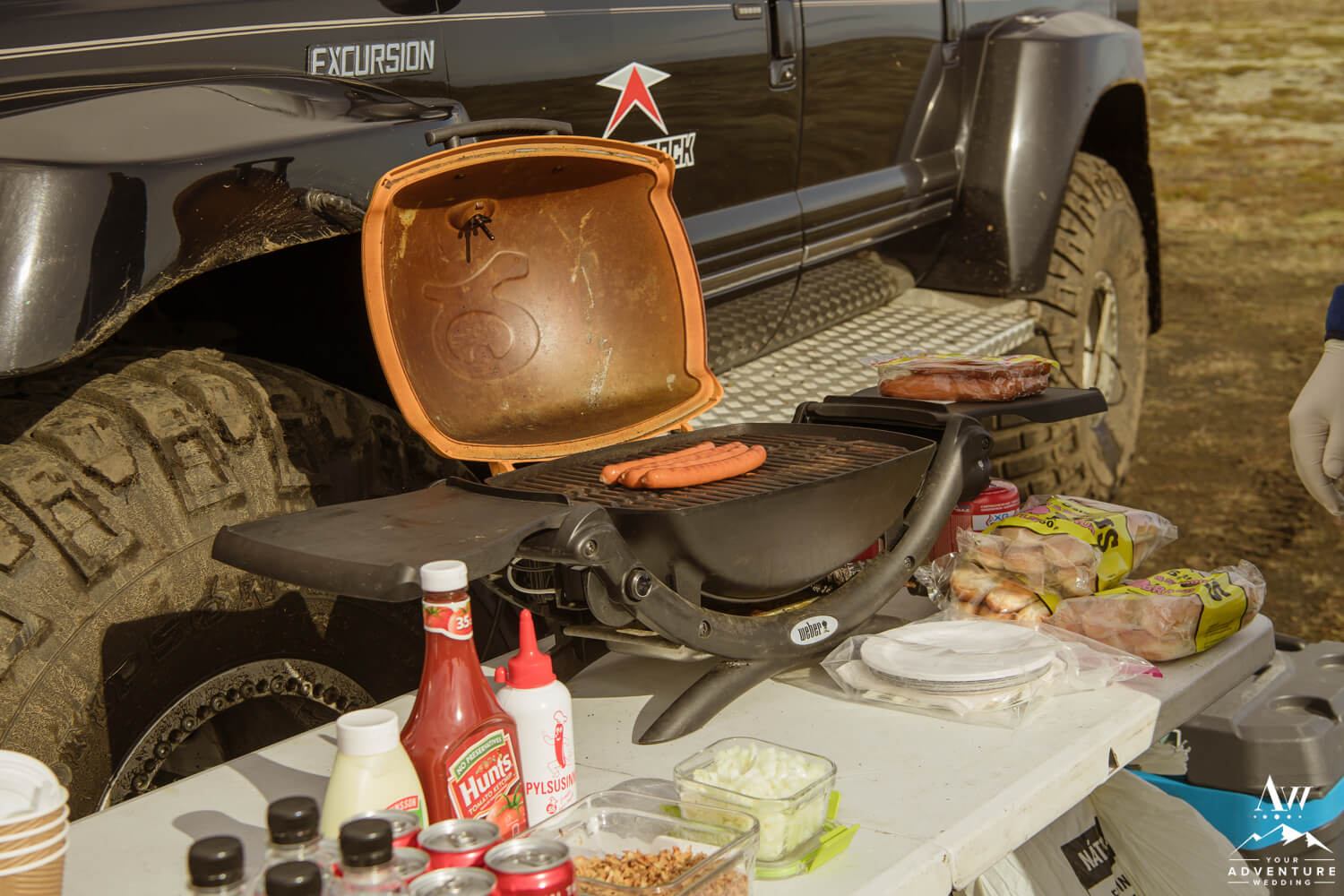 Avid waterfall hunters, these two love chasing waterfalls. Next on the agenda was one of our first and most amazing private property waterfalls! Over 8 years later and our team still goes speechless at it’s beauty. Fair to say that Chelsea and Travis did too! Upon arrival to the adventure wedding location, our team got to work on creating their lunch experience! Thoroughly enjoy the traditional hot dog BBQ, they explored the waterfall together hand in hand, with only sheep nearby watching.