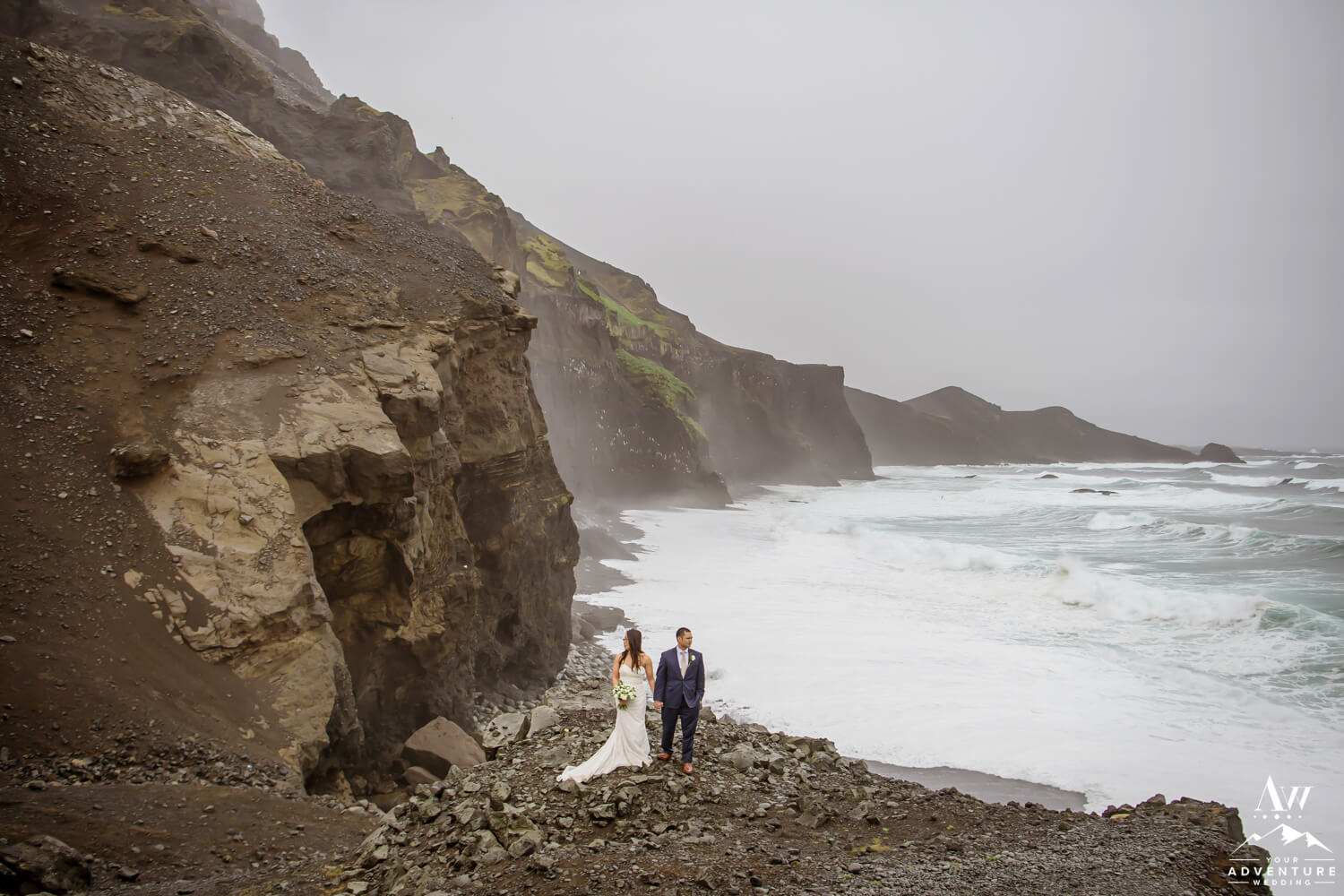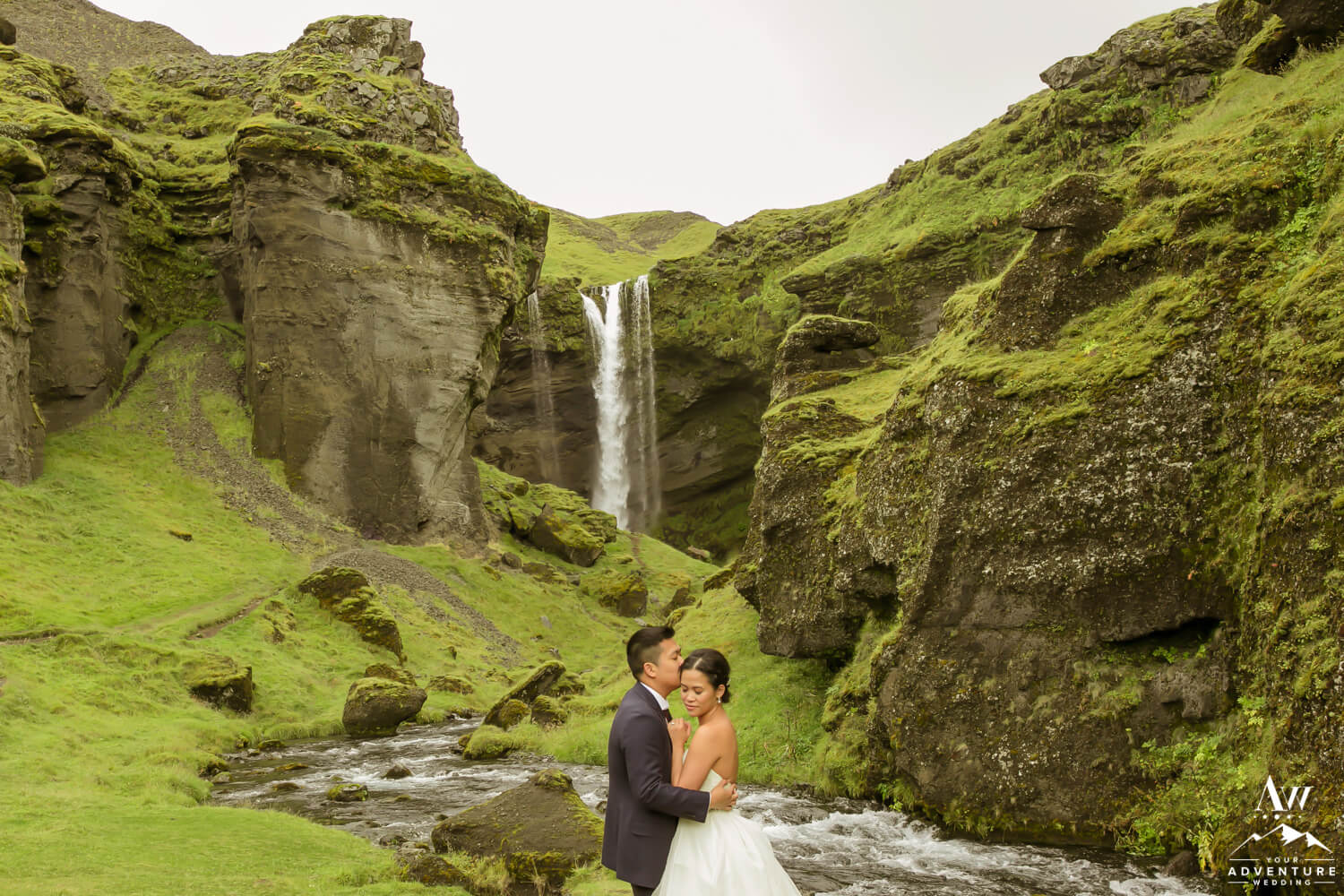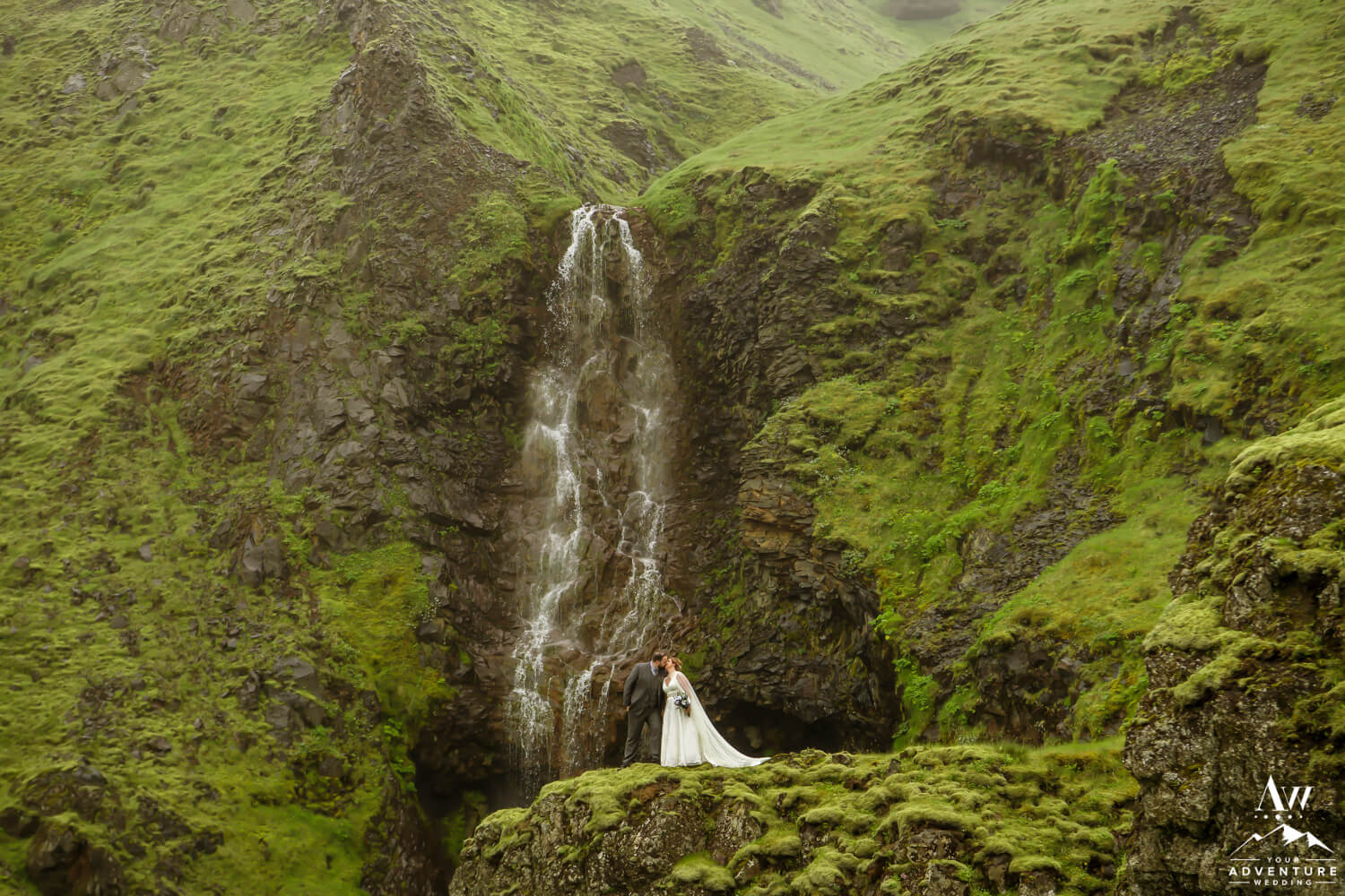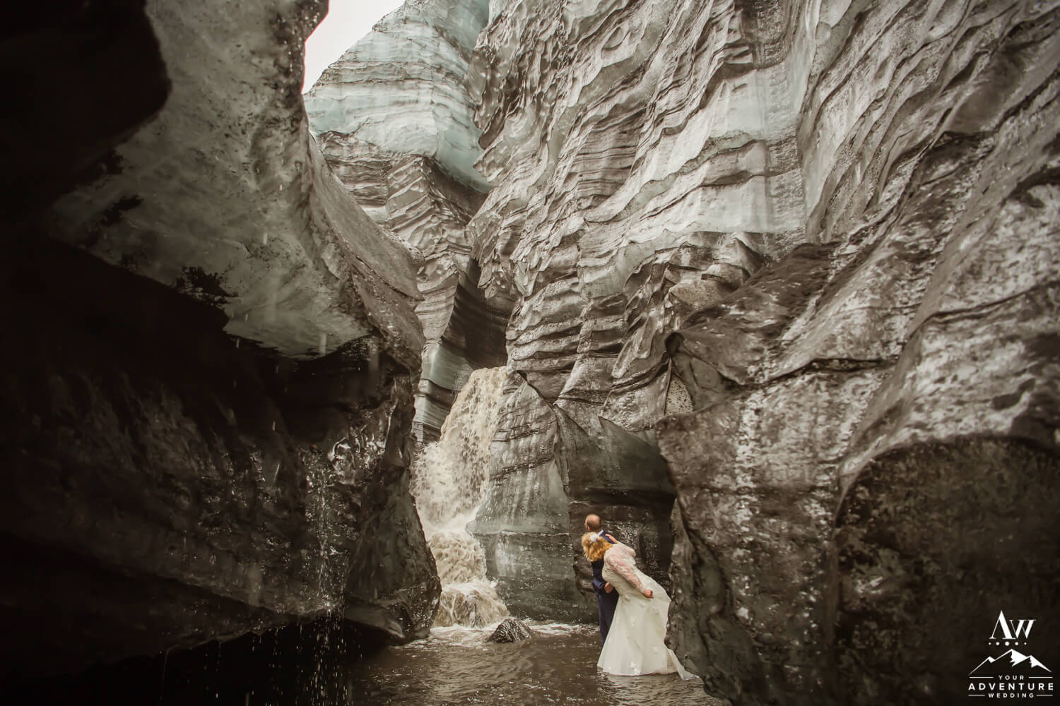In February, Spencer and Amanda held a half day Iceland adventure wedding experience. Having a ceremony at a private black sand beach waterfall was extraordinary! Following they had a luxury champagne toast, explored a narrow canyon and hidden cave!