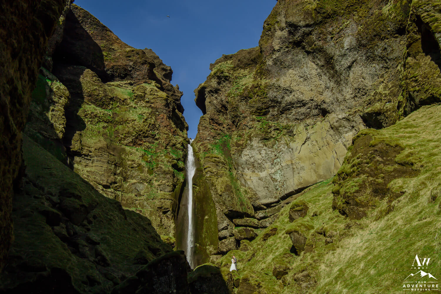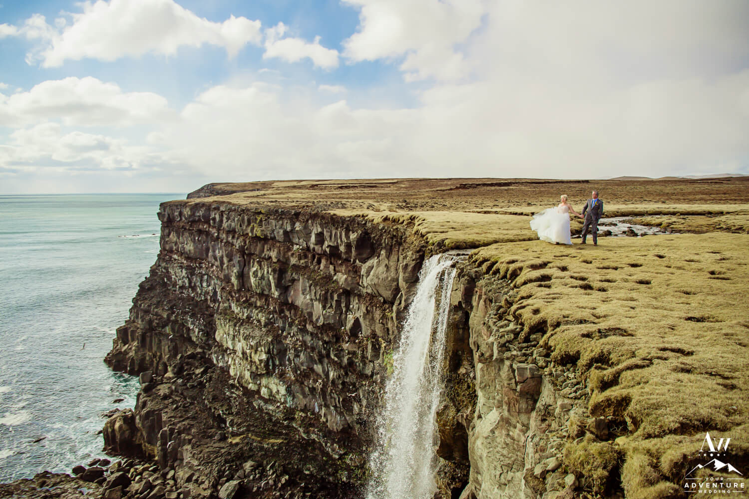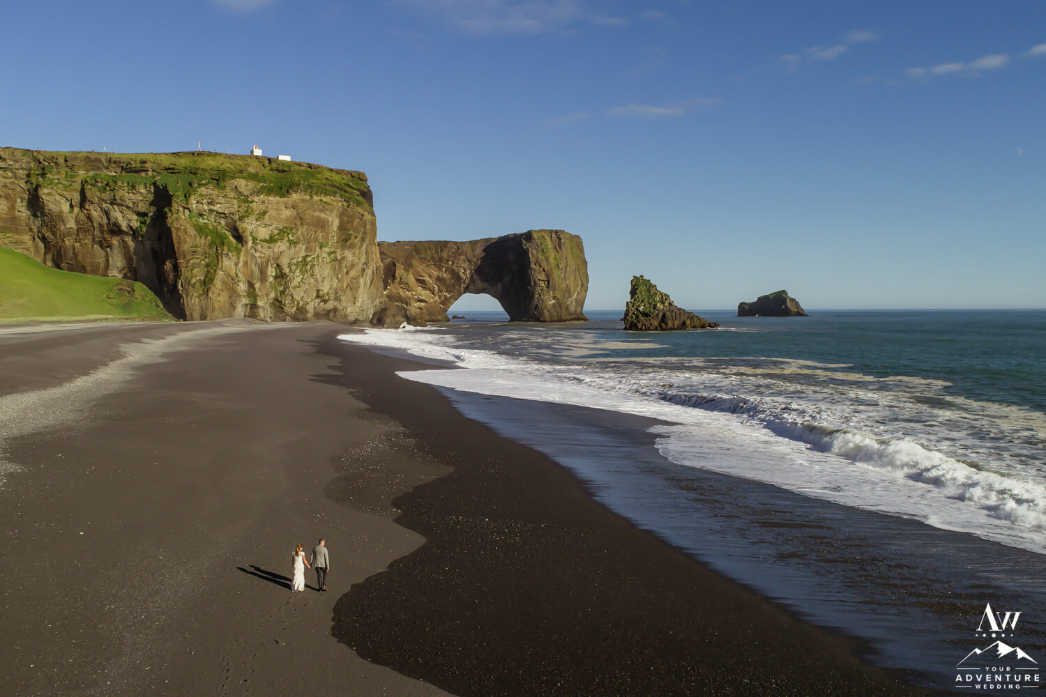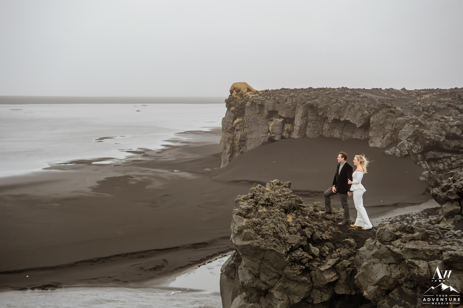 In February, Spencer and Amanda held a half day Iceland adventure wedding experience. Having a ceremony at a private black sand beach waterfall was extraordinary! Following they had a luxury champagne toast, explored a narrow canyon and hidden cave!