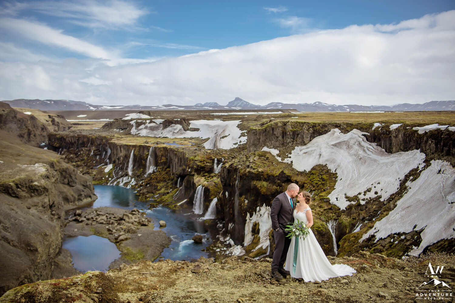 May weddings offer such an interesting dynamic in the highland landscapes. Snow often still speckles offering a phenomenal contrast. Bonnie and Dennis held a whimsical elopement in Iceland that ventured to hidden waterfalls, crazy canyons, caves, black sand beach, and ended with a sweet luxury table for two! Ecstatic over their adventure, they had tons to say about their journey with us on Google!