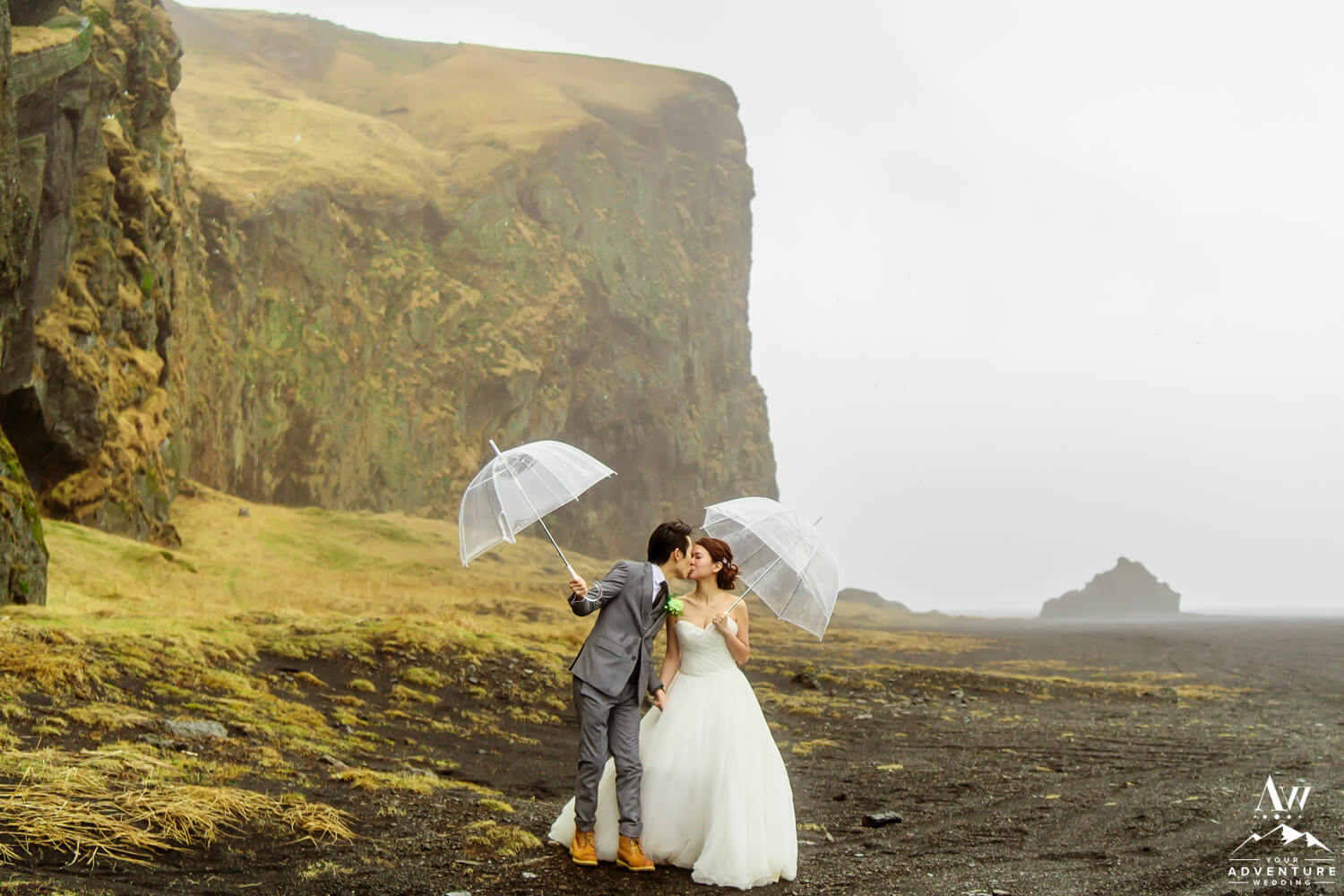Encountering a full day of heavy rains during your Iceland adventure wedding experience can be a blessing in disguise. Why? For example, Sarah and Matt got the dreamiest and dramatic Iceland wedding photos! Their rainy Iceland wedding will encourage you to embrace the weather! In fact, here is their review of our team from Wedding Wire: