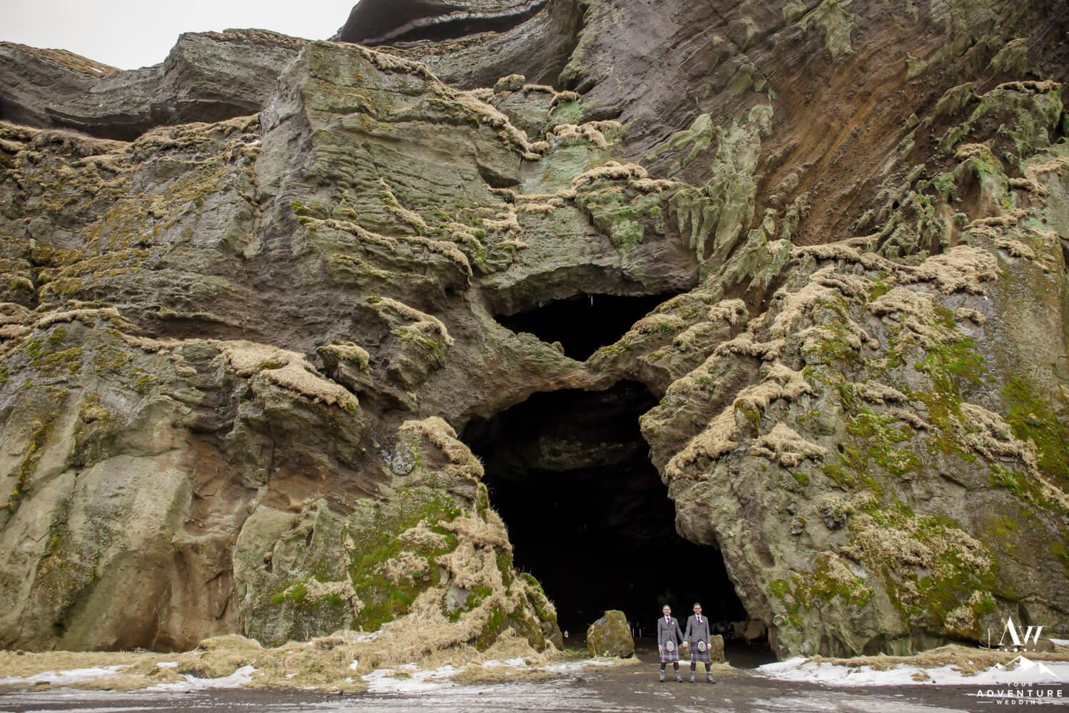 These two Scottish gents are forever imprinted on our hearts, even years later! In early 2014, we began planning with Paul and Marc an epic adventure style wedding for February 2015. They were the FIRST foreigners to hold a wedding ceremony inside Hjörleifshöfði cave. Our team transformed the cave into an unforgettable wedding venue that grows in popularity every day.