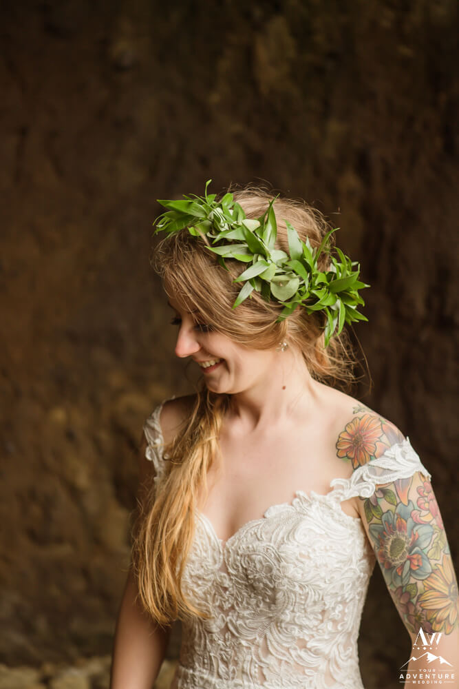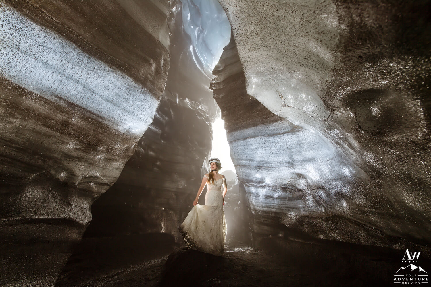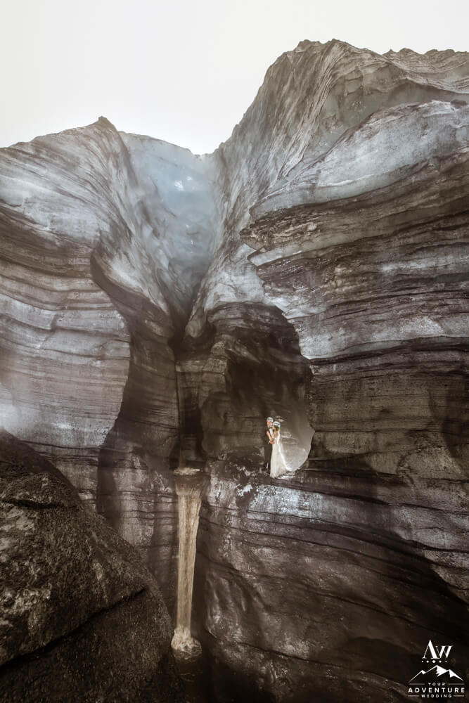 All of the above were true for when Caleb and Michaela rolled up to our offbeat glacier area. Shortly after an energizing hike in helmets and crampons, this badass duo ice climbed to a really EPIC spot within a crazy cool ice cave! Special Note: Our safety specialist fully accessed the area, making it safe, secure and was behind them offering additional support at all times. Not at any point were the newlyweds in any danger. Our team takes great care in these types of situations.
