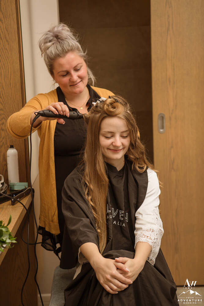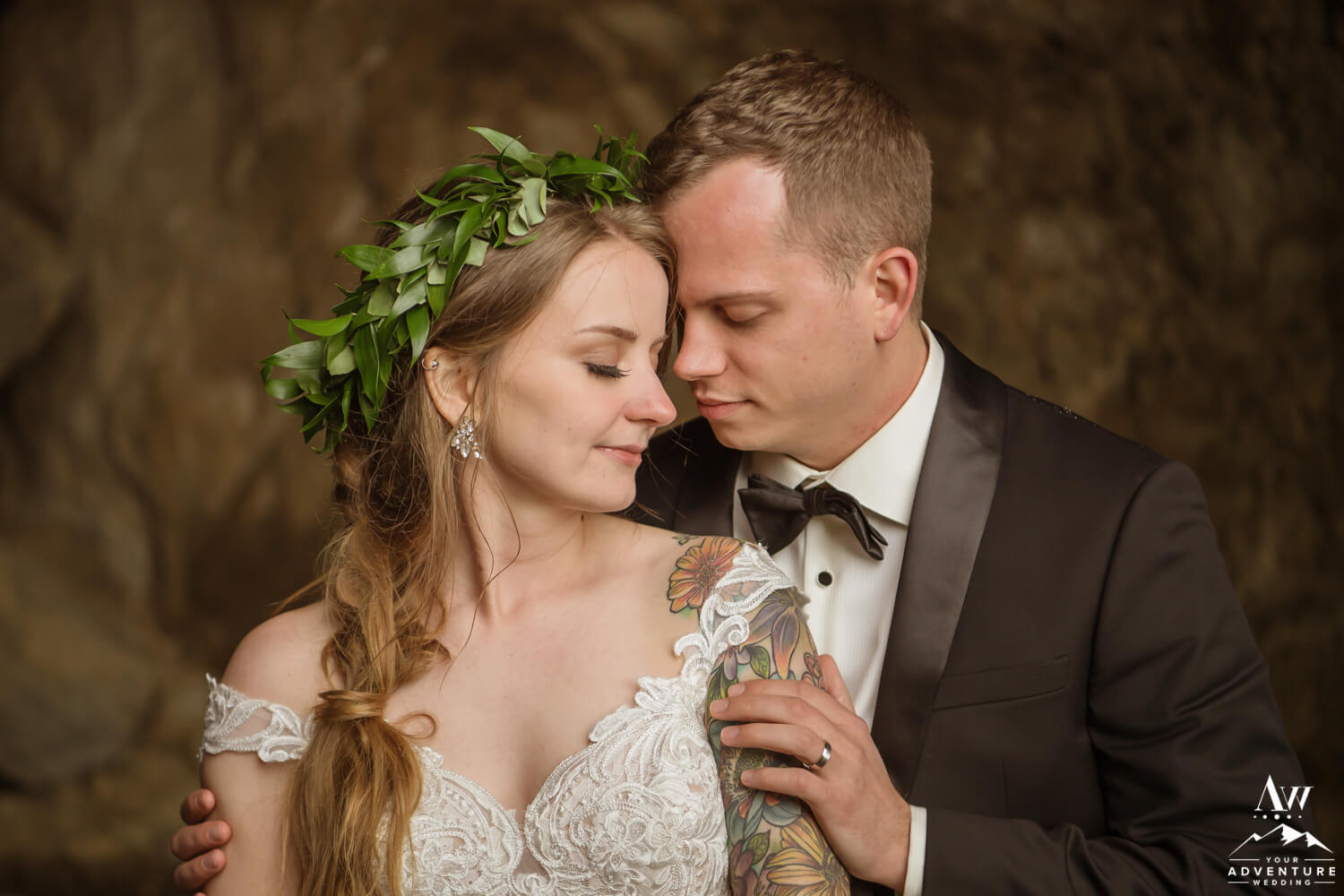 Caleb and Michaela were married on August 20th 2019. Their intimate boho elopement adventure began at Hotel Vik (formally known as Icelandair Vik) shortly before sunrise. Our talented hair stylist went to work crafting a flawless bohemian style on Michaela complete with a gorgeous greenery crown! All while our Iceland elopement photographer went to work staging details like the wedding dress, grooms details, etc.