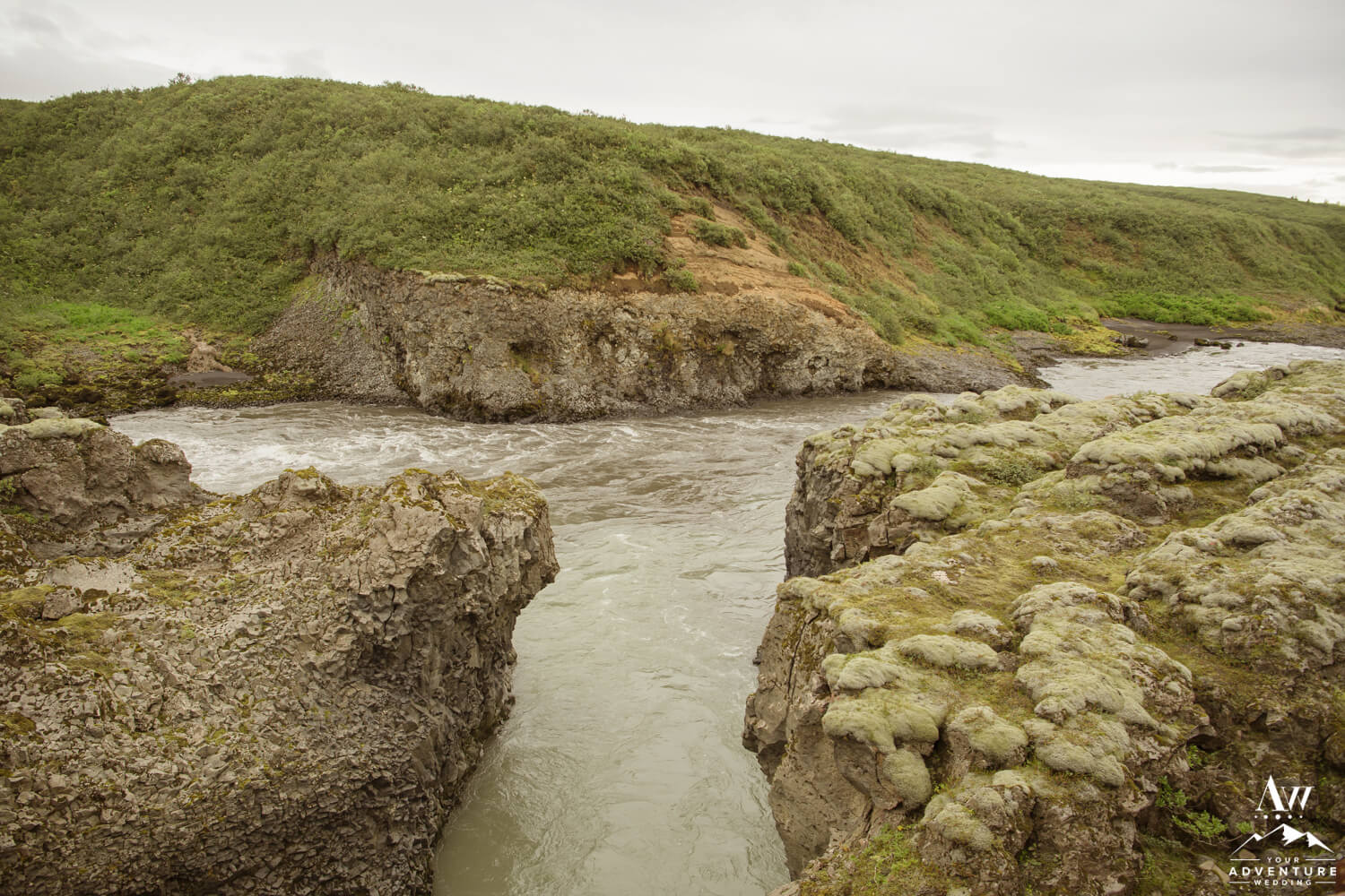 Believe it or not, throughout the highlands of Iceland, you will find countless glacier waterfalls (not spring fed). What does this mean or look like? To illustrate, water flows from inside the glacier, picks up sediments and minerals creating a brown almost heavy looking texture to it. These are some of our favorite types of waterfalls because they are ever changing during the rain and floods. It’s not good to drink that type of waterfall water, but it is pretty darn beautiful to photograph especially among lava rocks and mountainscapes!