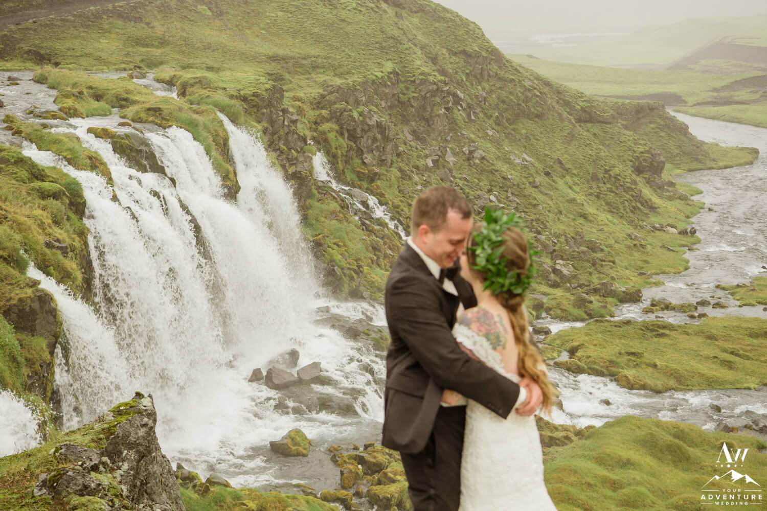 Although that morning was full of rain and wind, Michaela and Caleb were ready to take it all on! Likely because the weather in Iceland adds to the story of their boho elopement. After all, rain gives you the opportunity (and sometimes the reward) of snuggling. Planning an intimate Iceland wedding ceremony at a waterfall with very personal vows was 100% on the agenda and it was BLISS!
