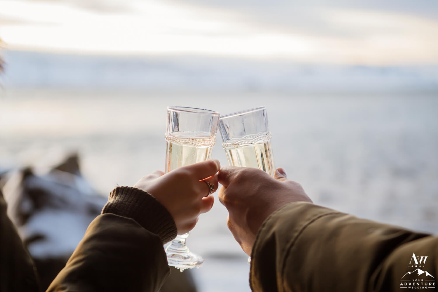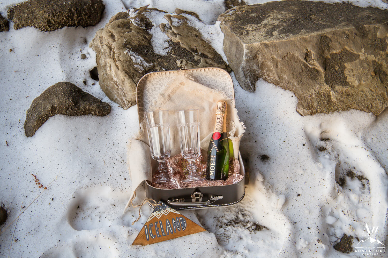 Anita was super surprised by the Iceland marriage proposal and immediately, kissed and hugged Matthew in excitement! Matthew proposed a lifetime of adventure to Anita with a Tiffany & Co. ring too! Lots of giggles and smiles followed when she realized it was being captured!! After delighting in a celebratory glass of champagne, they were ready to embark on an adventurous engagement session!