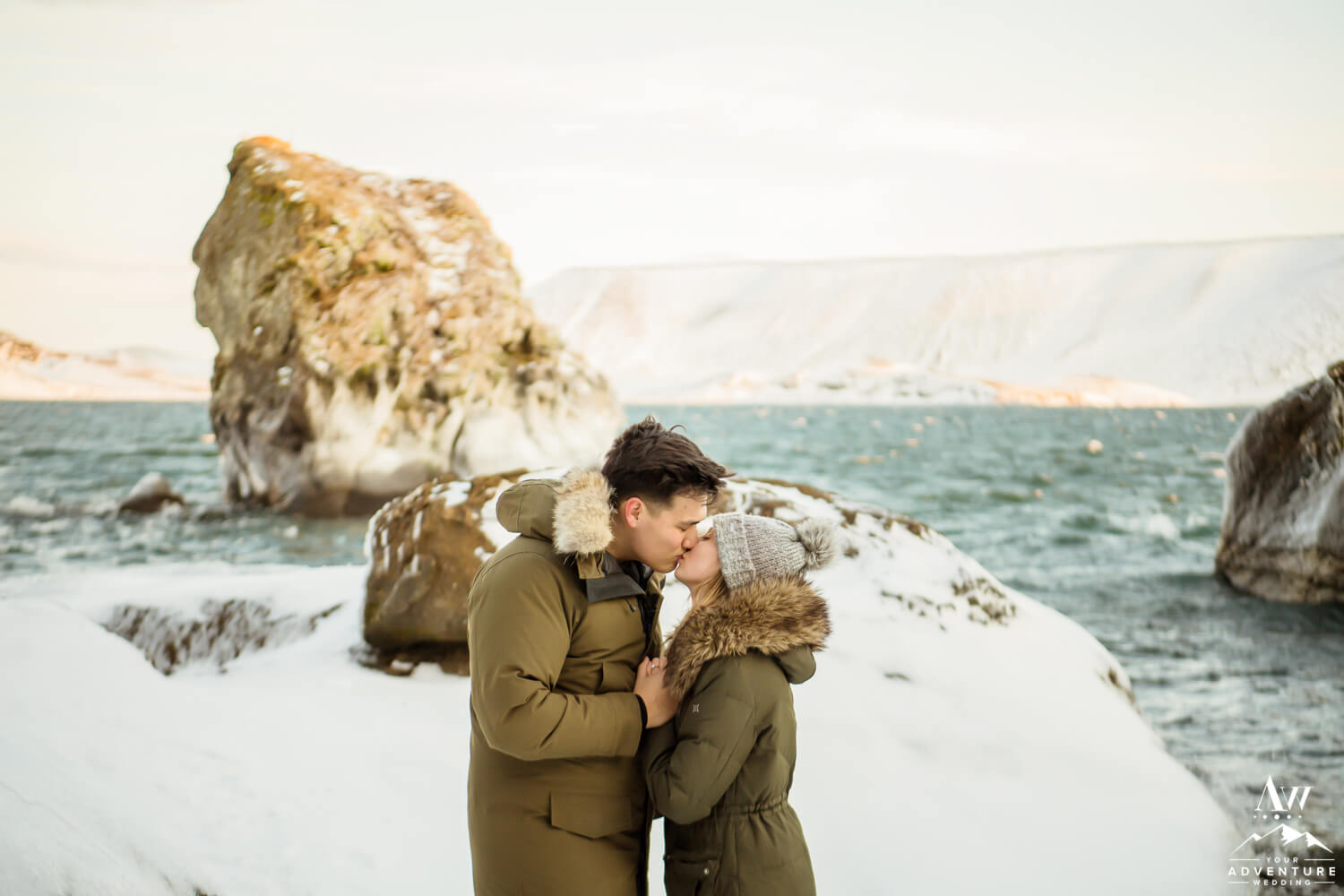 Anita was super surprised by the Iceland marriage proposal and immediately, kissed and hugged Matthew in excitement!  Matthew proposed a lifetime of adventure to Anita with a Tiffany & Co. ring too!  Lots of giggles and smiles followed when she realized it was being captured!!  After delighting in a celebratory glass of champagne, they were ready to embark on an adventurous engagement session!