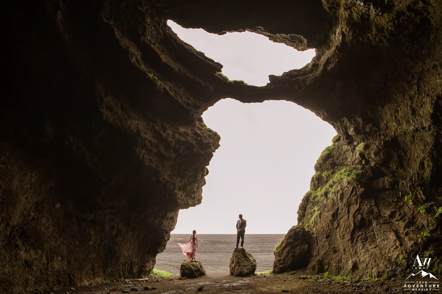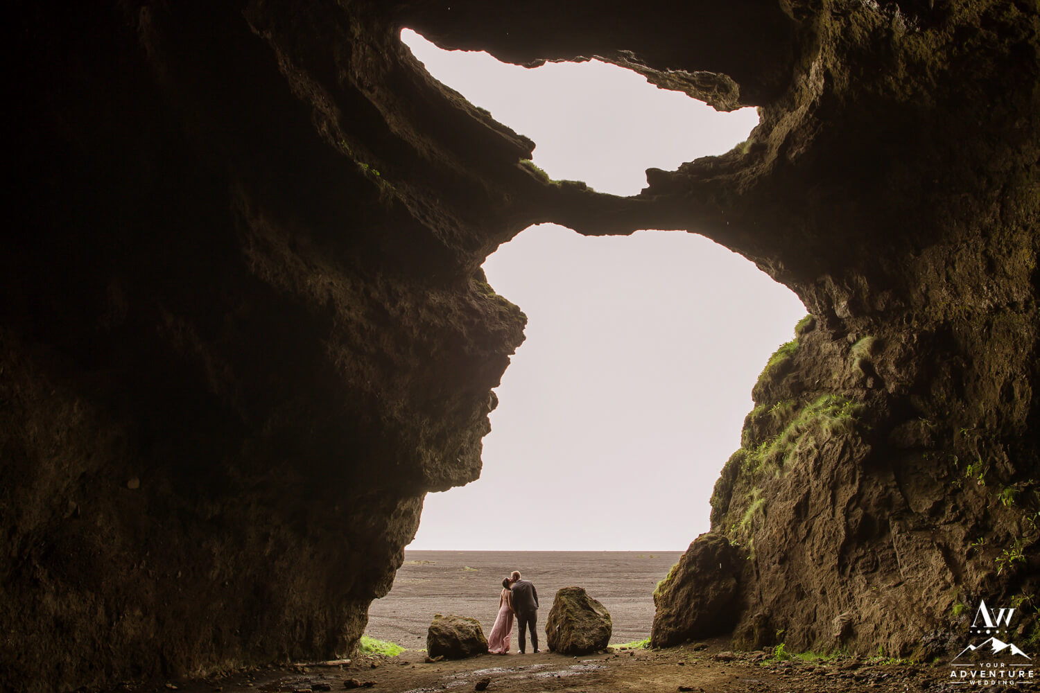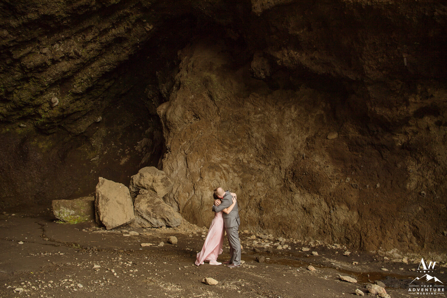 Firm believers in coming full circle for the day, our Iceland elopement photographers always offer a nighttime shoot. Whether it is simple or elaborate we love creating something special to end the night (as long as our couples still have energy!)! Since there were no Northern Lights coming out to play that September evening, we crafted something special in a cave for these two to end the night literally and figuratively with a BANG!