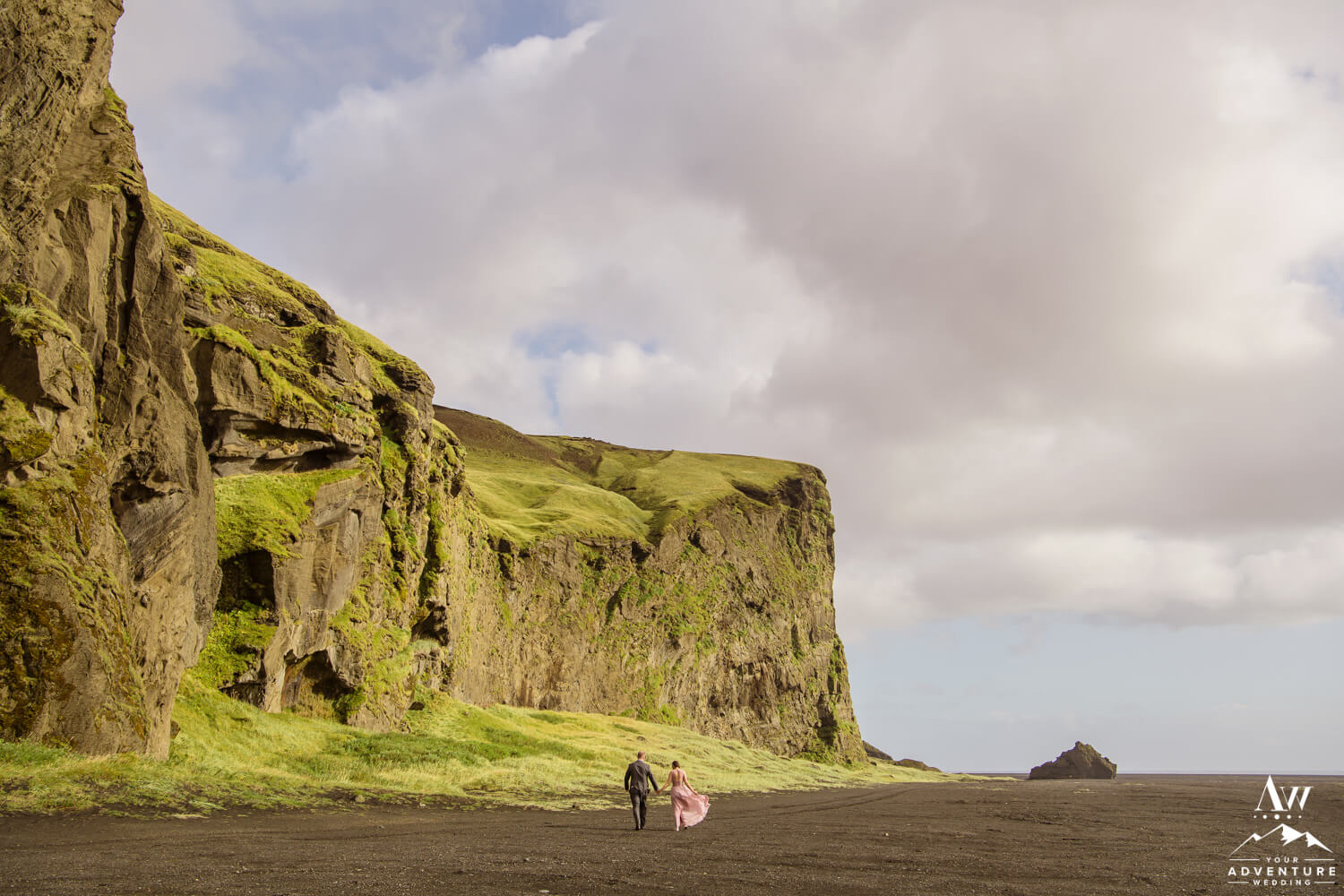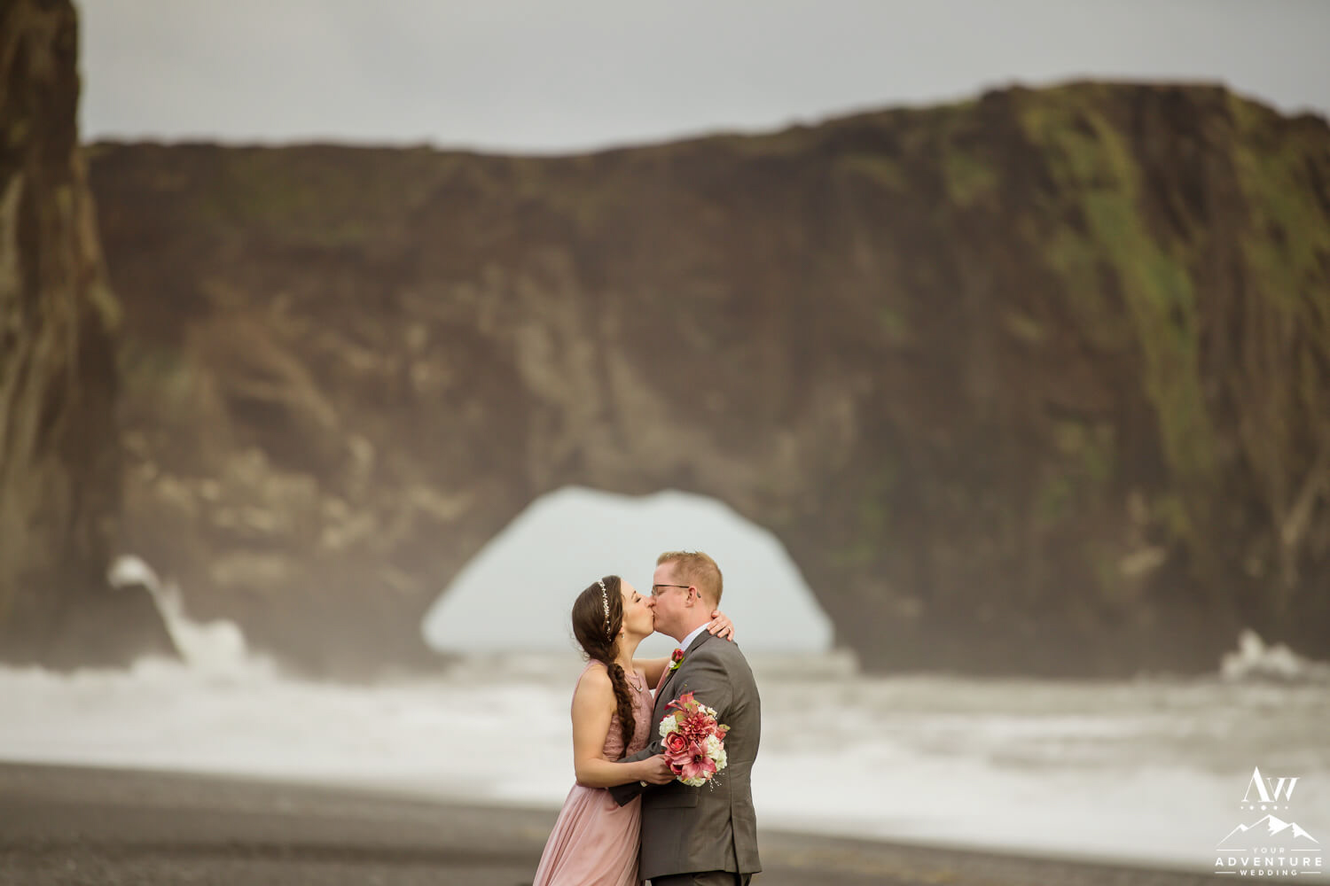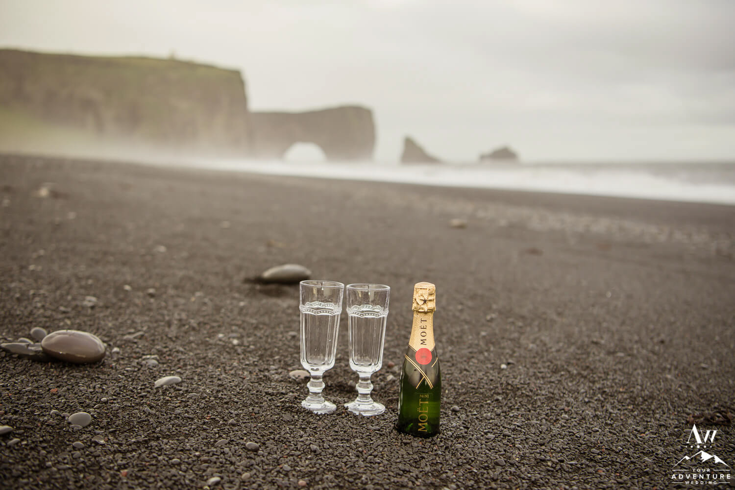 What daring elopement would be complete without venturing to a private black sand beach? Something really epic happened too, the sun came back out after the storm rolled through! Such a sweet end to the adventure portion of the elopement in Iceland! Likewise, a perfect location to share in a glass of champagne to toast their epic day!!