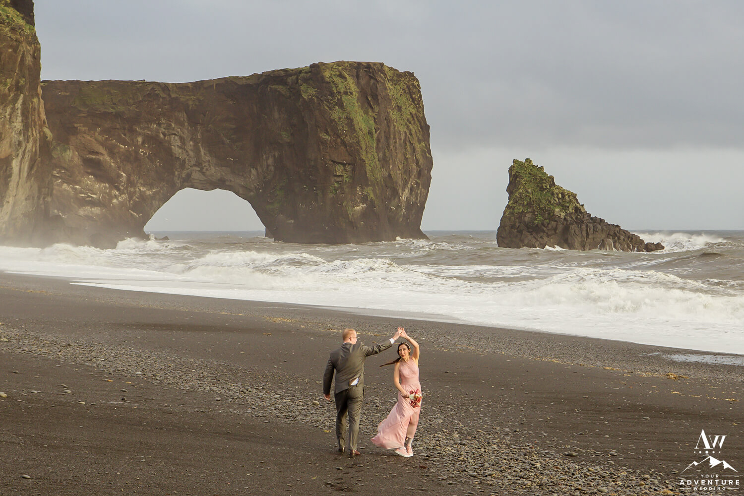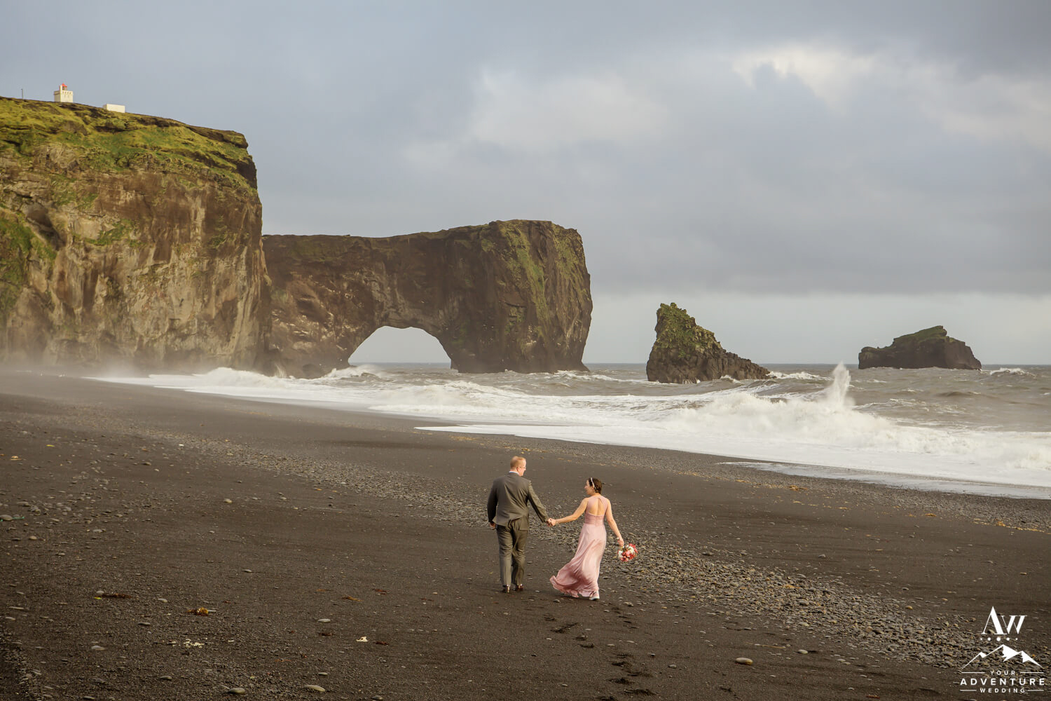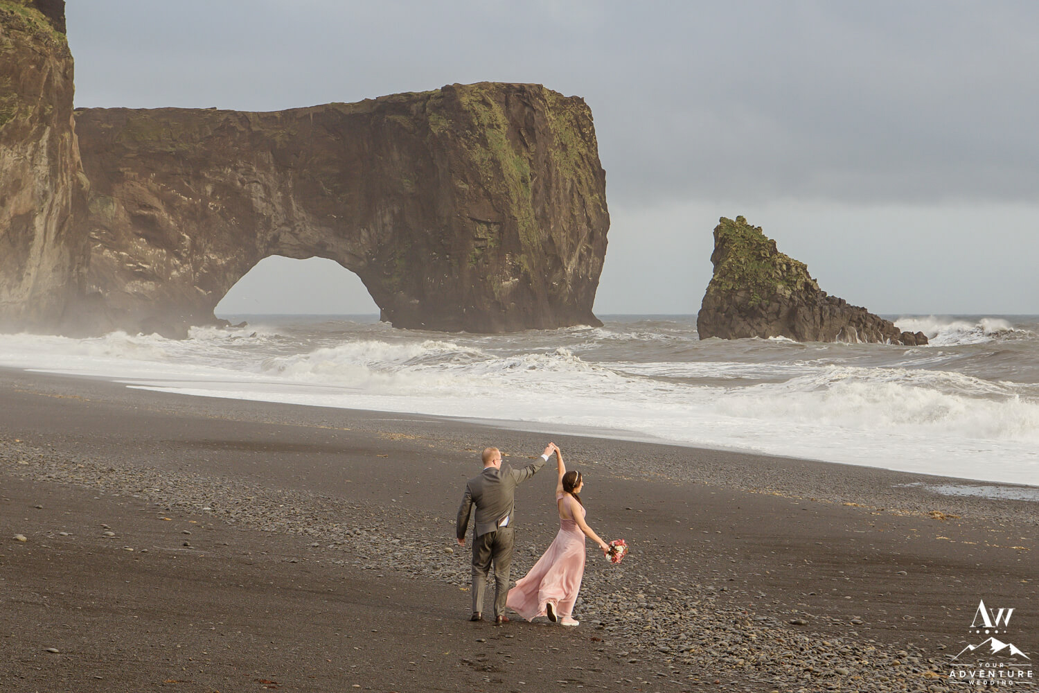 What daring elopement would be complete without venturing to a private black sand beach? Something really epic happened too, the sun came back out after the storm rolled through! Such a sweet end to the adventure portion of the elopement in Iceland! Likewise, a perfect location to share in a glass of champagne to toast their epic day!!