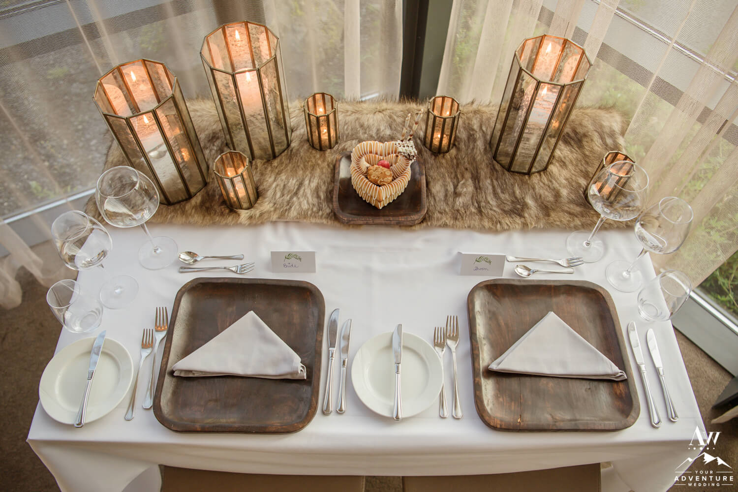 Remember, just because you have chose to elope, does not mean you cannot have luxury details during your reception for two! Even a simply elegant setup like this can make all of the difference and make you feel like VIP’s at the end of the night. All of these items are available in our Iceland wedding rental collection.
