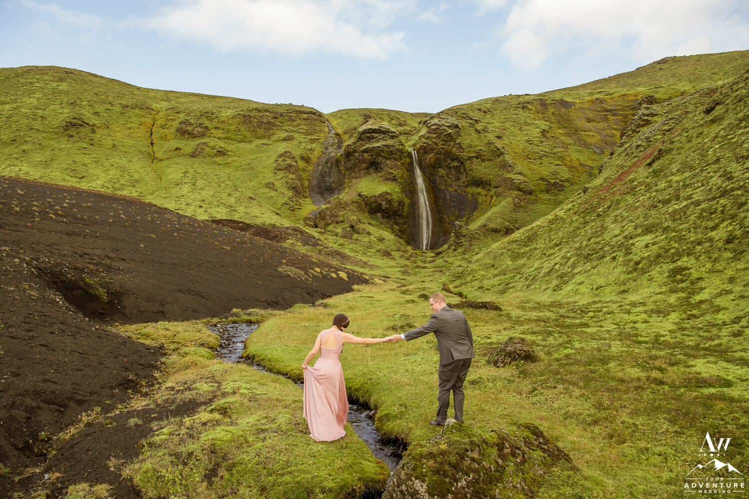 In almost all countries around the world, waterfalls signify a life source. Iceland reveres this as well, but most also associate waterfalls with wonder and romance. Why? Because waterfalls restlessly flow, just as your unconditional love to your partner should as well. So taking a journey through the highlands to being married in front of a private one is truly an unforgettable adventure during your daring elopement in Iceland!