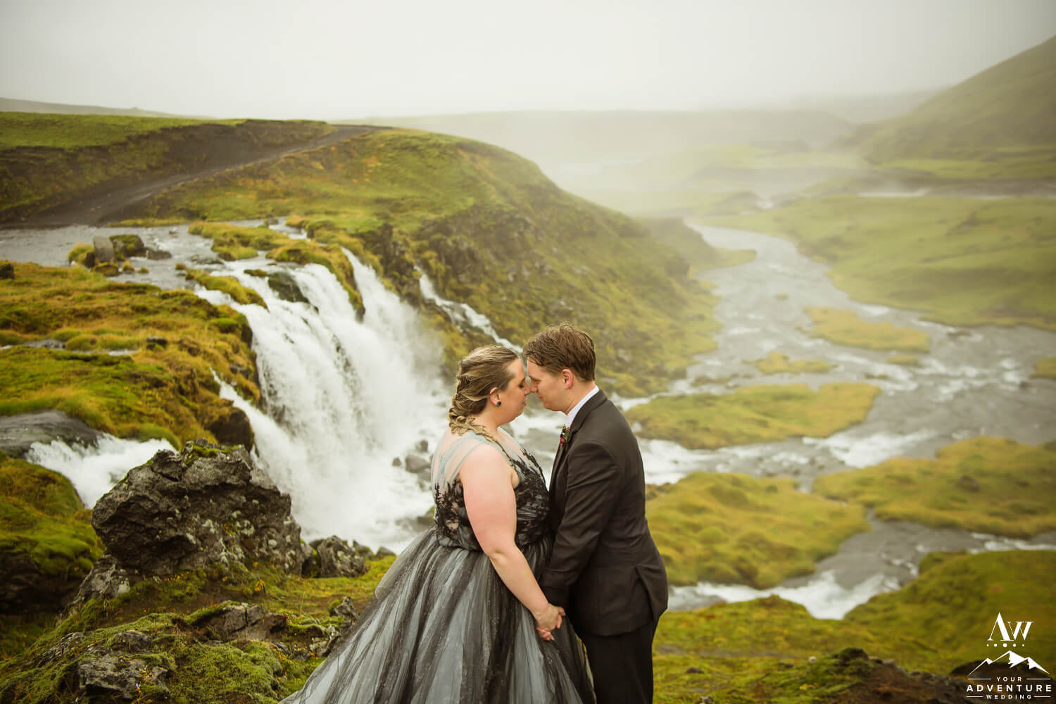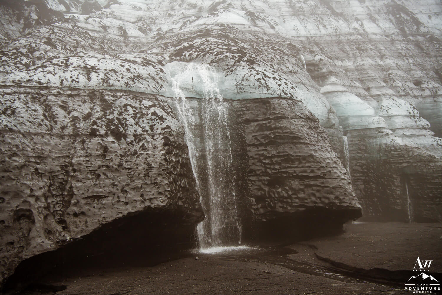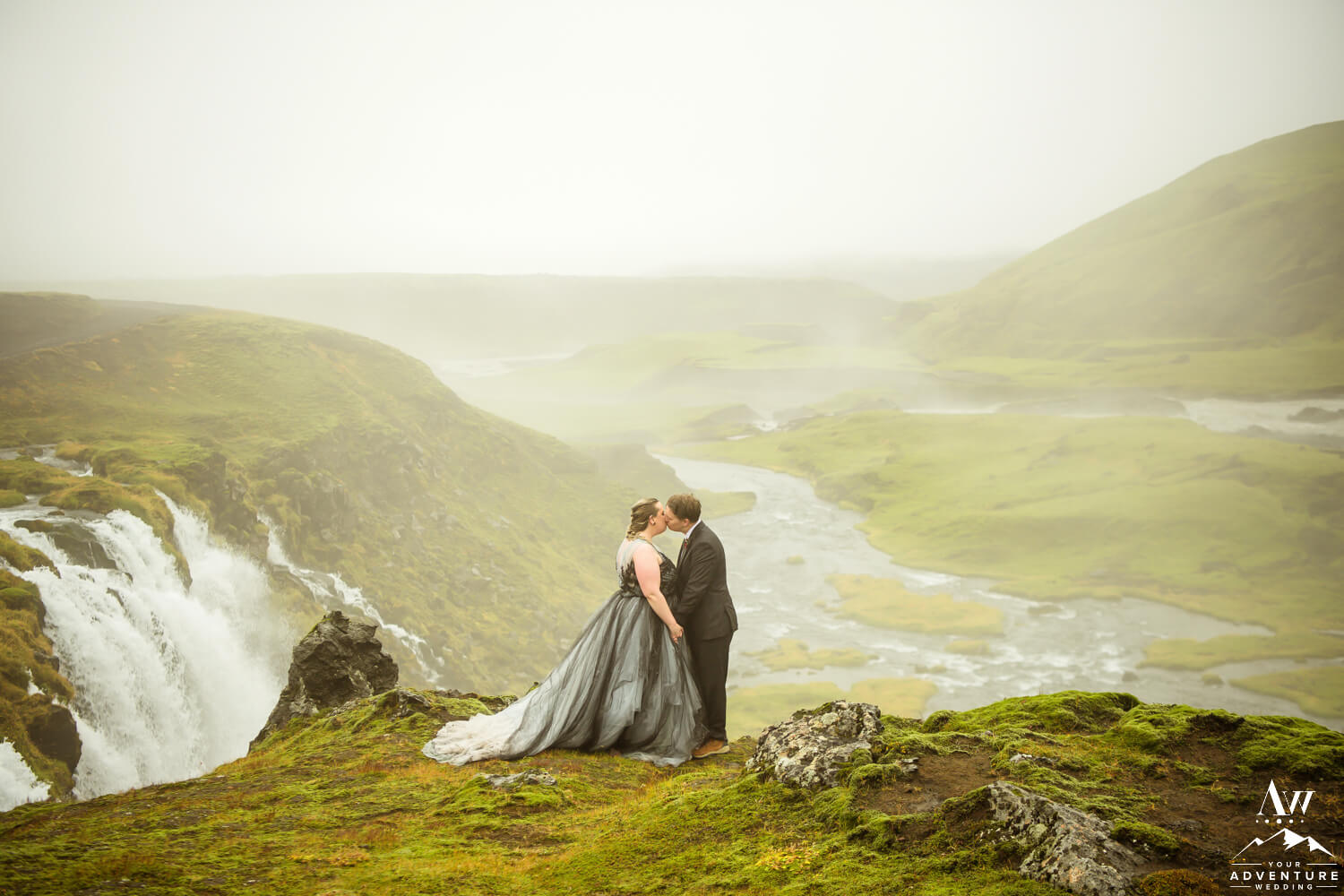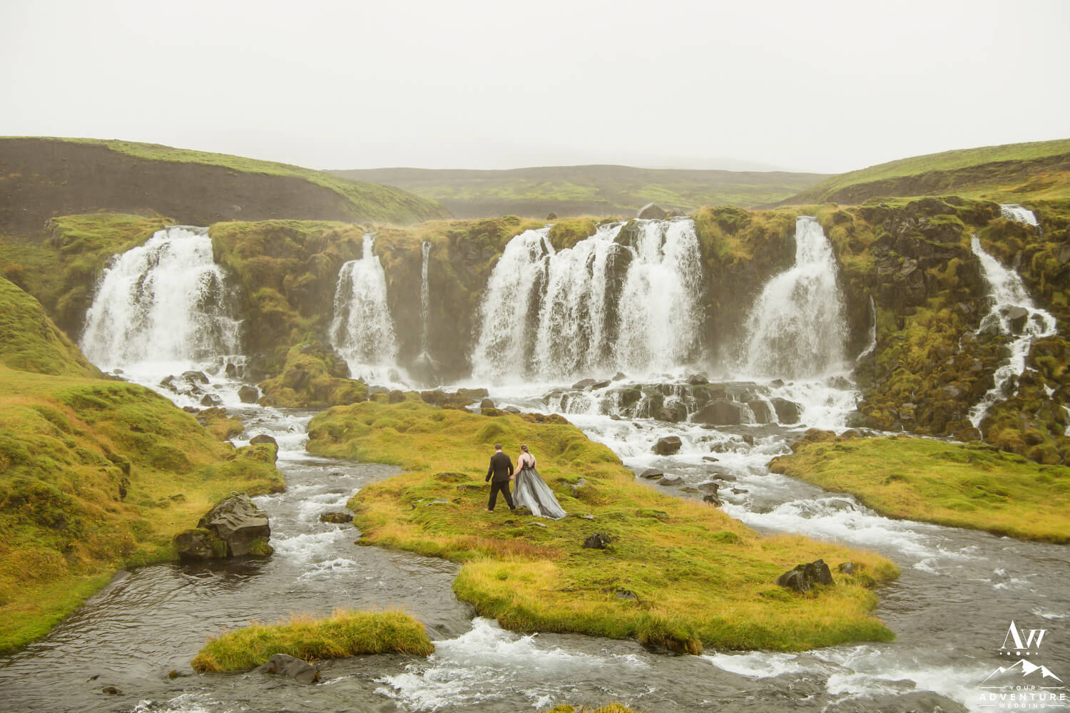 Sometimes having bits of tradition within a glacier waterfall wedding adventure is needed. Especially when you have the opportunity to share your first dance on location at a hidden waterfall! Furthermore, the romance when up a notch because of the dreamy fog that rolled in during too!!