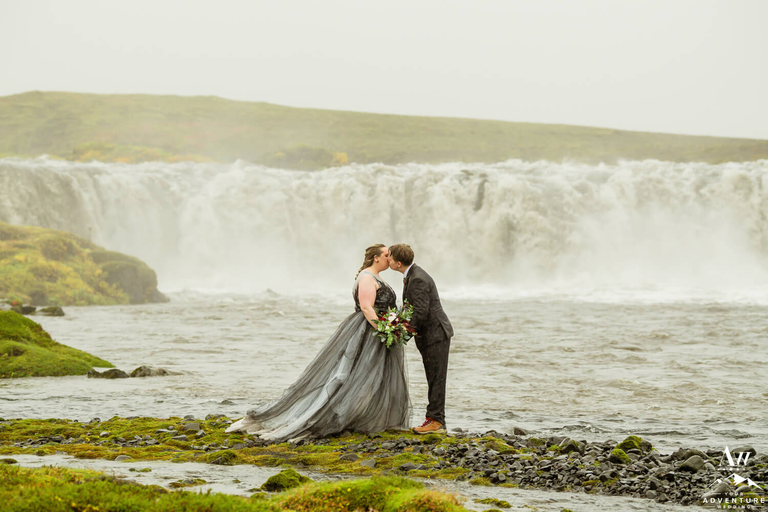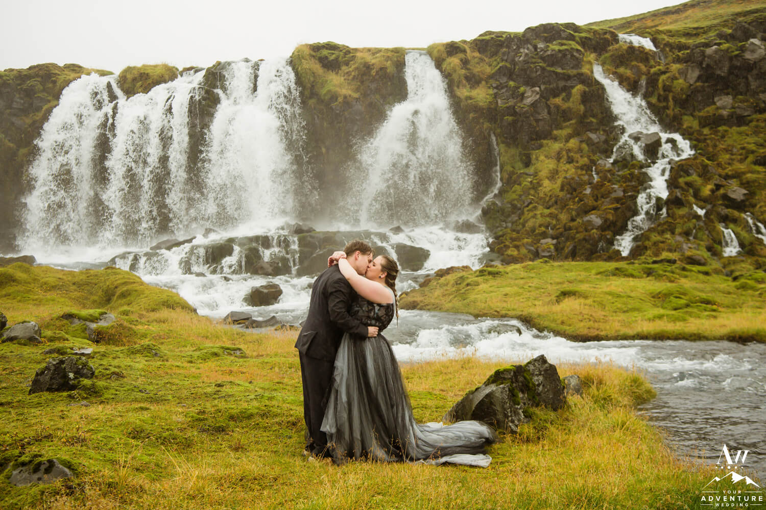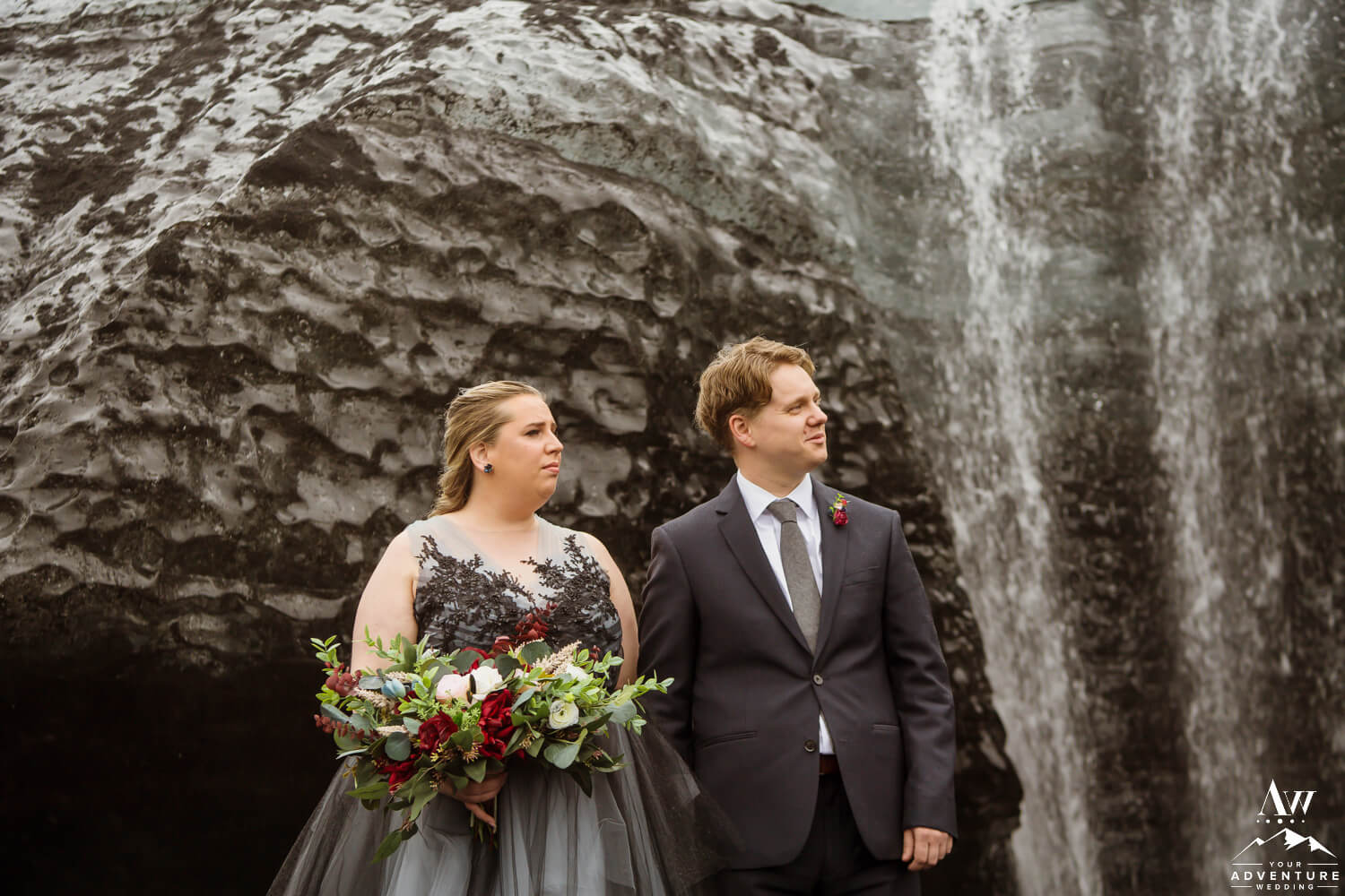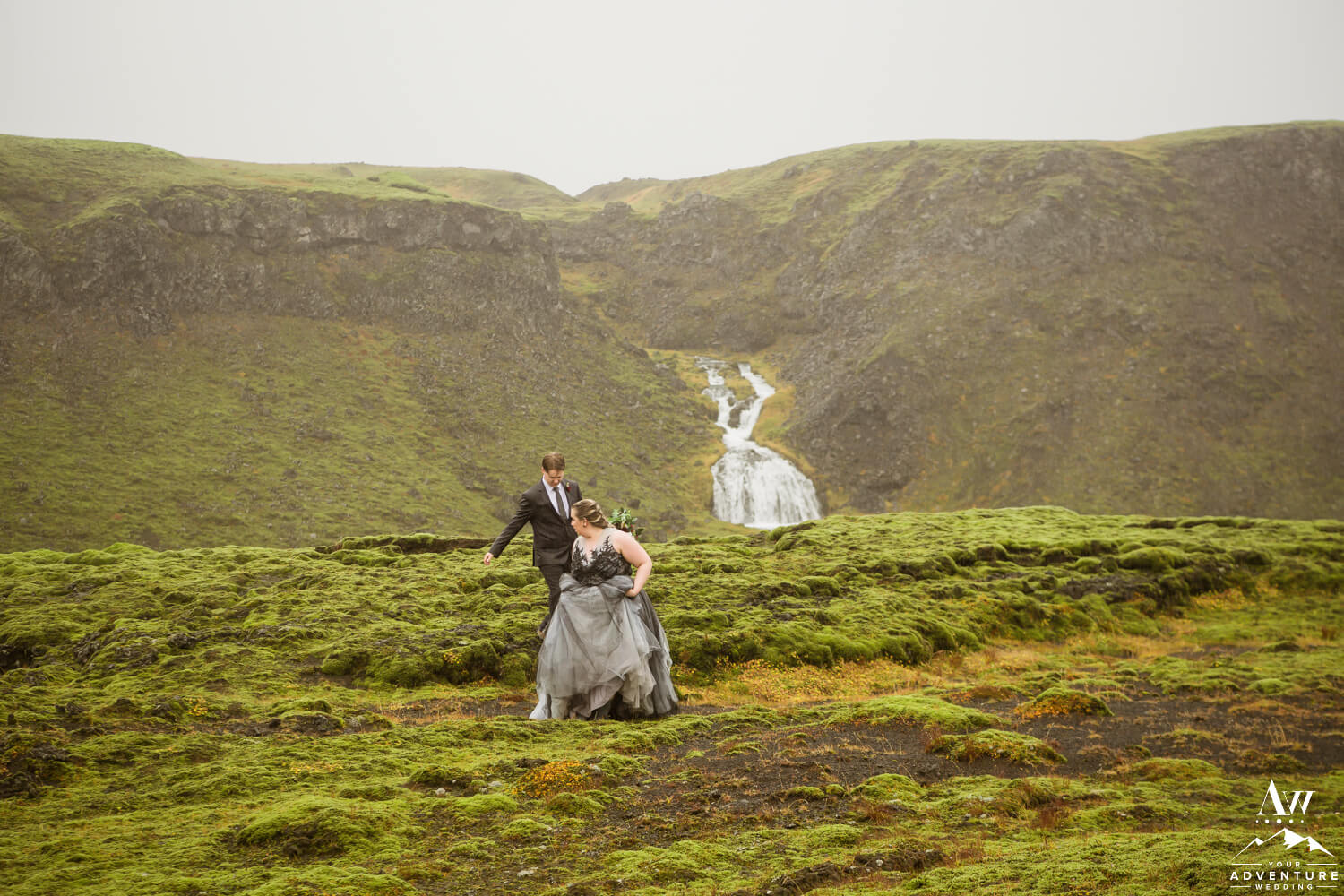 Sometimes having bits of tradition within a glacier waterfall wedding adventure is needed. Especially when you have the opportunity to share your first dance on location at a hidden waterfall! Furthermore, the romance when up a notch because of the dreamy fog that rolled in during too!!