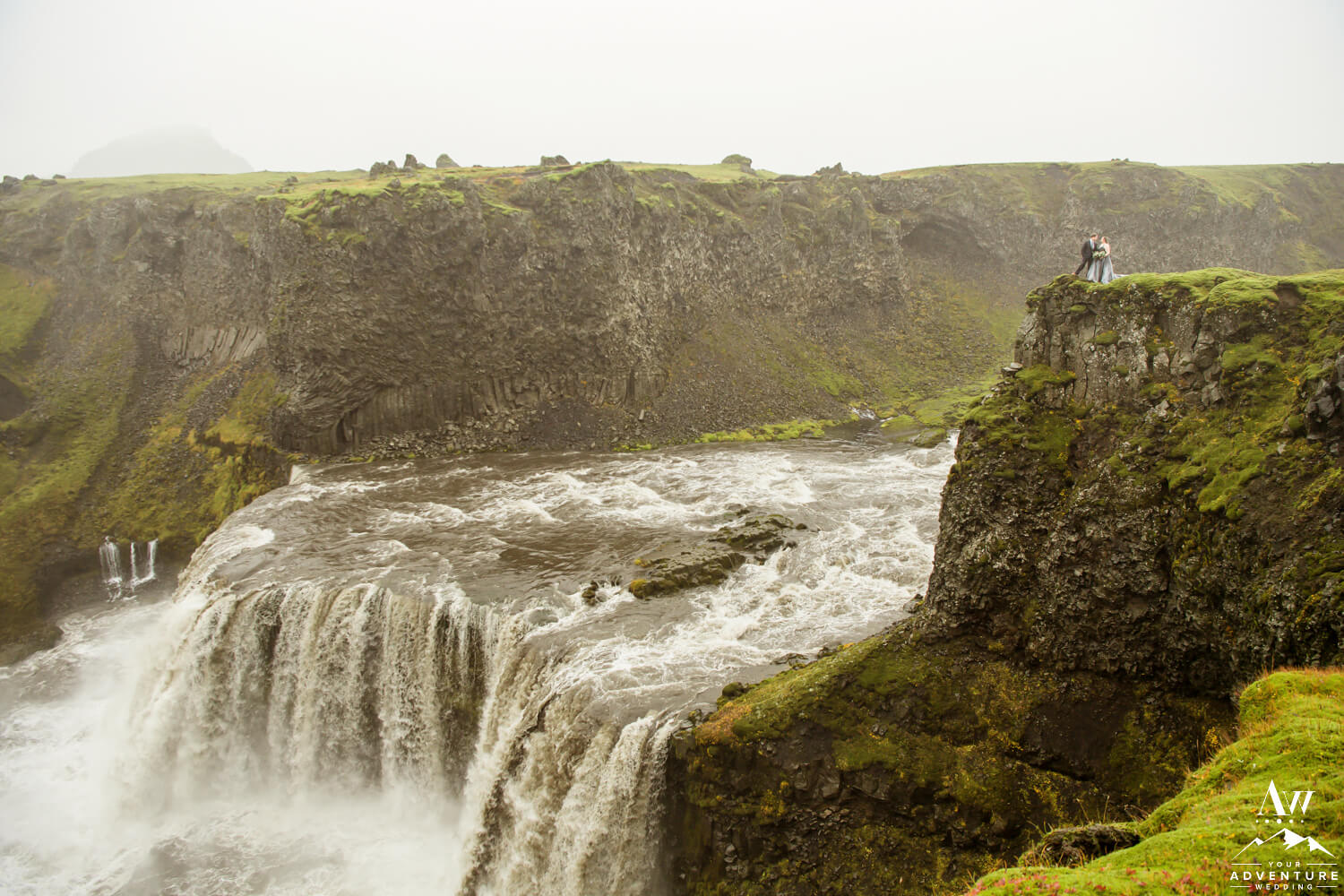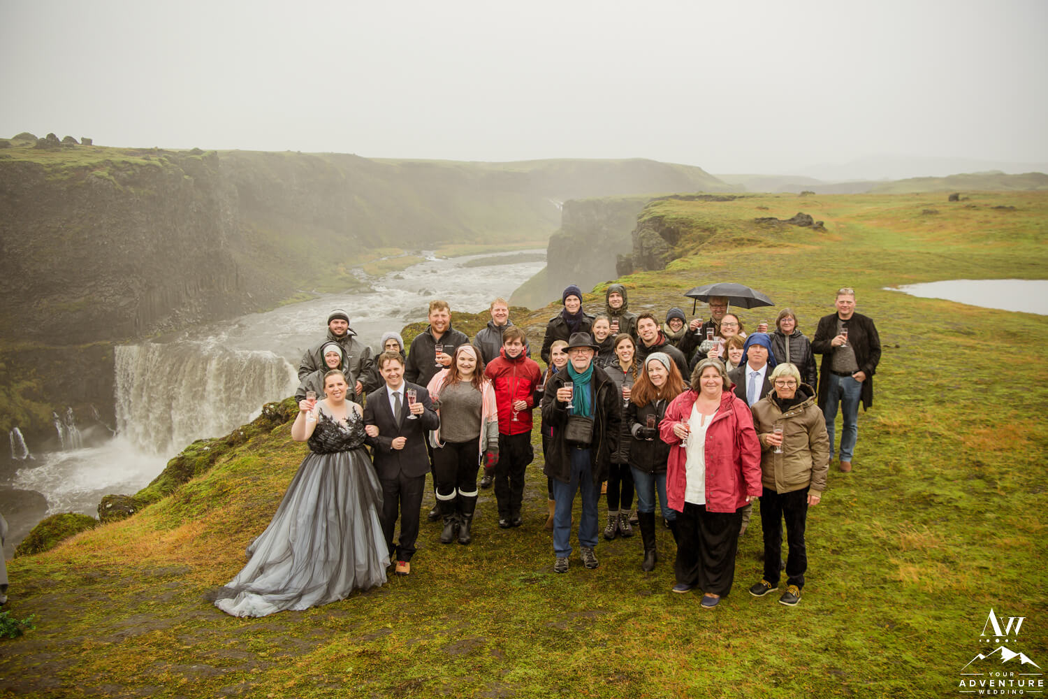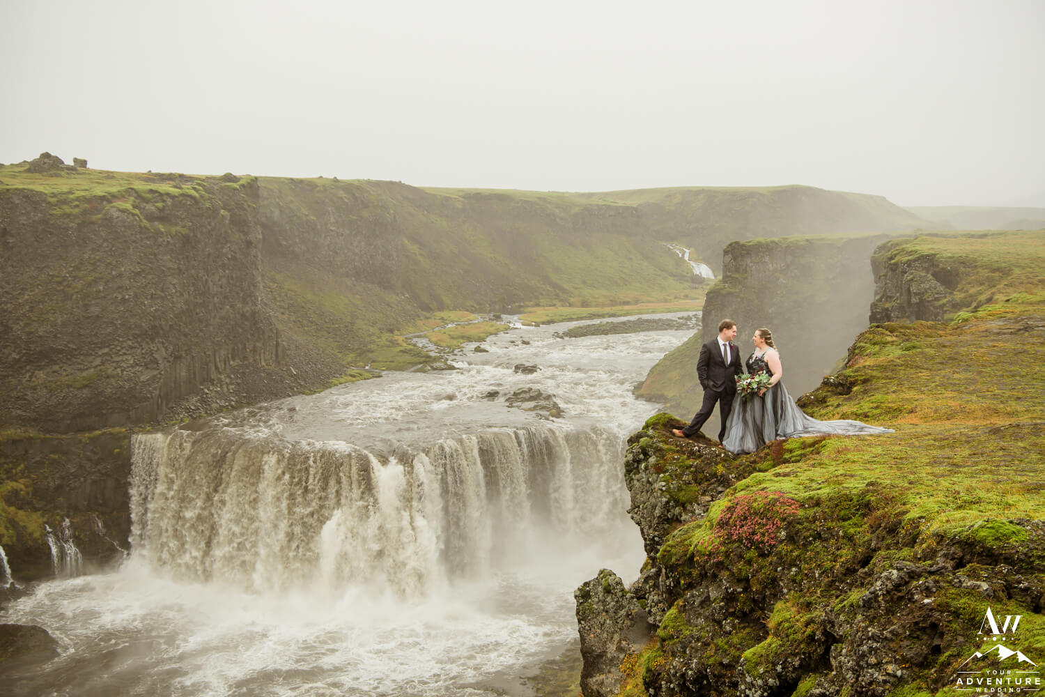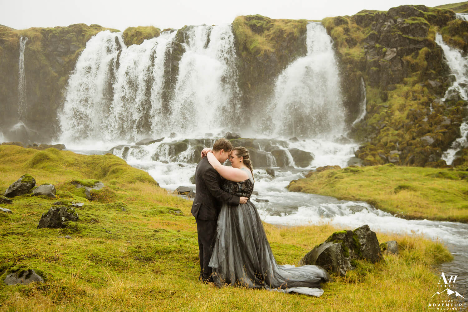 Sometimes having bits of tradition within a glacier waterfall wedding adventure is needed. Especially when you have the opportunity to share your first dance on location at a hidden waterfall! Furthermore, the romance when up a notch because of the dreamy fog that rolled in during too!!