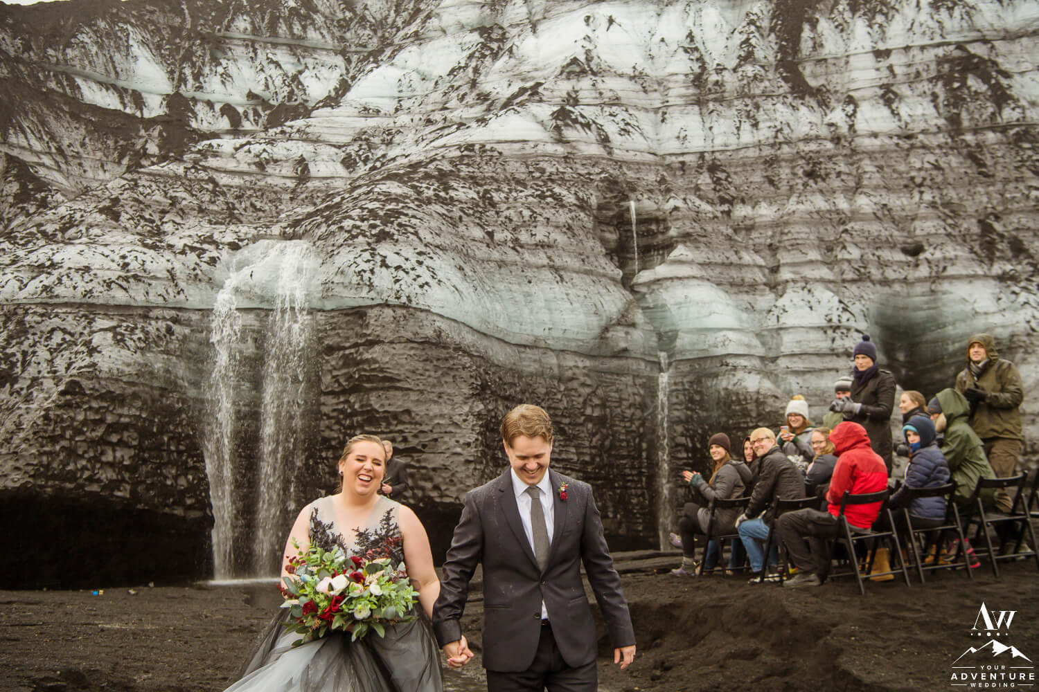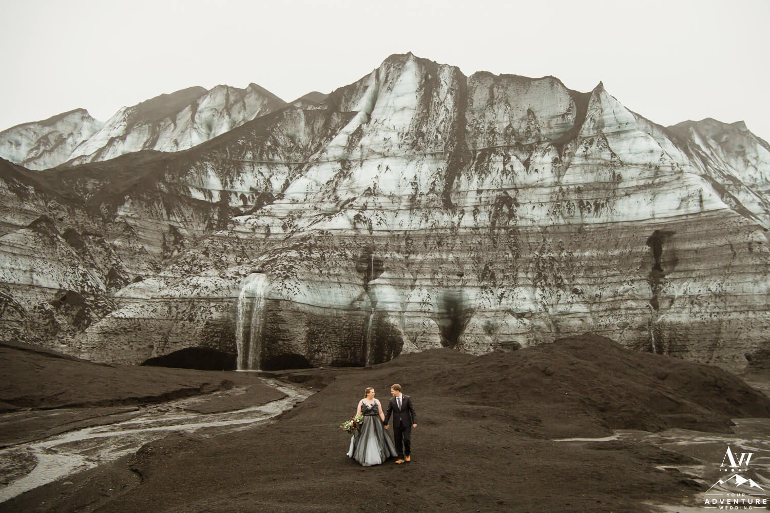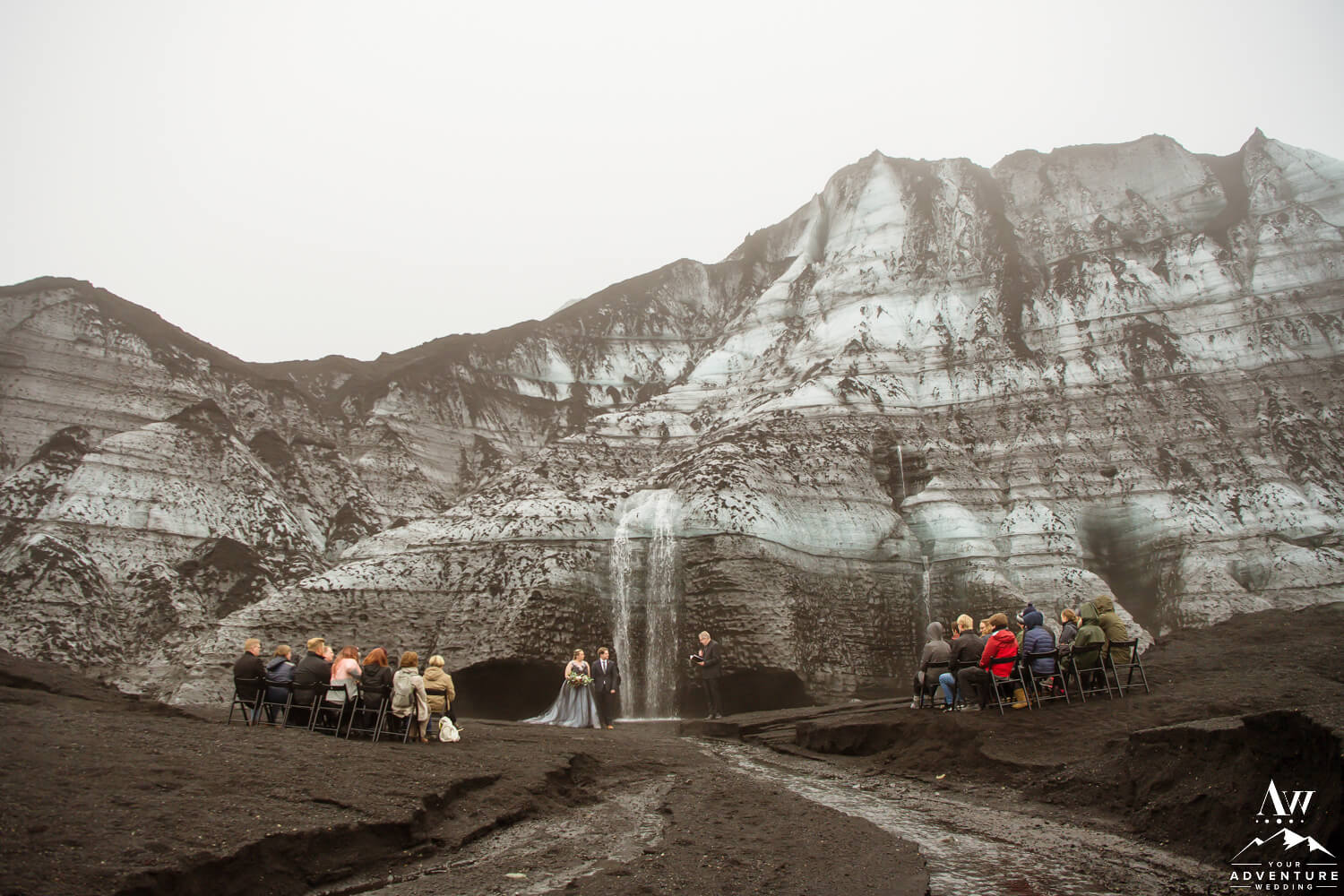 Wanting to have the best of both worlds, these two came to us seeking a unique private experience driven wedding but also a symbolic place for their two families to be joined. What could be more meaningful than a glacier waterfall wedding?! A place where you and your guests walk down a glacier stream to have both your sides / worlds combine.
