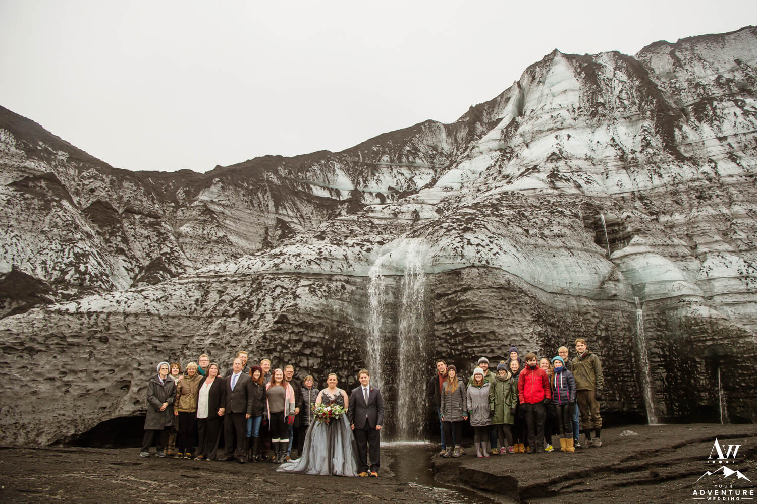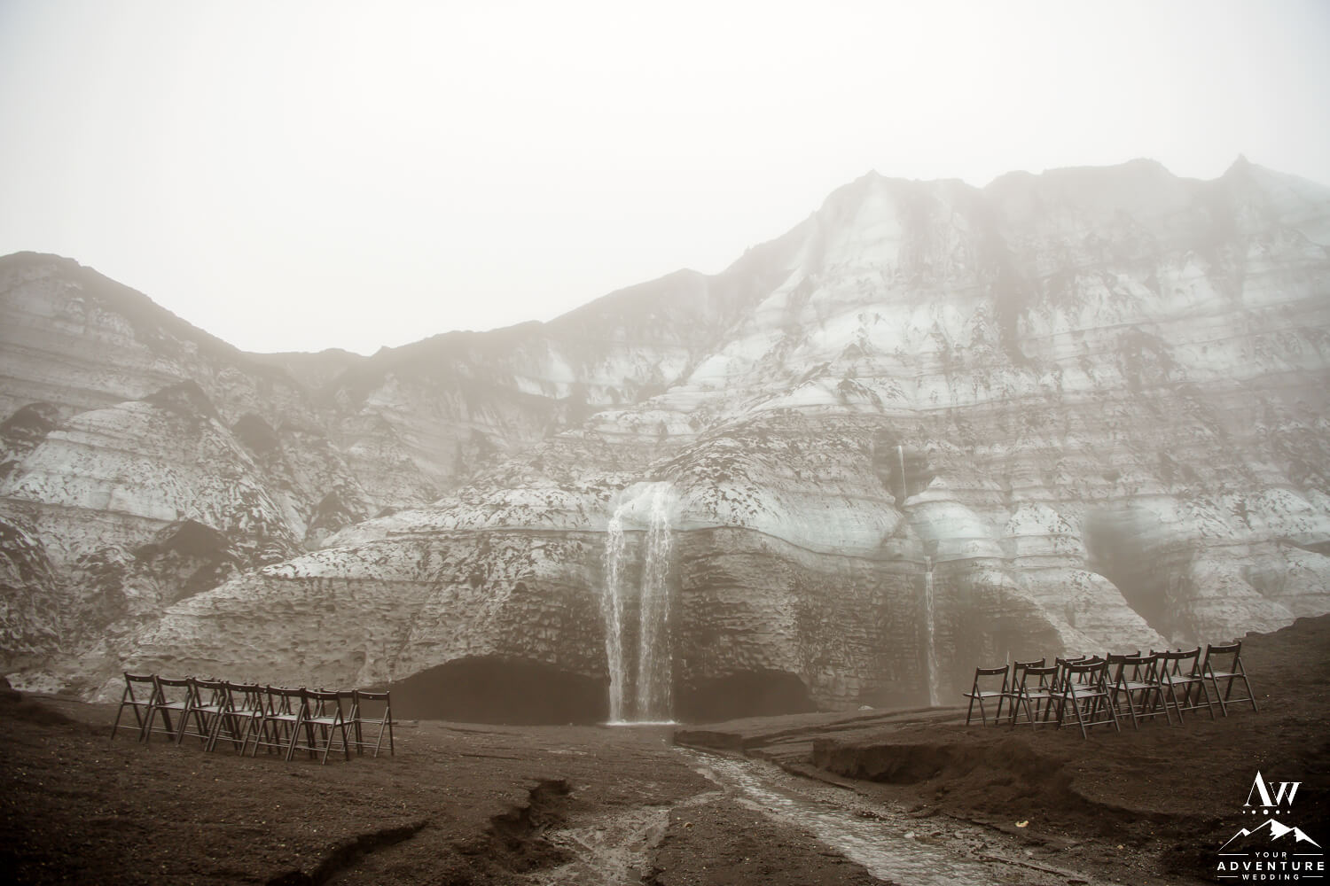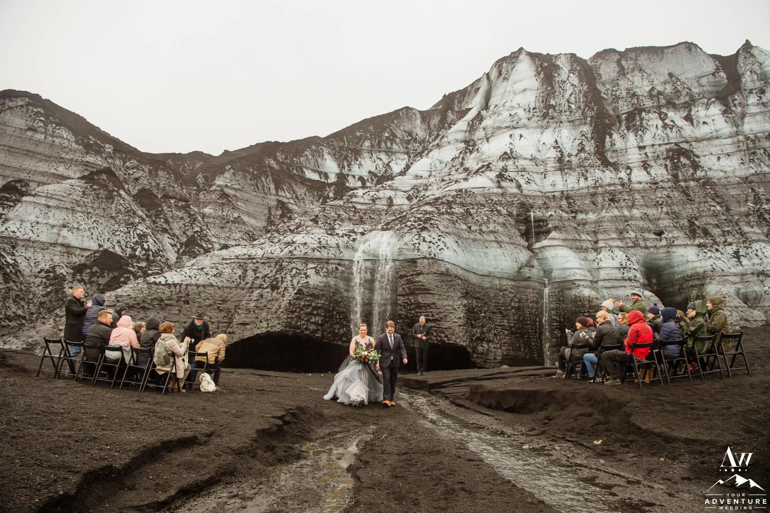 Wanting to have the best of both worlds, these two came to us seeking a unique private experience driven wedding but also a symbolic place for their two families to be joined. What could be more meaningful than a glacier waterfall wedding?! A place where you and your guests walk down a glacier stream to have both your sides / worlds combine.