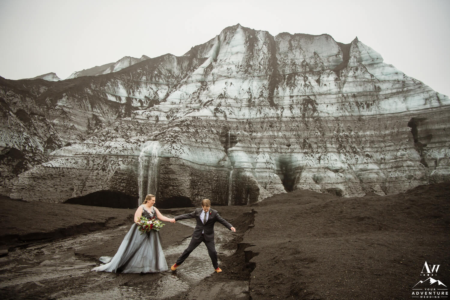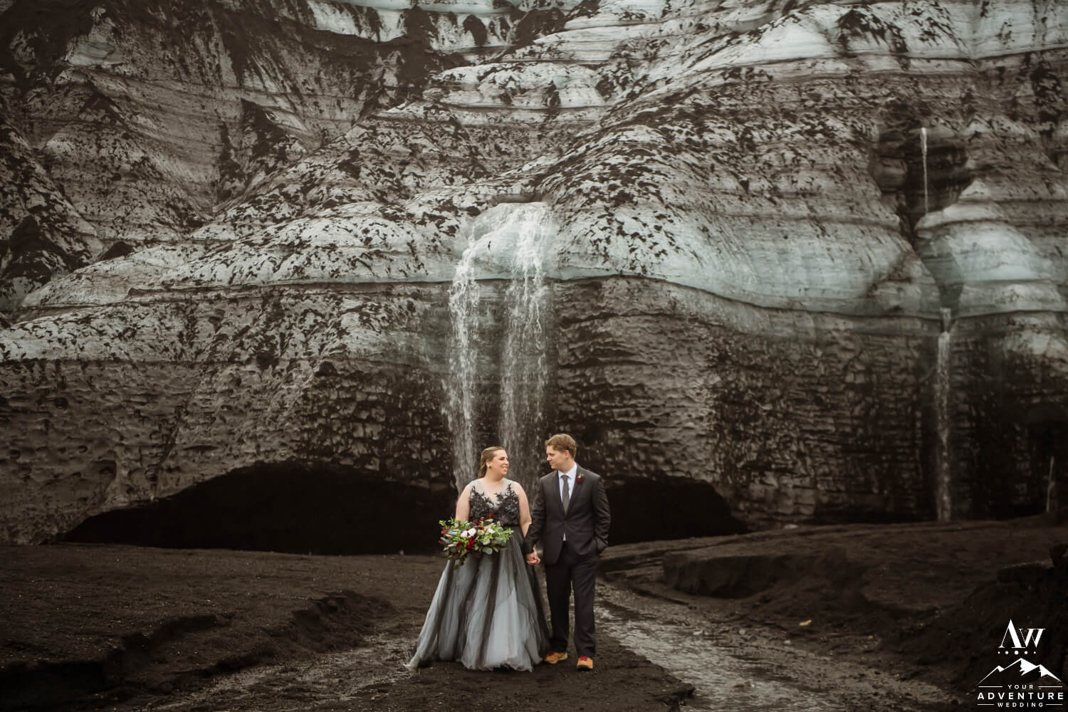 Sub-glacial volcanoes are literally just that, a volcano sitting underneath a massive glacier. Iceland has 15+ of these types of volcanoes and some may say these are the most dangerous type of volcano. Because when this sort of volcano erupts, you don’t have to worry about lava spewing over. Rather, you have to be aware of where and how the floods will come down. Next, when it hits the ocean, if it will create a tsunami. All elements, adding to the thrill of having a glacier waterfall wedding!