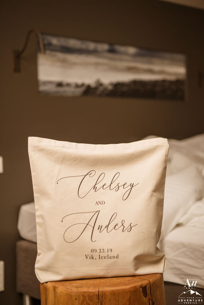 The morning begins at Hotel Vik (formally Icelandair Vik) well before sunrise with hair, makeup, and local Iceland wedding photographer getting to work. Knowing how unpredictable the weather in Iceland is, Chelsey opted in to have 2 wedding dresses. One for the adventure and the other the reception. That way, she could go “all in” on the adventure portion and still have a dry dress to don after. Anders did the same too for his groom attire and details.