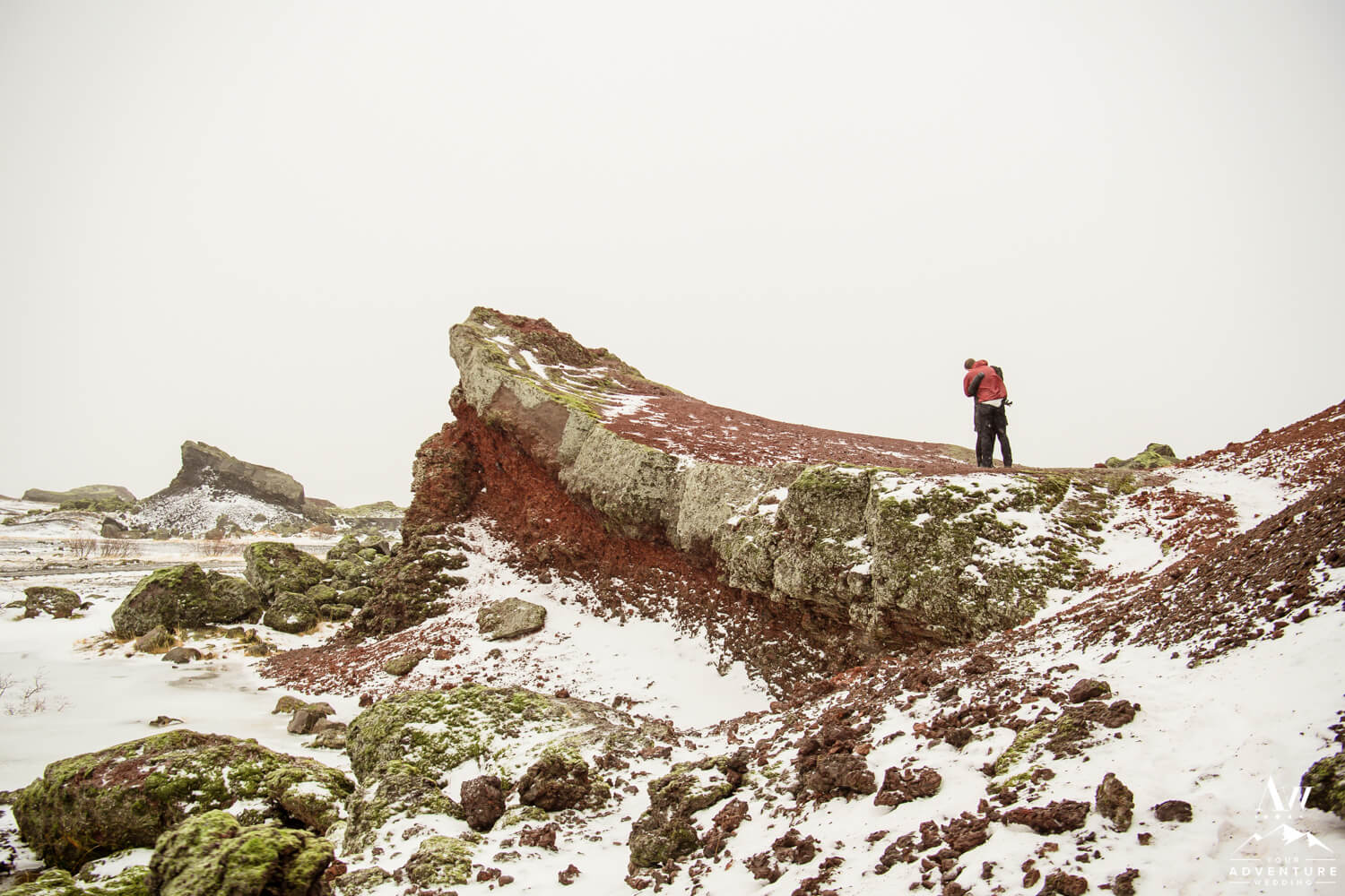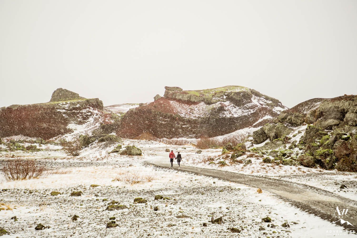 When couples plan their trip to Iceland, there could be many ambitions driving their adventure. Could be a simple as they cannot wait to explore the variety of types of landscapes they will see throughout the island. Instead, maybe they will embark on a several day hiking quest together seeing areas of Iceland only hikers can. Further, Iceland may be a destination they are choosing to plan an adventure elopement or a wedding with guests. Or possibly one partner is here on an internship and the other comes to visit for fun, who knows! The latter is the case of Michael and Sara who had a very snowy Heiðmörk marriage proposal happen this winter!