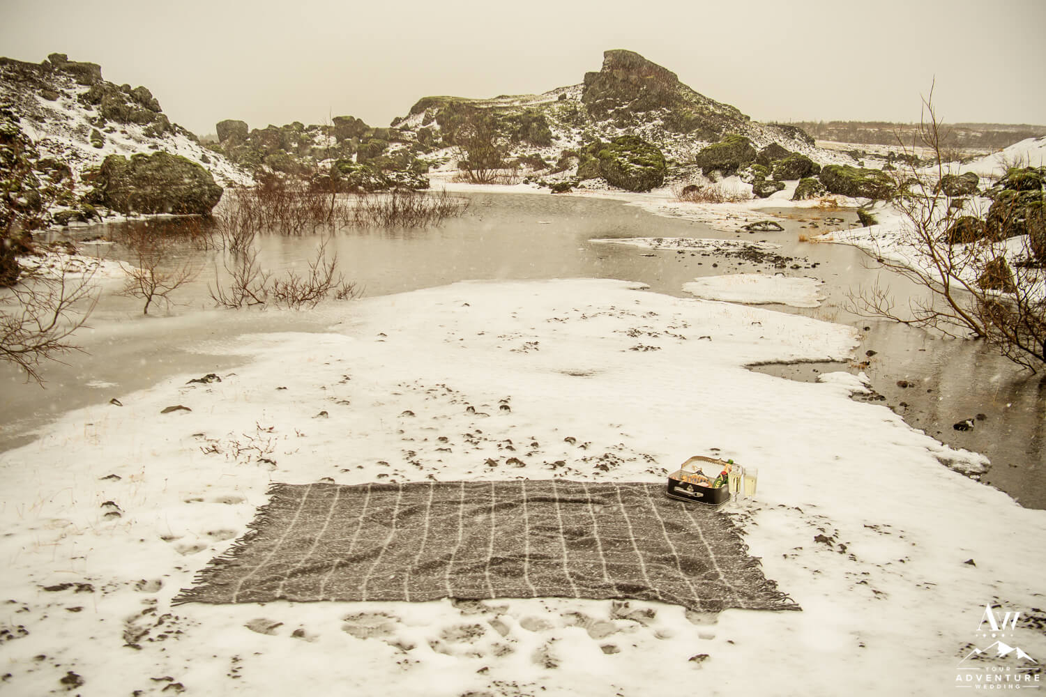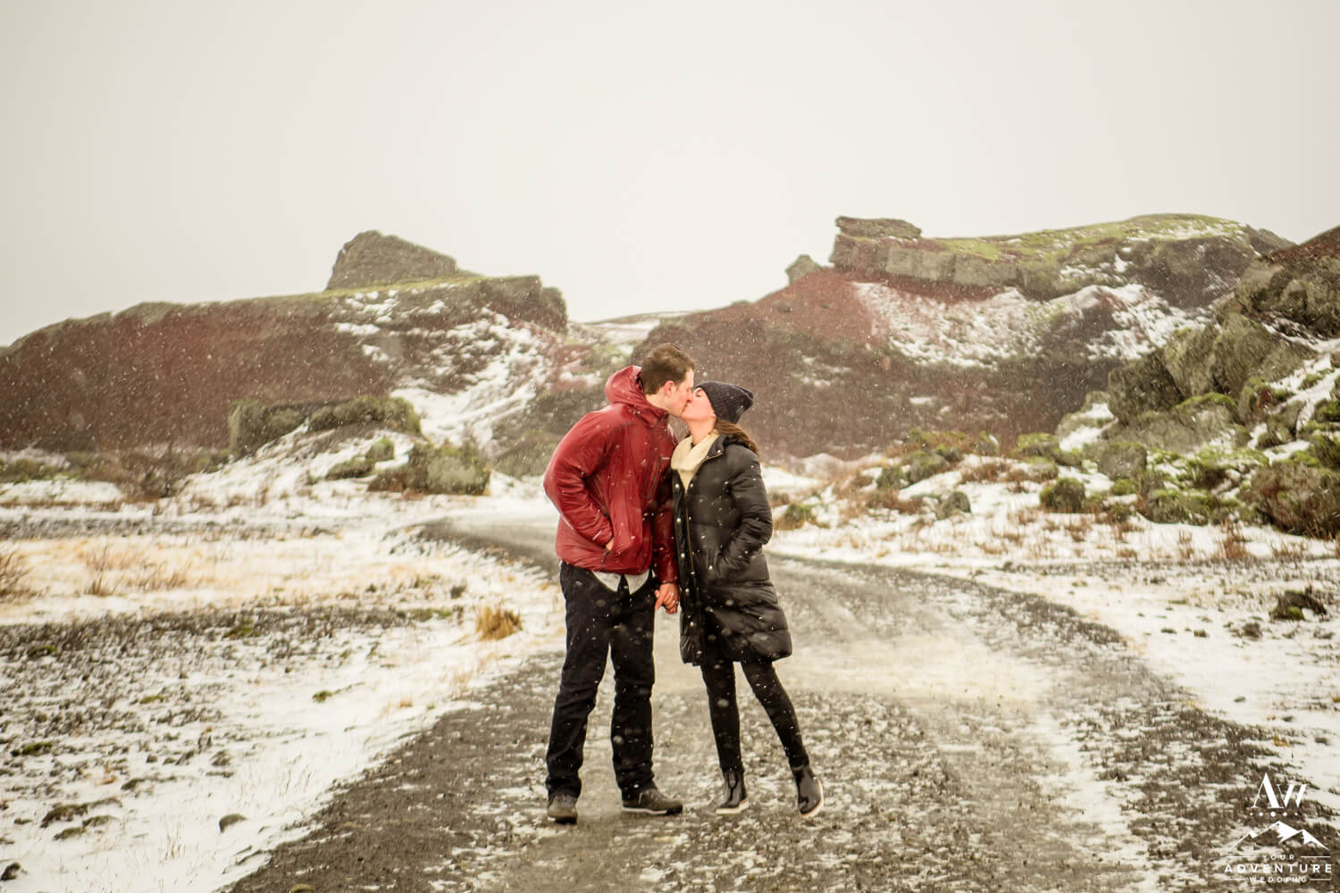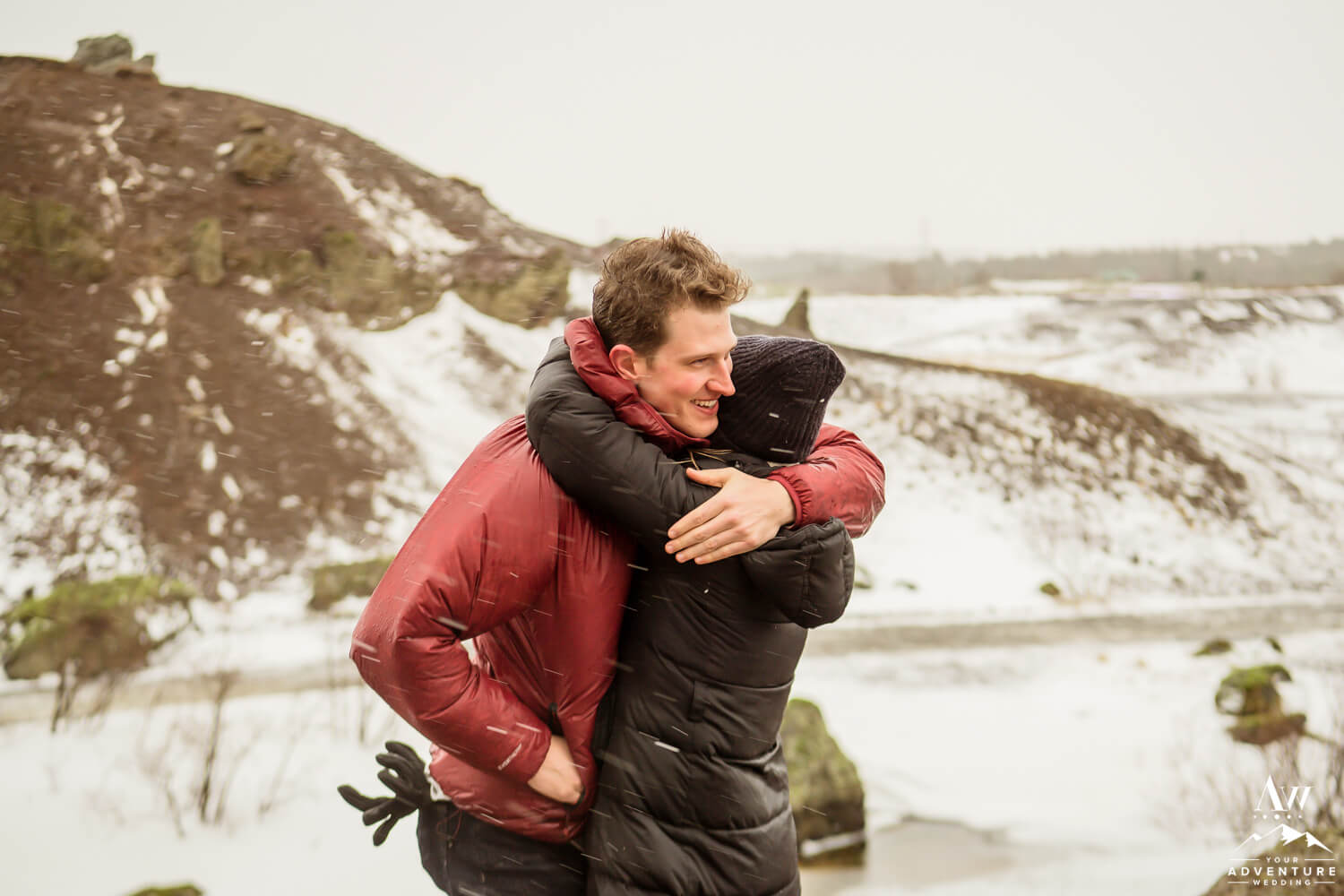 Endless laughs, cuddles, and connections followed every single step of the way, it was inspiring! A sweet little mini picnic awaited them in-between Iceland proposal photos and exploring the area. Fair to say they thoroughly enjoyed in the midst of the snowy conditions!