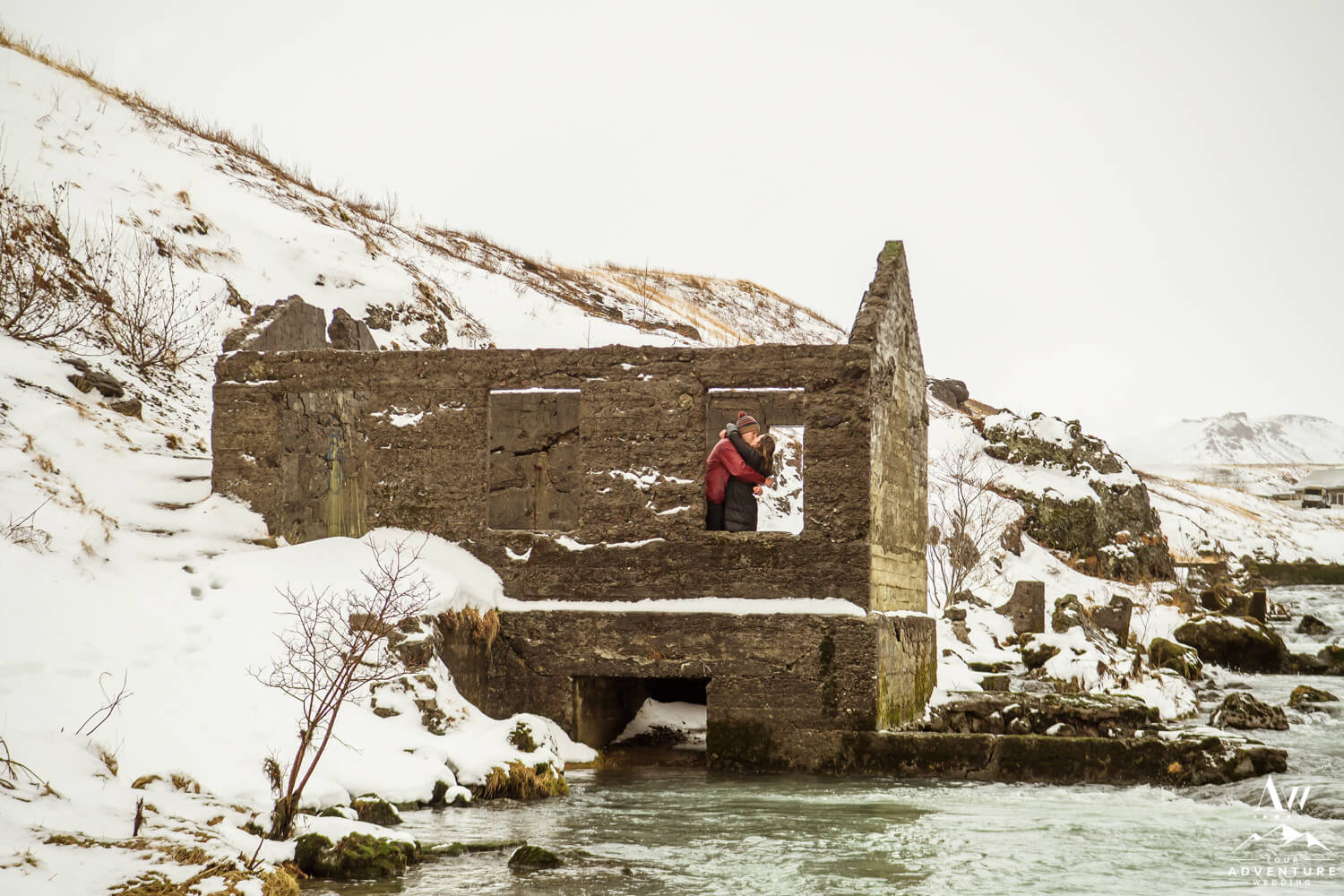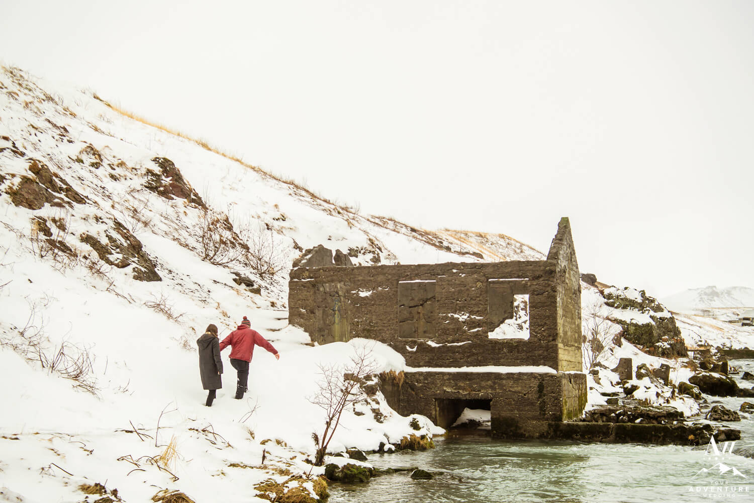 As you might already know, much of Iceland is run on either geothermal or hydro power. In the early 1900’s especially were a time when this was just beginning in the geothermal town of Hveragerði. A wool shop was in this town and used the Varma River flow to power their shop. Since then the wool shop has moved on but the ruins of the old building remain and have quite an interesting look beside the river still! Michael and Sara had fun having a look inside and around the historical area.