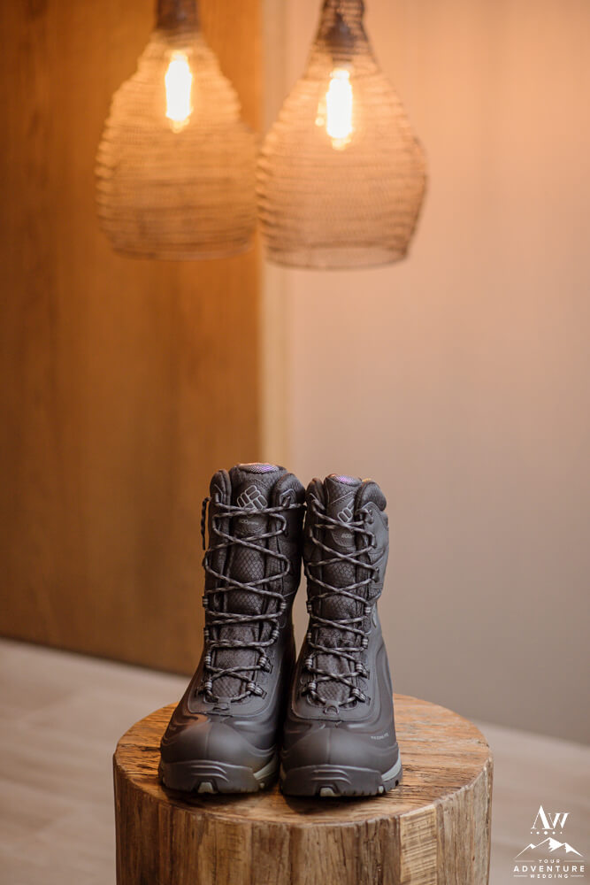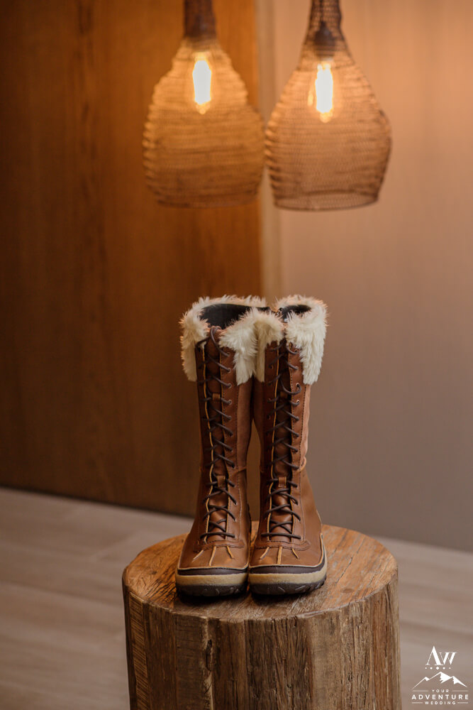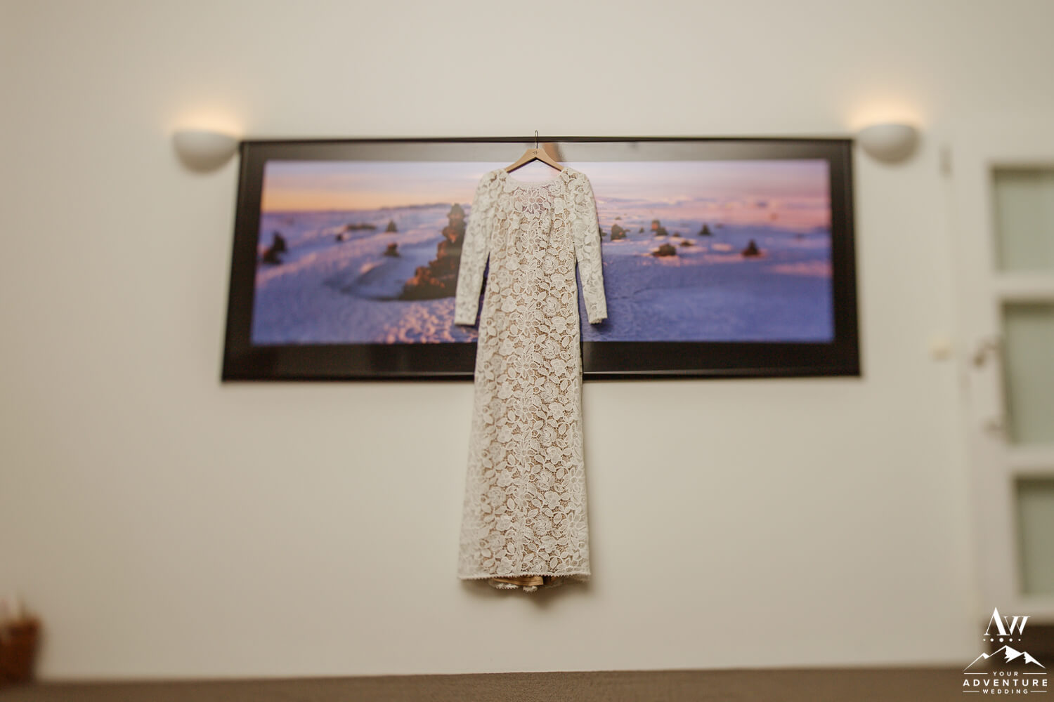 All of those reasons kind of make it a no brainer, huh? Well these two soon-to-be newlyweds thought so too!! They were married on February 17th in the Icelandic countryside. First, our photographer, hair, and makeup team ventured into their suite well before sunrise. Second, while wedding dress details were photographed the groom slept in a bit! But then they finished getting ready together and grabbed their “go bags” to load into the super jeep to embark on their icy elopement!