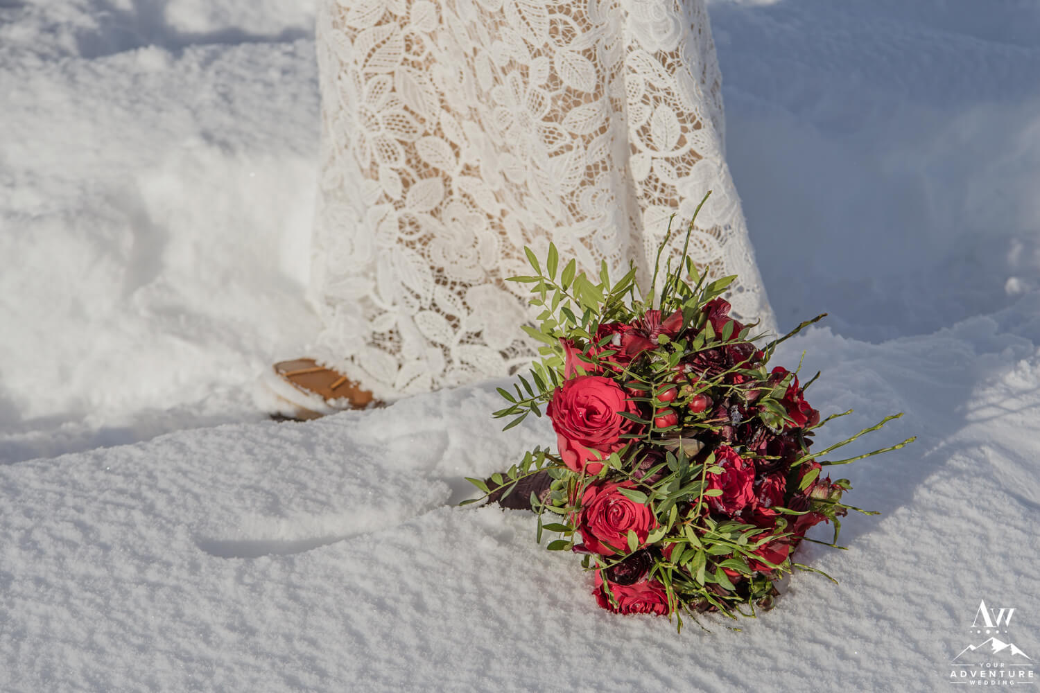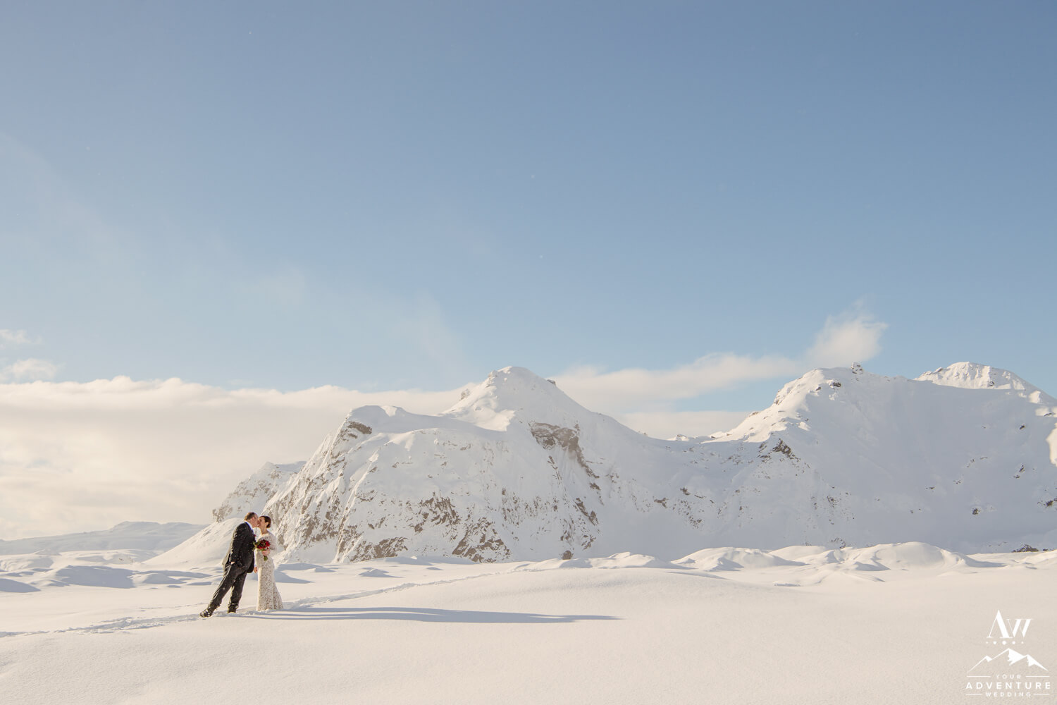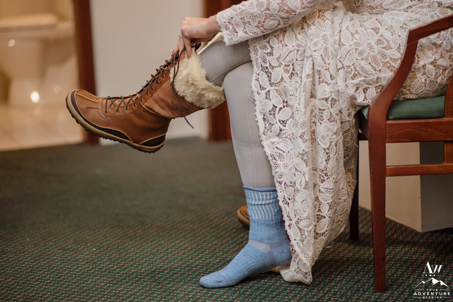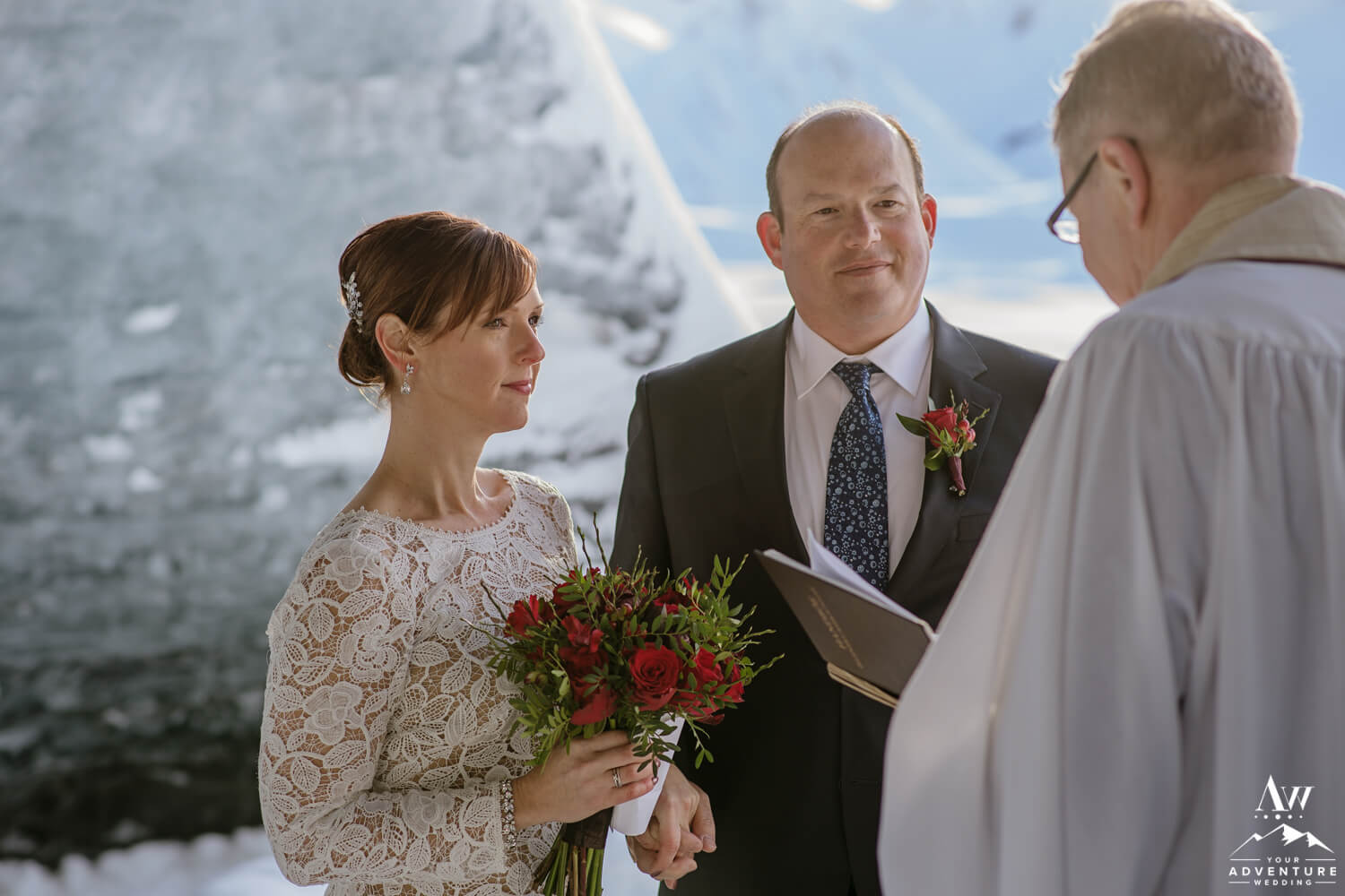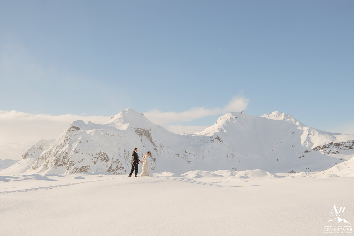 Meanwhile, hiking to your ceremony location is one of the most inspiring things we think you can do. Firstly, you all know we’re huge fans of hiking elopements! Secondly, hiking to a natural ice cave that is 100% private, zero tourists lurking about, and a path to get there created JUST FOR YOU two that morning is even more MAGICAL somehow. Thirdly, this icy elopement ceremony even had their own platform for the ceremony dug out moments before it began! Suddenly though during their exploration time in the ice cave blizzard conditions quickly came in adding more excitement!