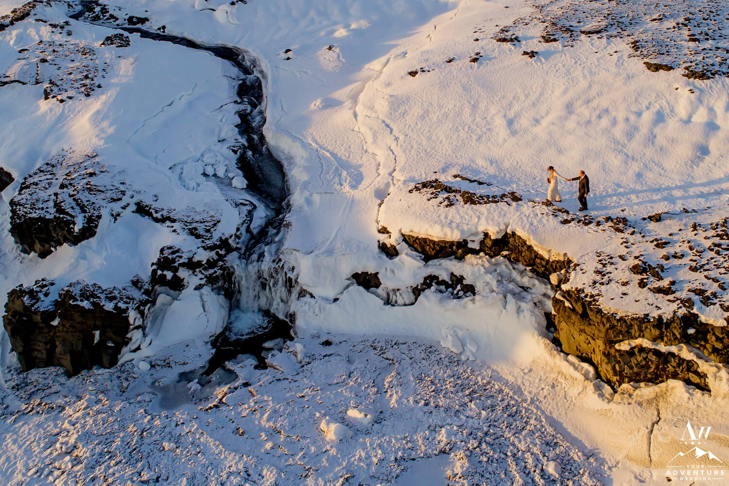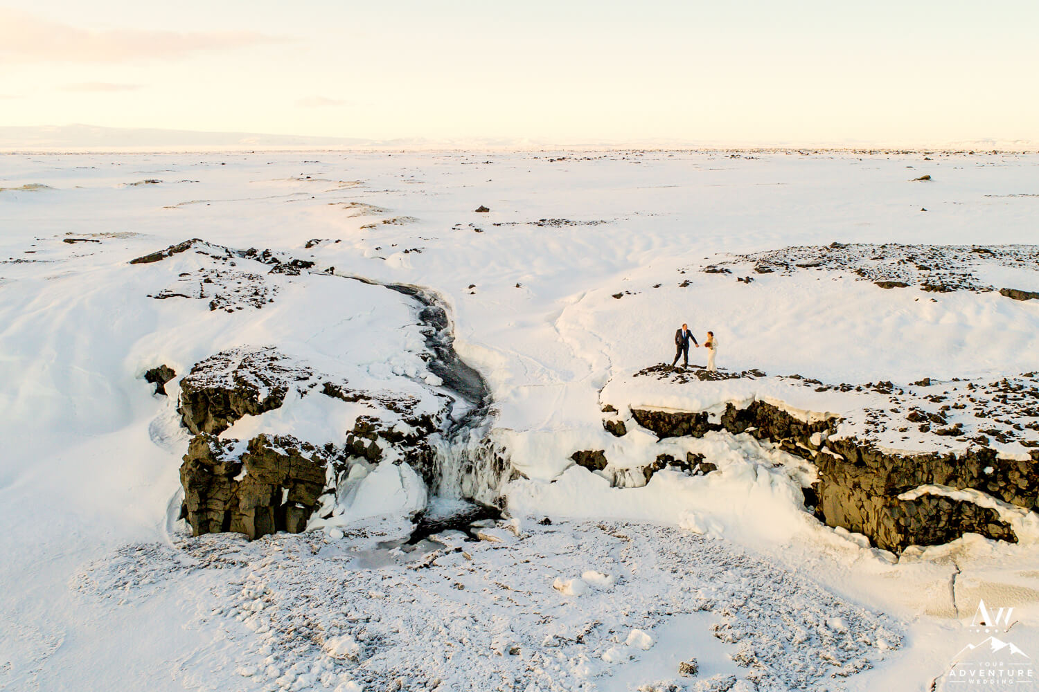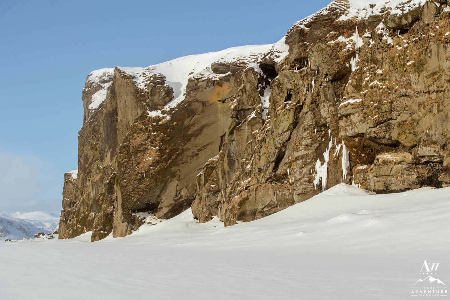 You do not have to go all the way to a glacier to experience ice in Iceland! For example, often during the month of February you can find beautiful icicles hanging throughout many natural features in the countryside. Which make for a stunning icy elopement backdrop!