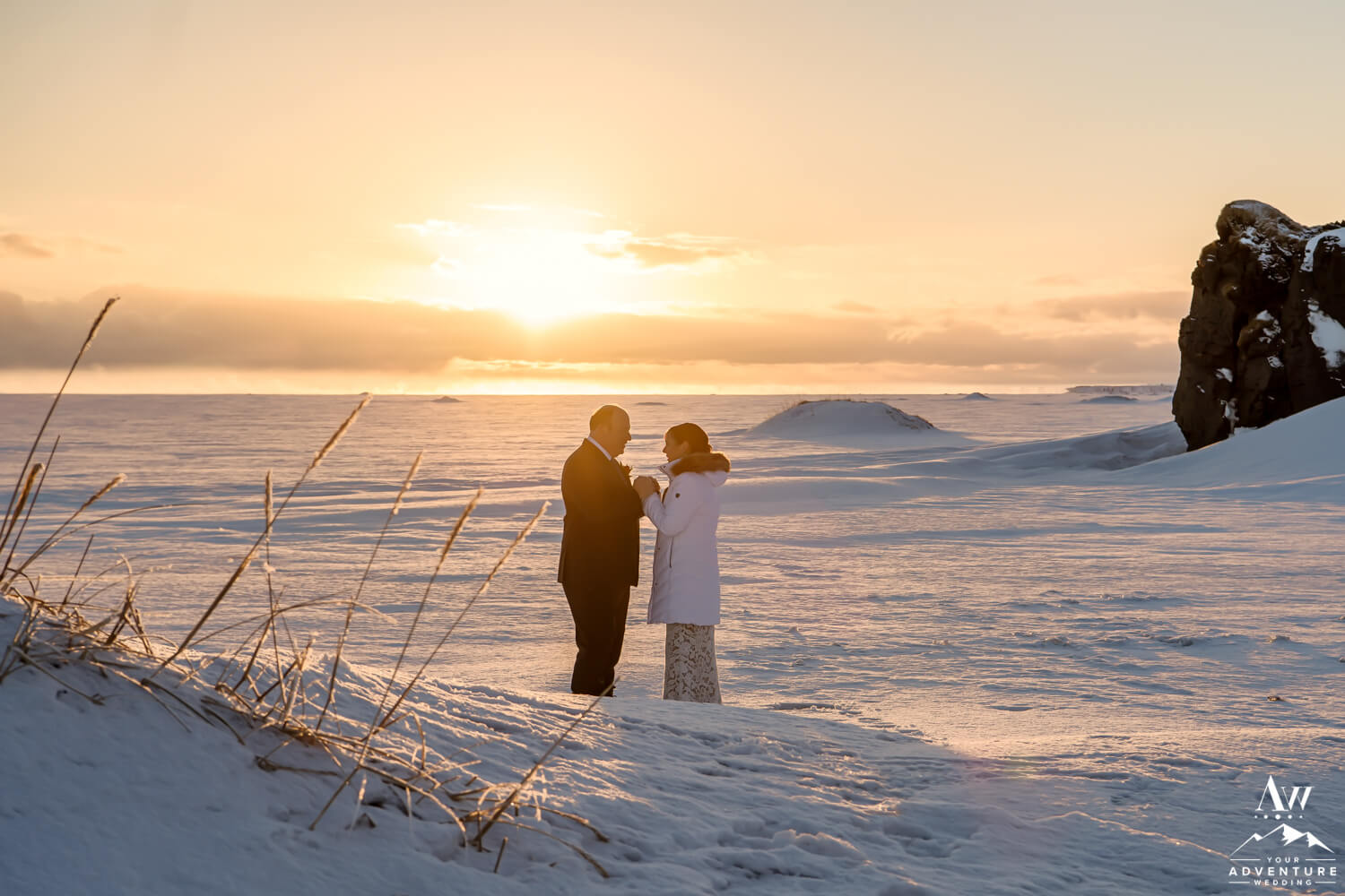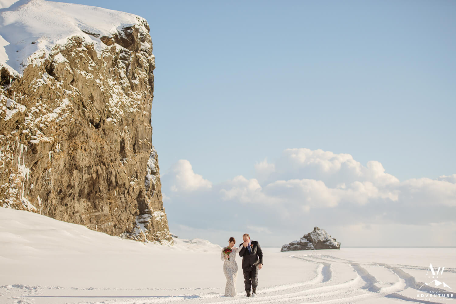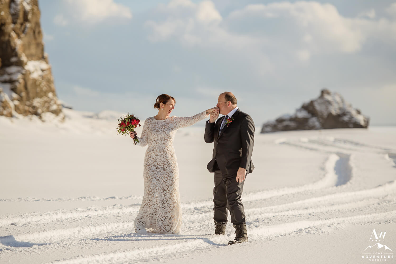 During the month of February in Iceland, it can be hit or miss with snow, blizzards, rain, or fog. Likely why always tell our couples to always prepare for the worst weather in Iceland and hope for the best! However, these two brought blazing sunshine with them from California for parts of the day and they thoroughly enjoyed every second!