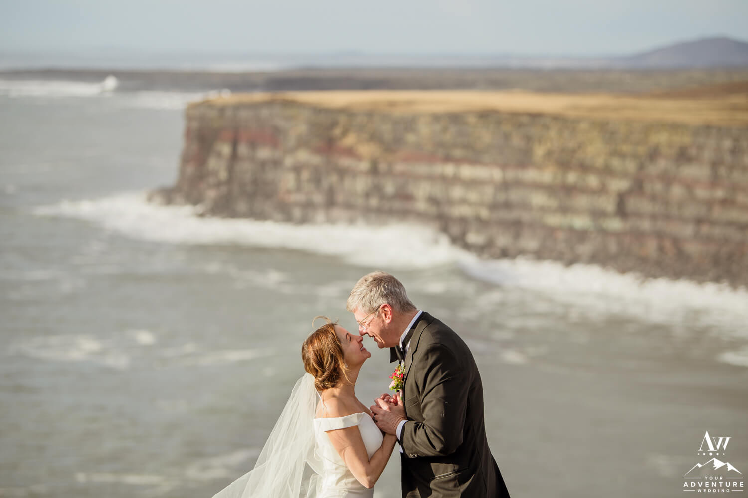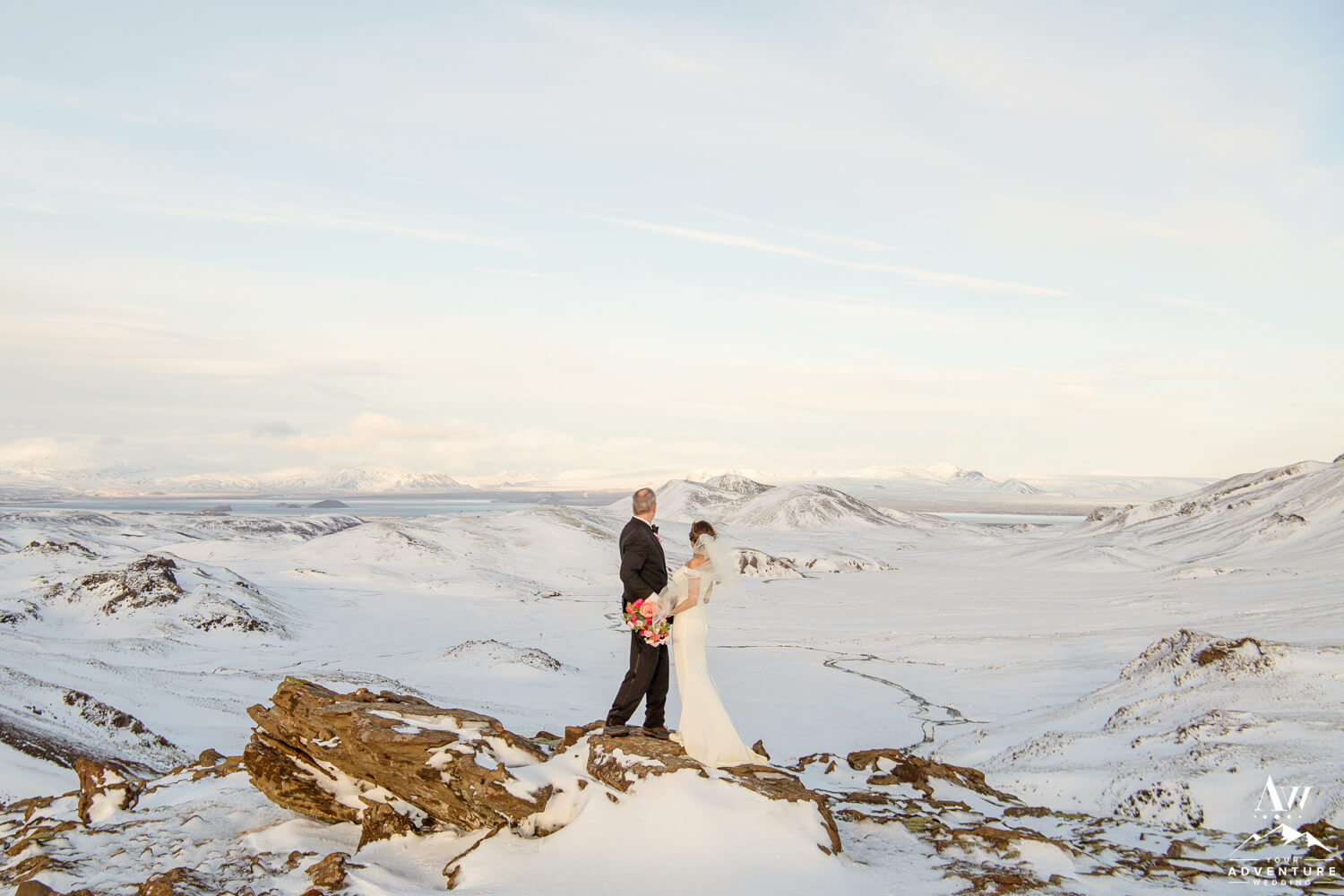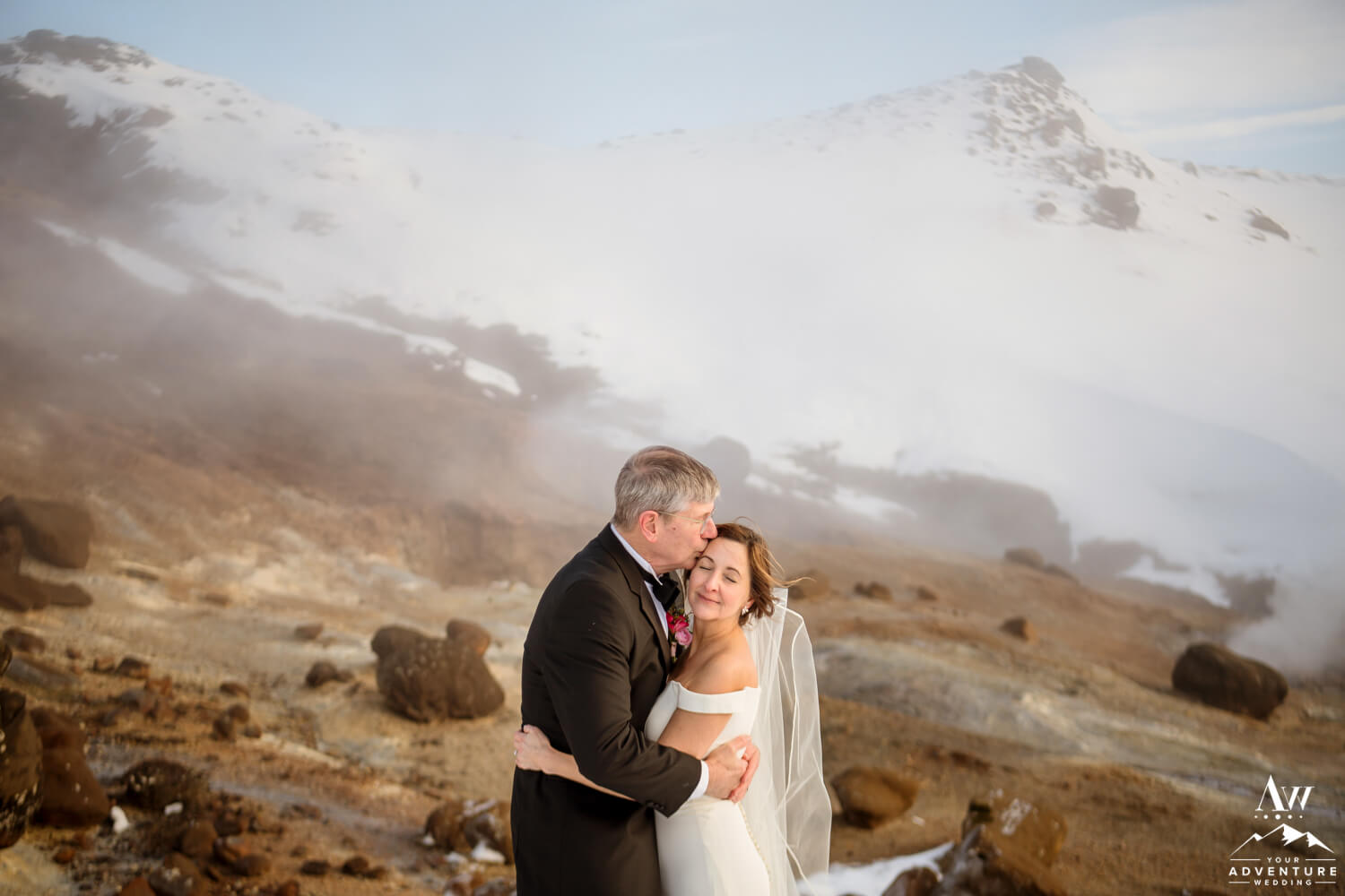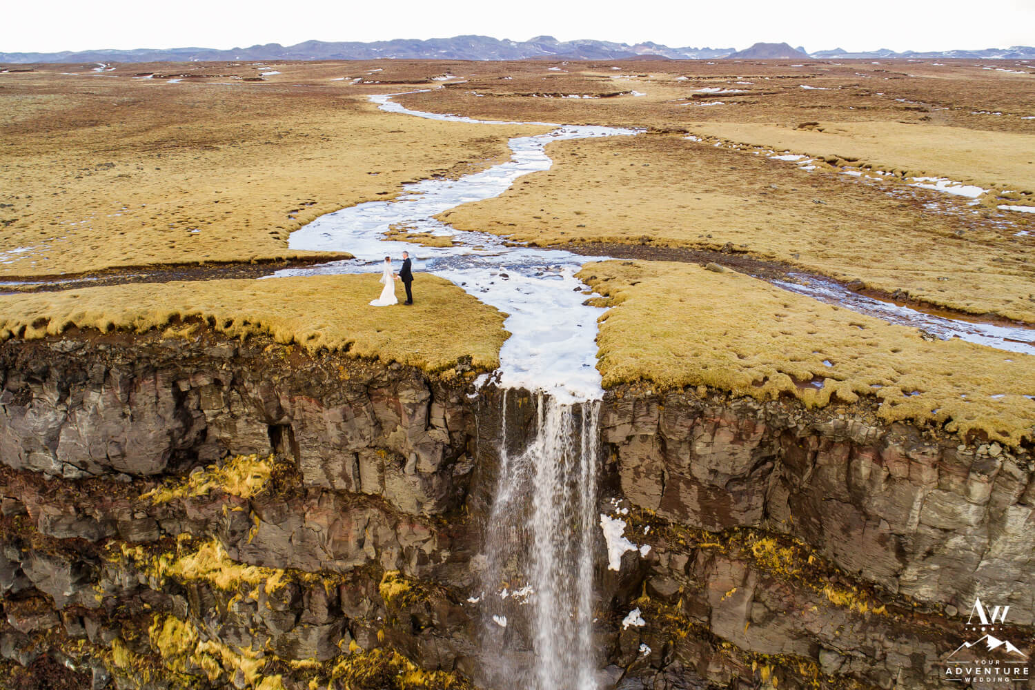 Being able to experience Iceland from the height of the top of mountains and witnessing 360 degree views on a clear day is addicting! The level of adventure gets amped up too at this specific Iceland elopement location too. Why? Because our adventure wedding photographer has to be safely tethered to the super jeep to get the incredible shots! Although the wind kicked up, our newlyweds thoroughly enjoyed this winter Iceland wedding spot.