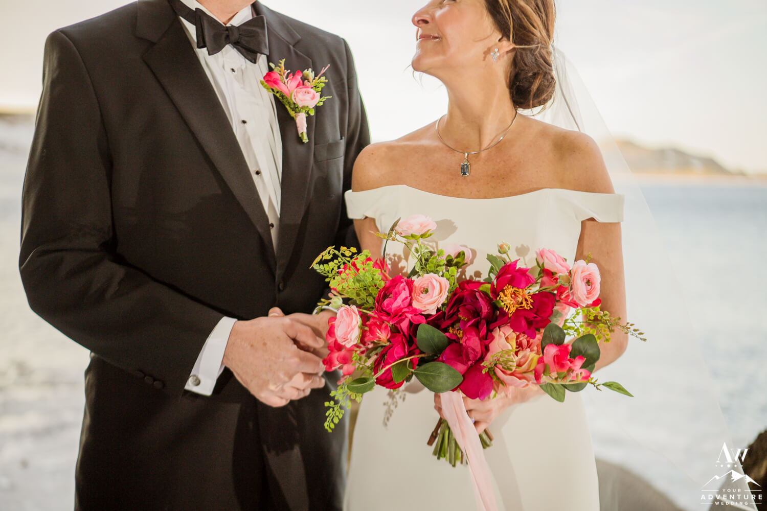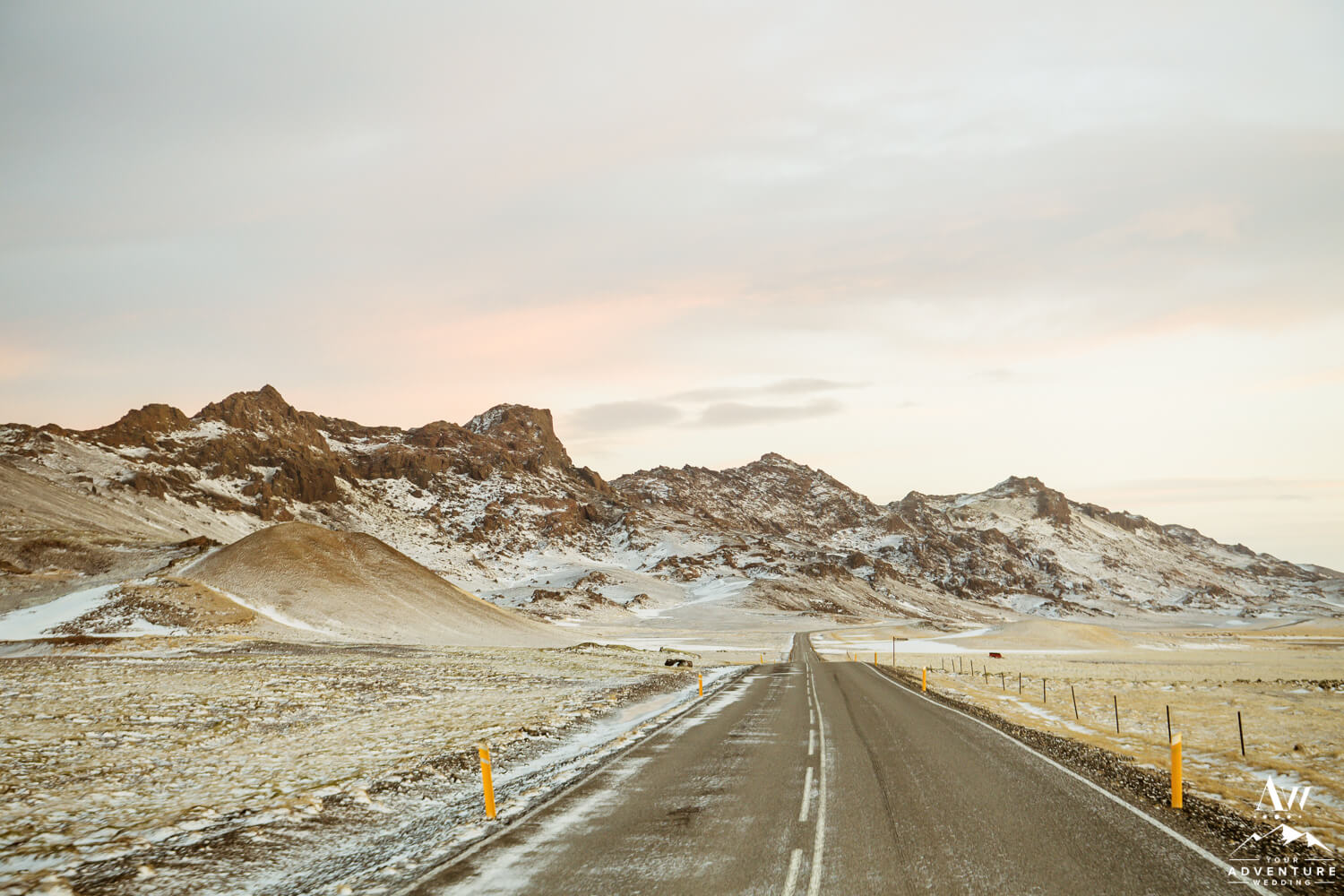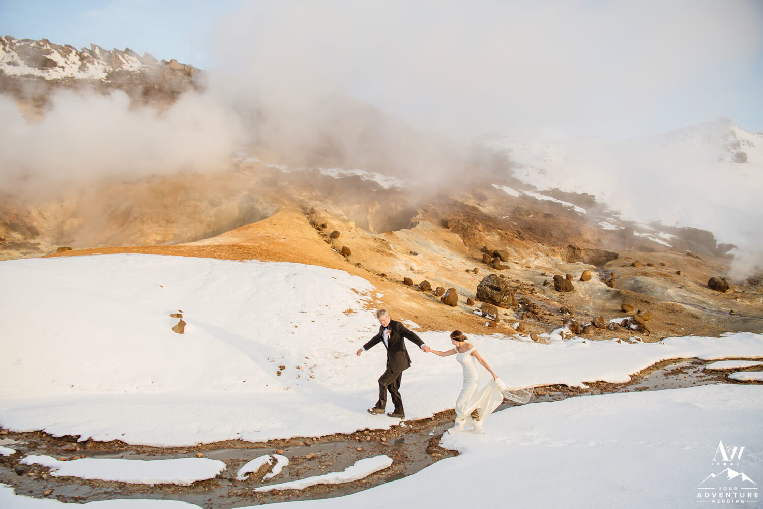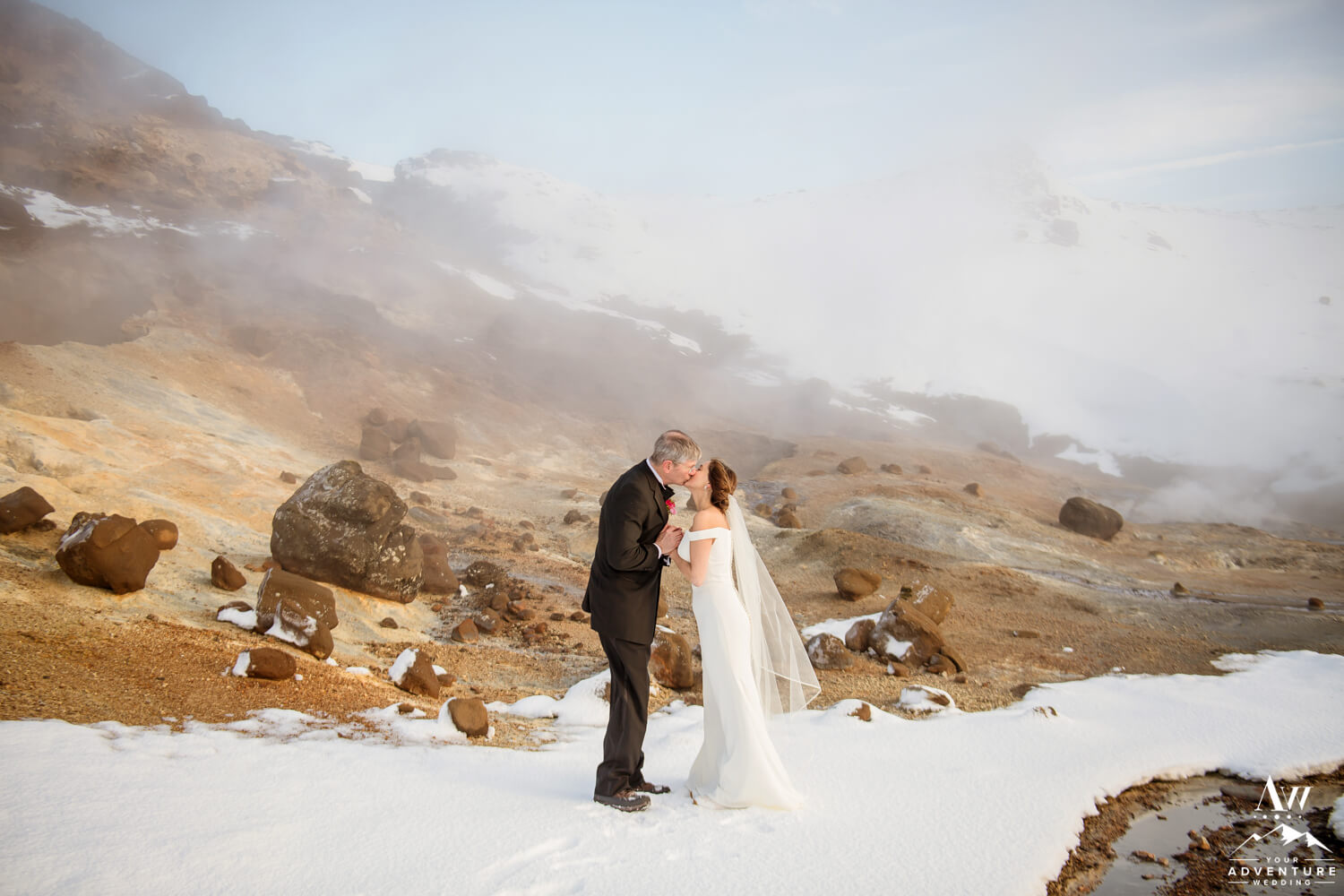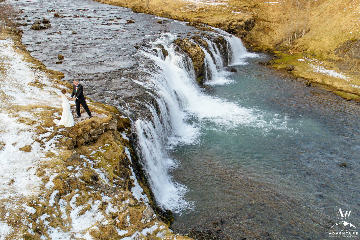 Being able to experience Iceland from the height of the top of mountains and witnessing 360 degree views on a clear day is addicting! The level of adventure gets amped up too at this specific Iceland elopement location too. Why? Because our adventure wedding photographer has to be safely tethered to the super jeep to get the incredible shots! Although the wind kicked up, our newlyweds thoroughly enjoyed this winter Iceland wedding spot.