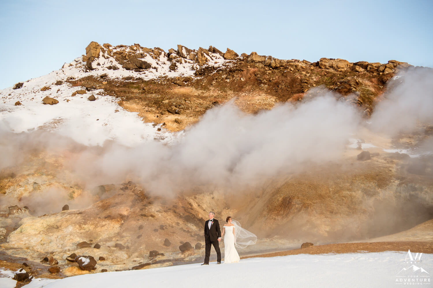 Weather in Iceland can often challenge your plans for the day. In our decade of experience in Iceland planning and photographing adventurous elopements and experience driven weddings, we have never rescheduled an entire day because most times we “plan b” to another area that is less affected. Therefore, on February 14th 2020, there was one of the worst storms of the year commandeering the entire island. Analyzing the conditions and options, we presented Janine and Mark with a solid reschedule plan to February 16th instead. Turns out the rescheduled wedding date brought endless blue skies too!