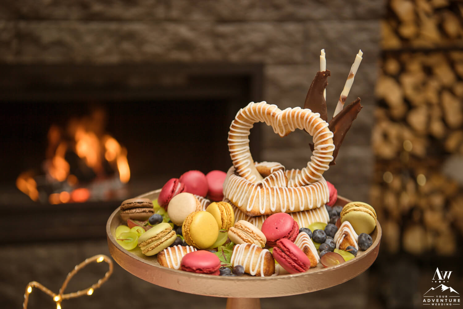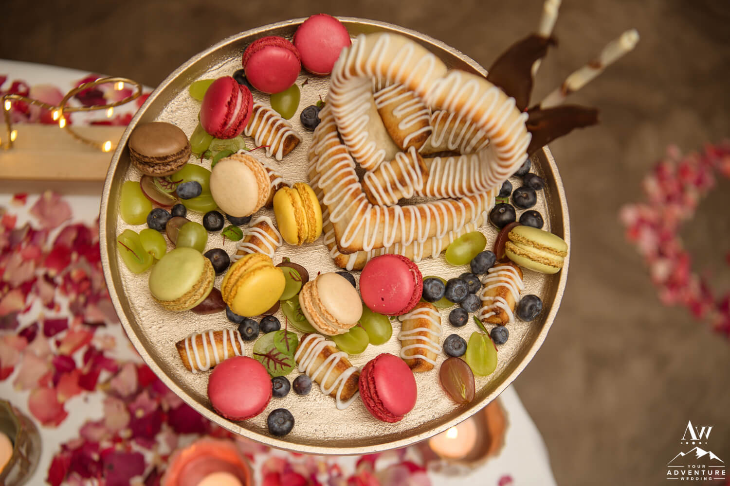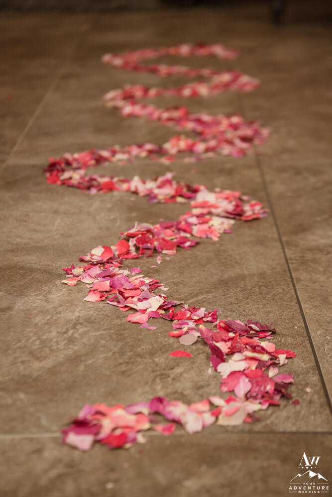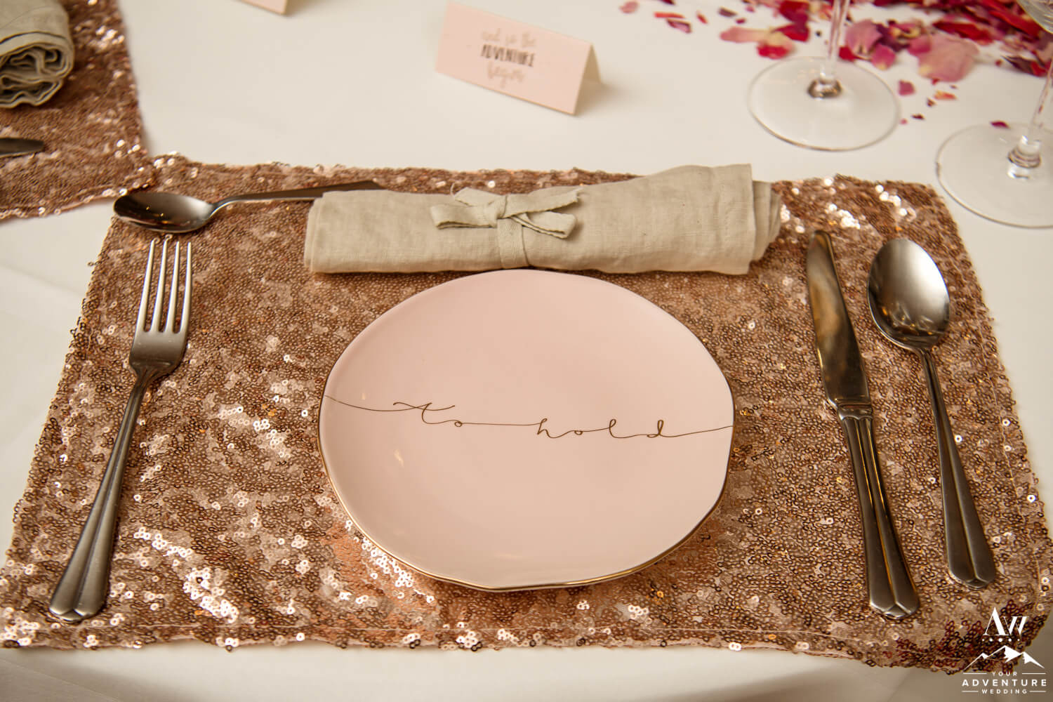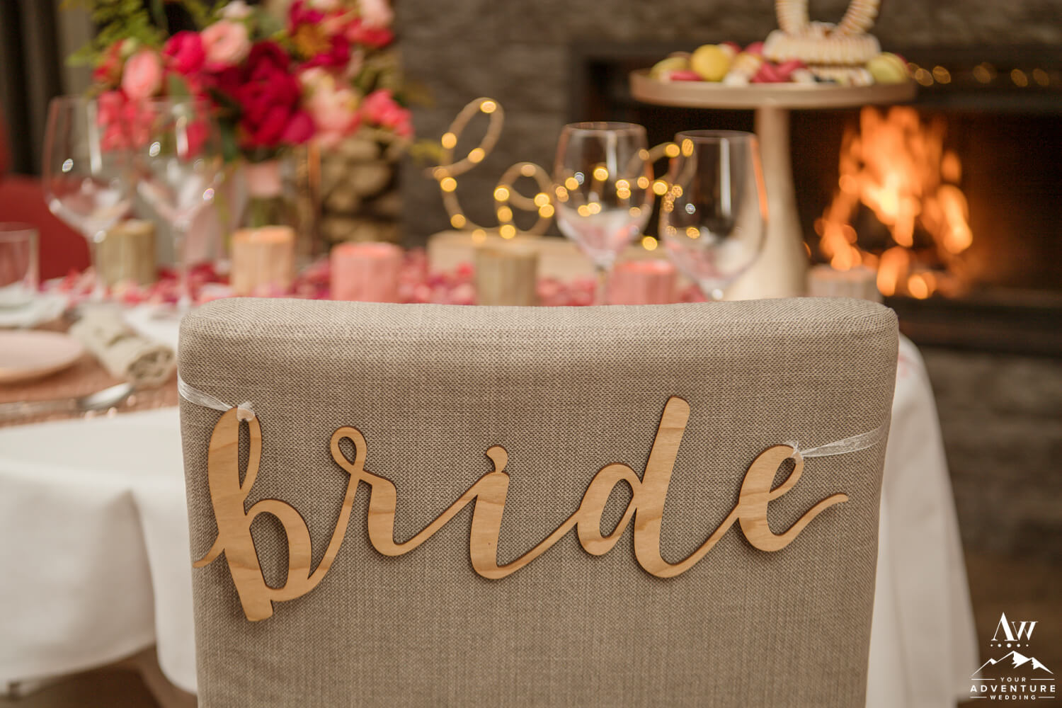 Eloping in Iceland still means you can have a cozy romantic dinner that oozes luxury! To illustrate, our styling team created a themed setup of “Best Day Ever” that sat right in front of the fireplace and had bits of sparkly pinks! Firstly, the floor was adorned with freeze dried rose petals from Flyboy Naturals, which made the area even more romantic! Secondly, these two opted to change out of their wedding attire to don locally made Icelandic sweaters from The Handknitting Association of Iceland.